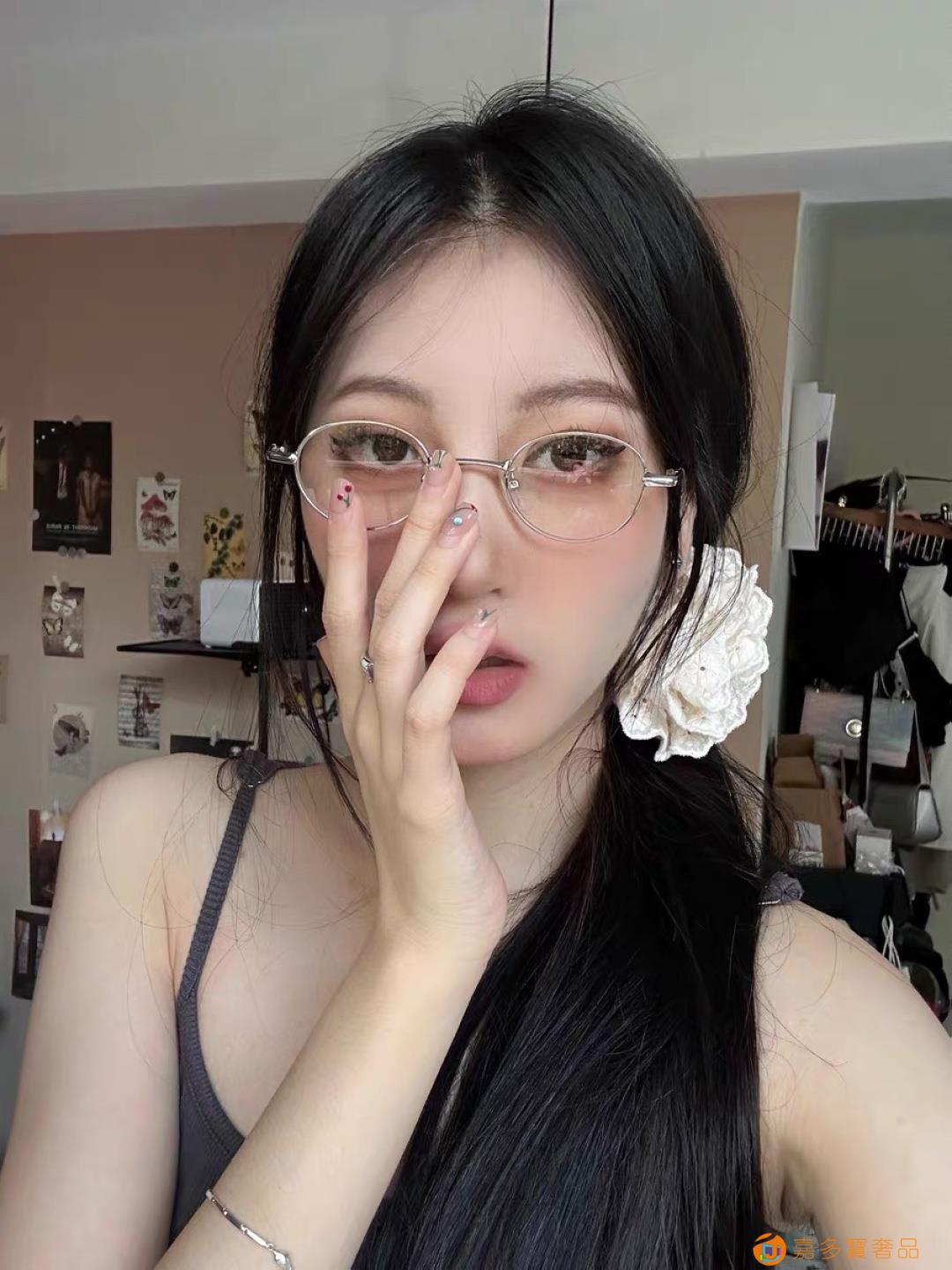 ??Jennie同款珠宝系列钻石眼镜框纯欲风凹造型小椭圆平光