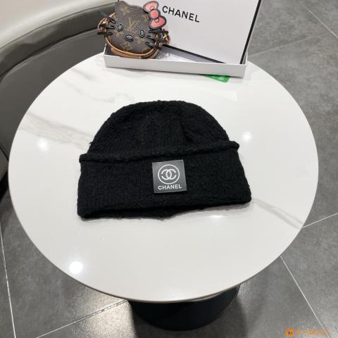 Chanel香奈儿新款韩版双卷边针织帽女秋冬百搭毛线帽保暖护