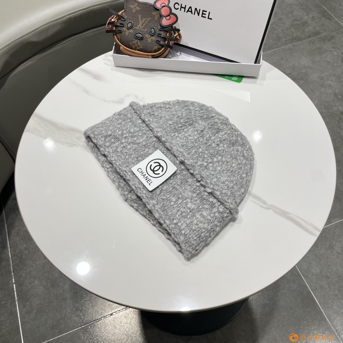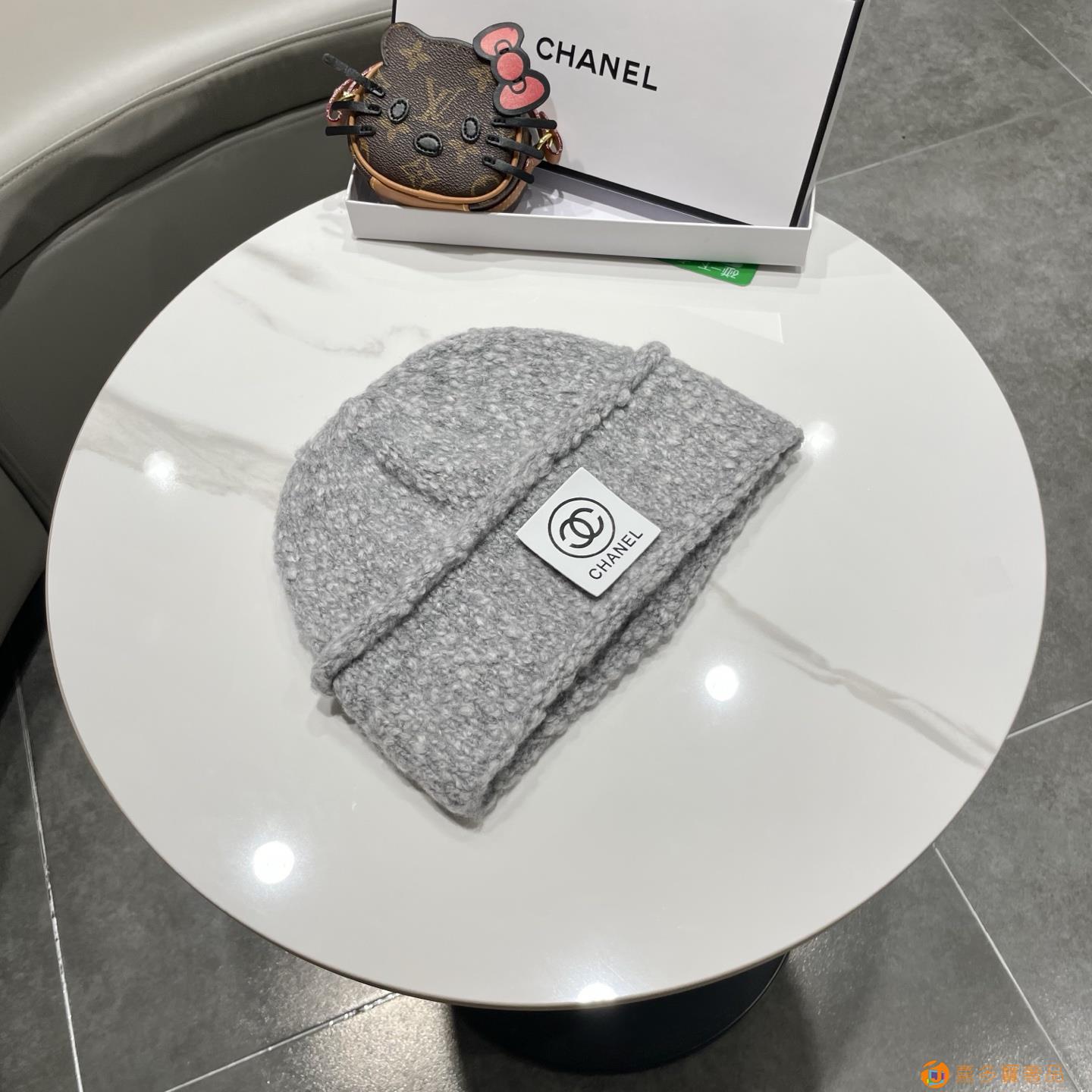 Chanel香奈儿新款韩版双卷边针织帽女秋冬百搭毛线帽保暖护