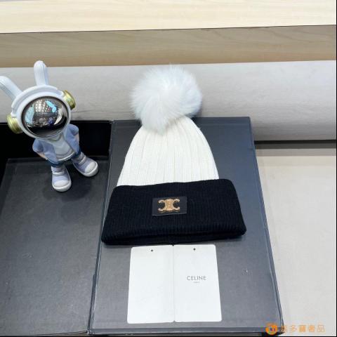 塞琳Celine拼色毛球白色毛线帽女秋冬季帽子时尚百搭保暖针