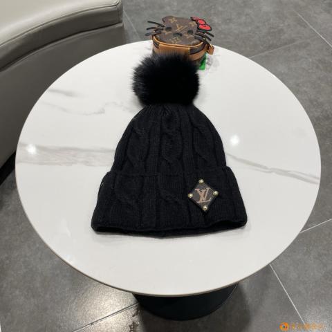 lv路易威登针织帽子女秋冬季羊毛+兔毛面料真狐狸毛球毛线帽防