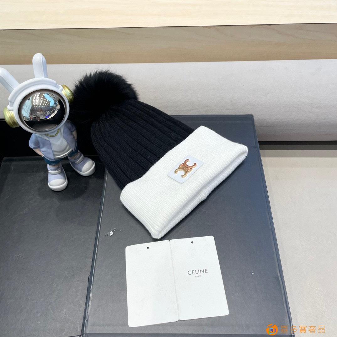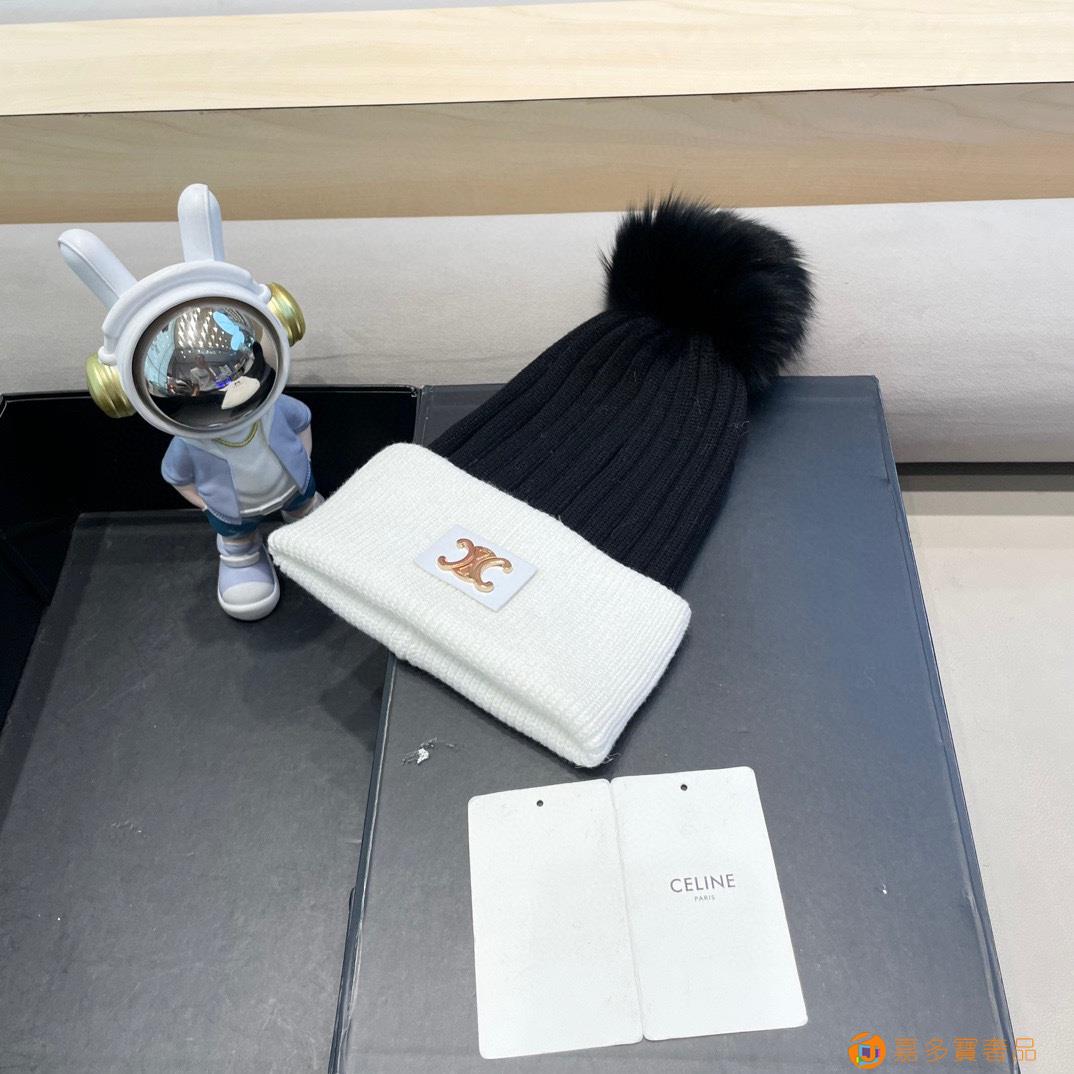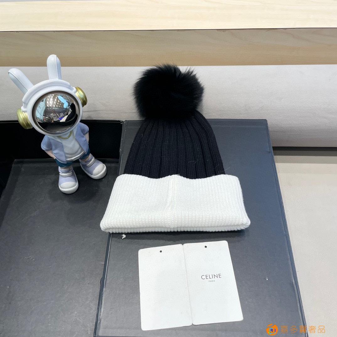 塞琳Celine拼色毛球白色毛线帽女秋冬季帽子时尚百搭保暖针
