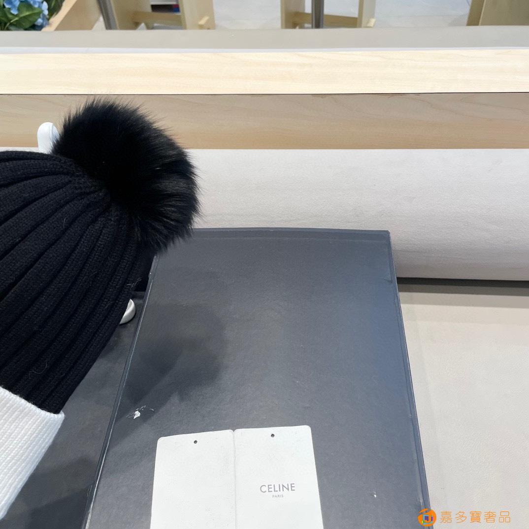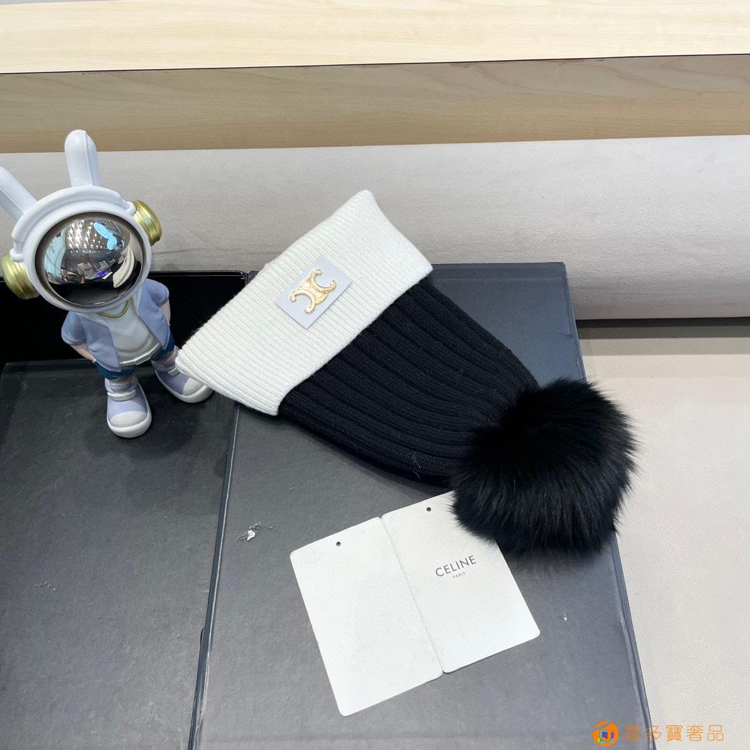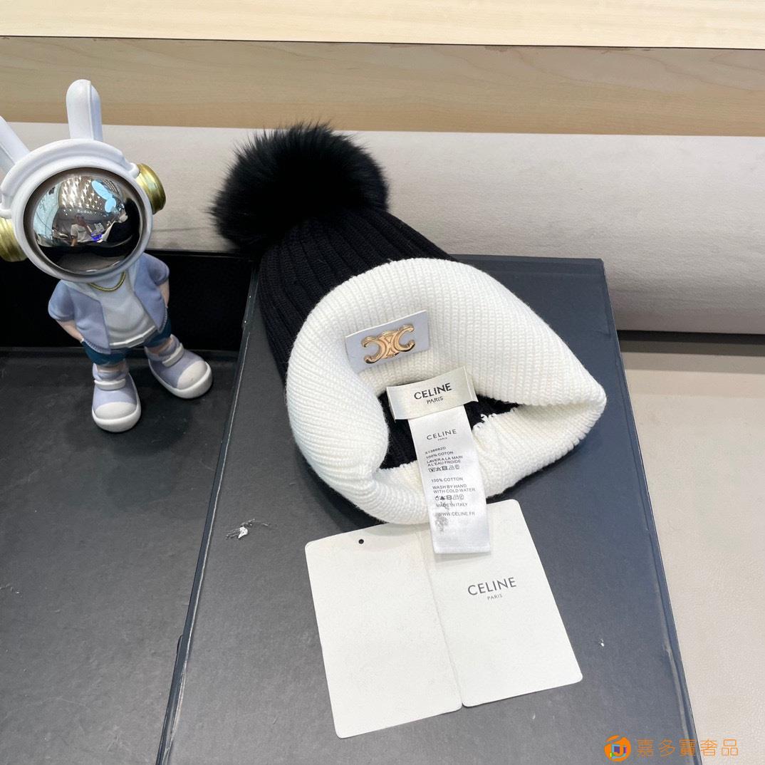 塞琳Celine拼色毛球白色毛线帽女秋冬季帽子时尚百搭保暖针
