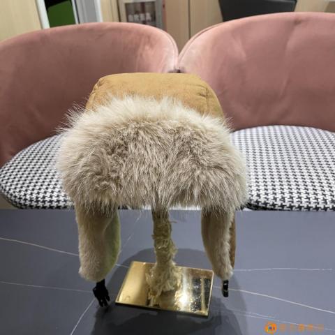 lv路易威登针织帽子女秋冬季羊毛+兔毛面料真狐狸毛球毛线帽防