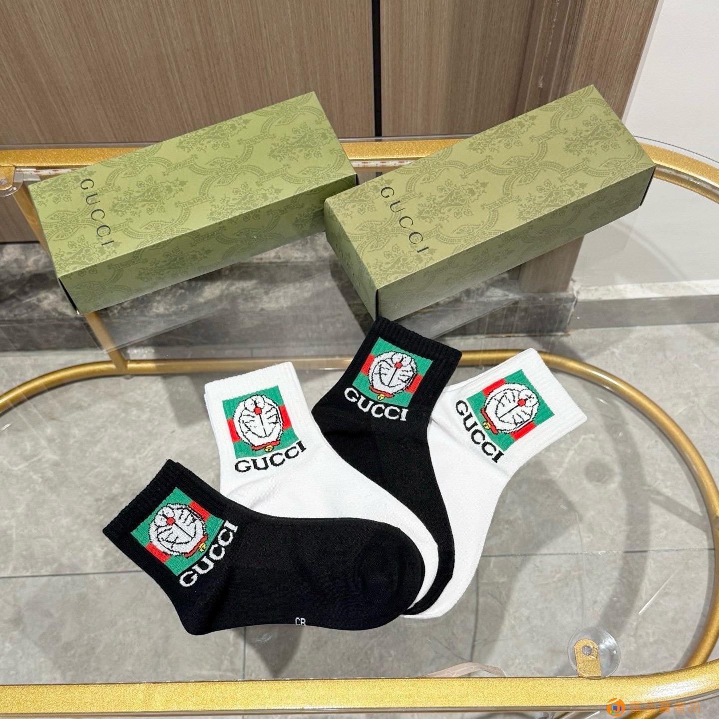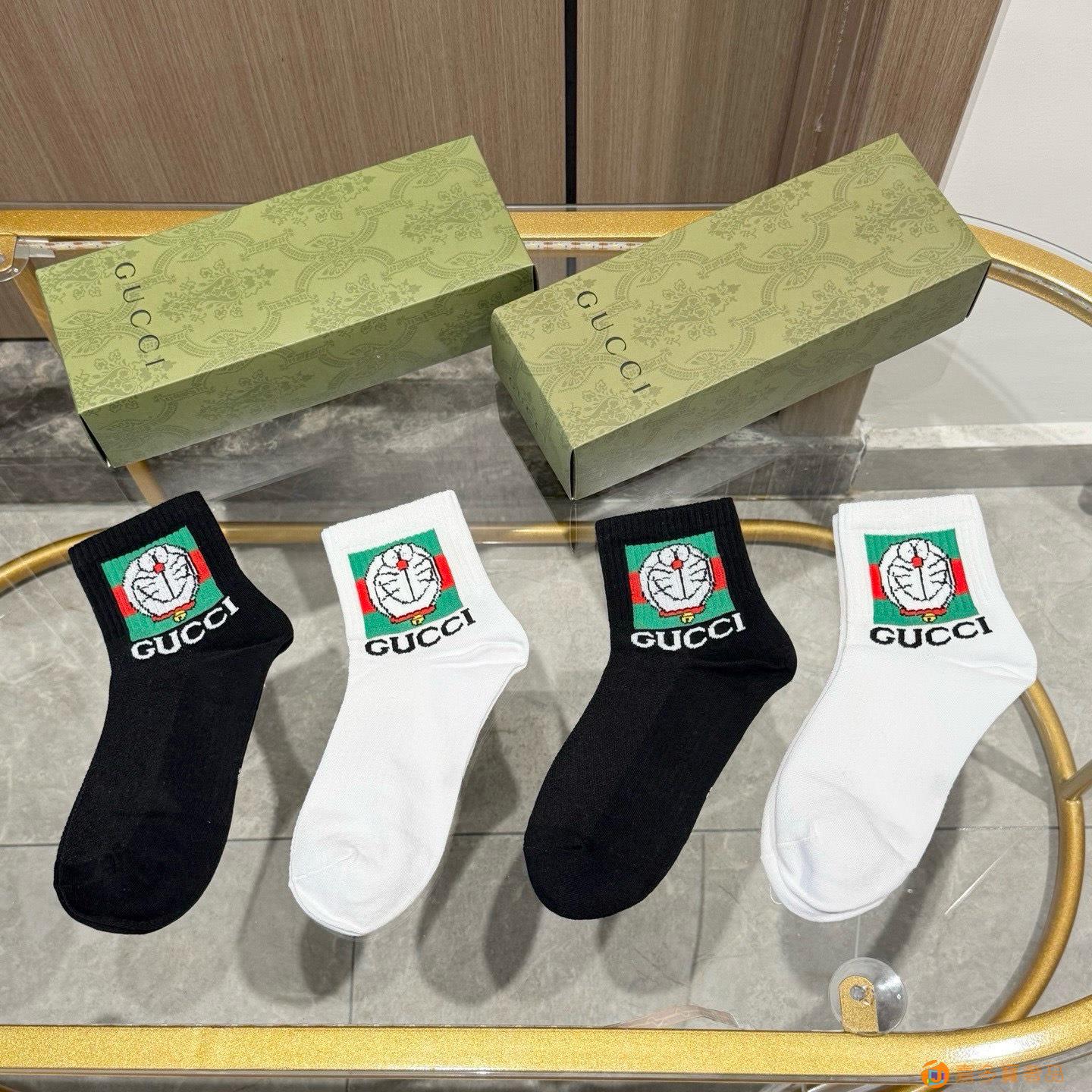 配送包装【一盒四双】 古奇gucci专柜新款男女款中筒袜子