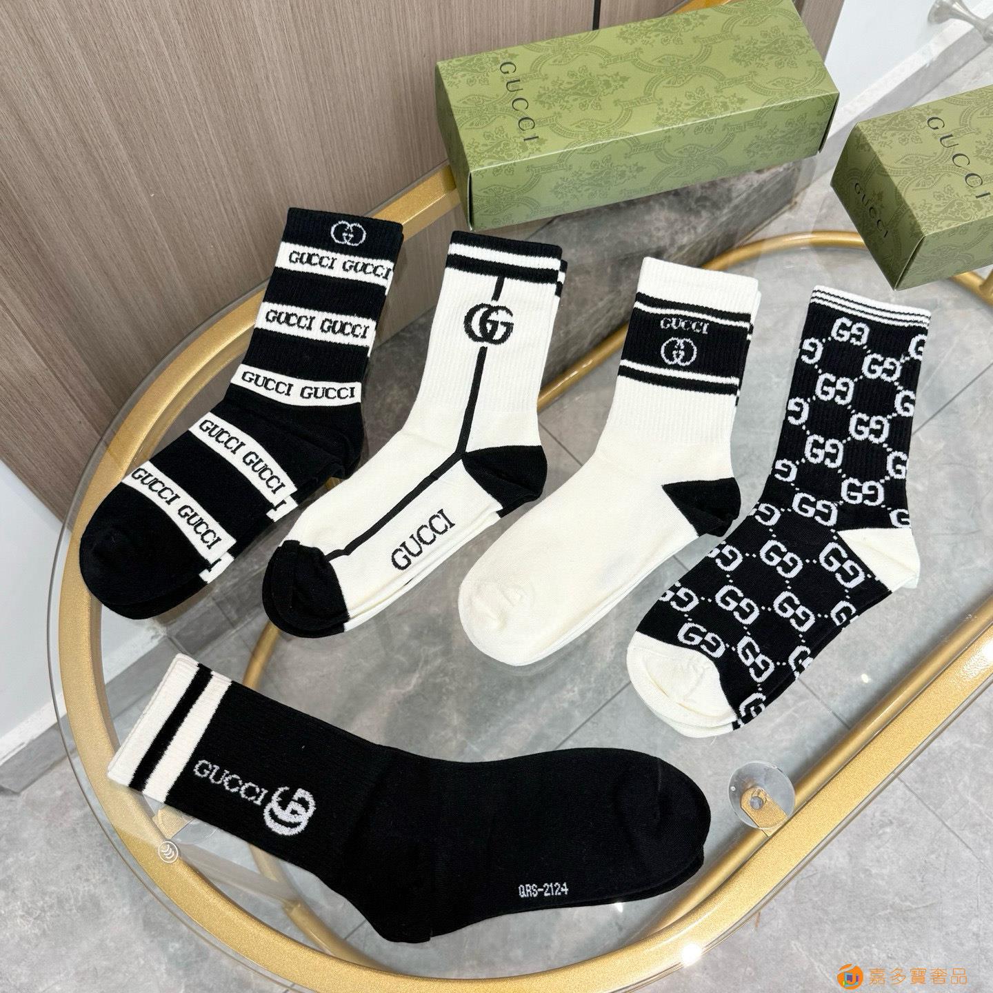 配送包装【一盒四双】 古奇gucci专柜新款男女款中筒袜子