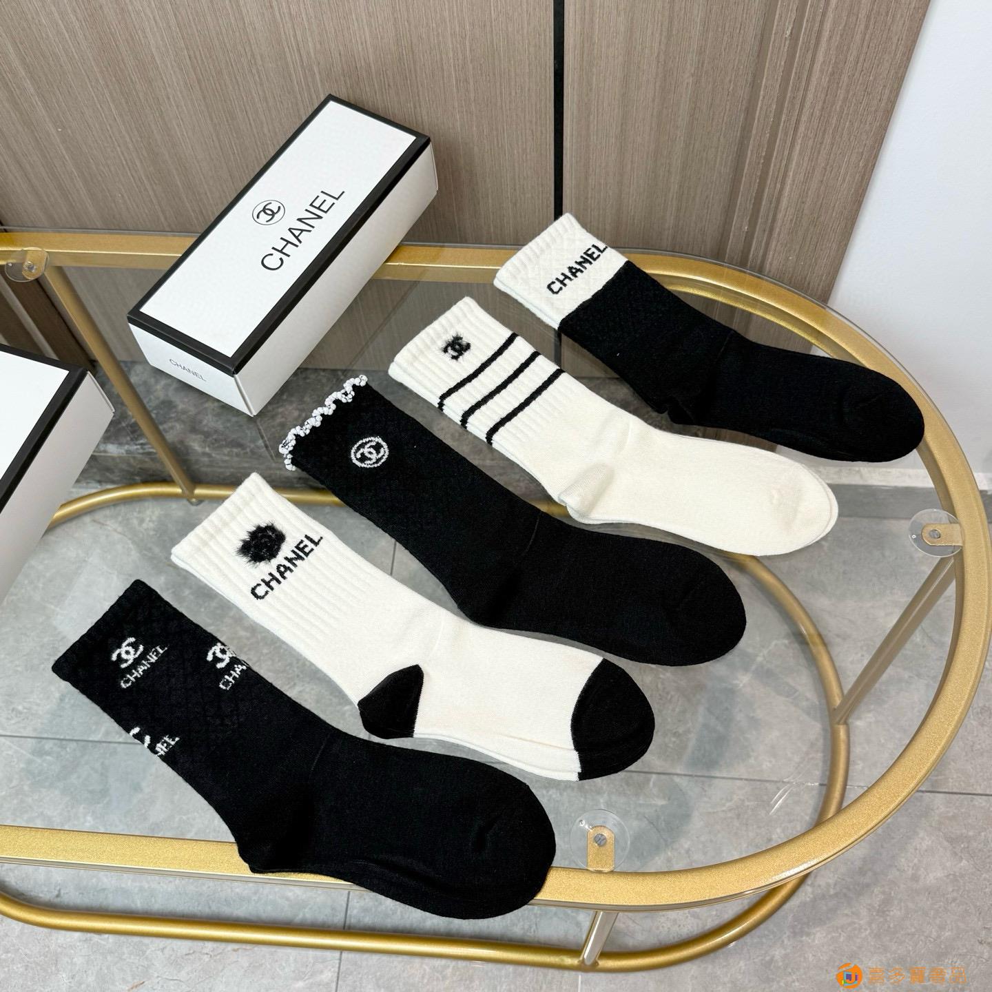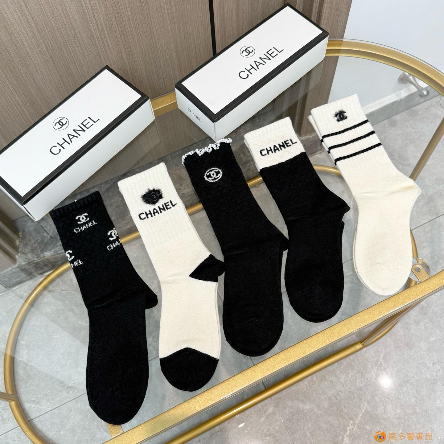 配包装【一盒五双】?Chanel 香奈儿 爆款卡中筒袜?高版