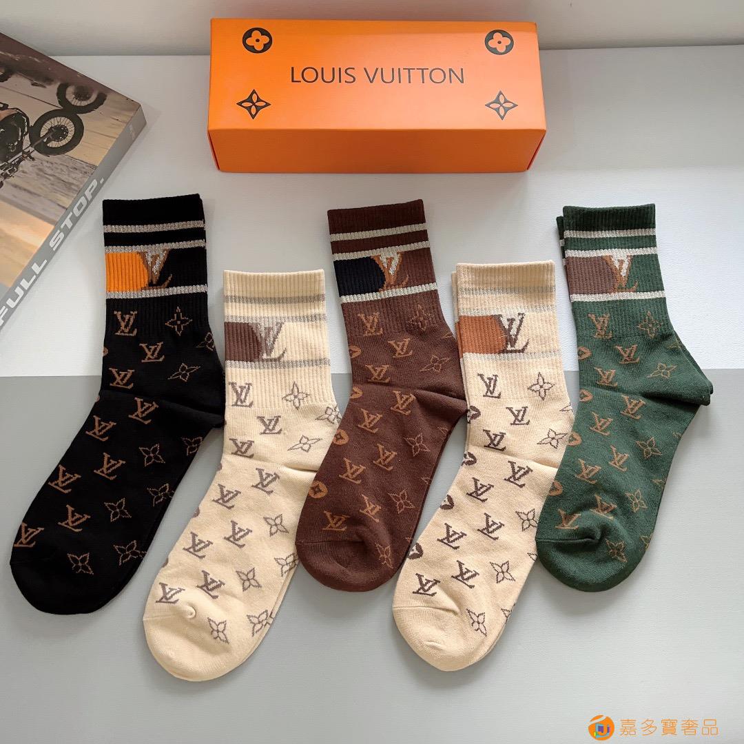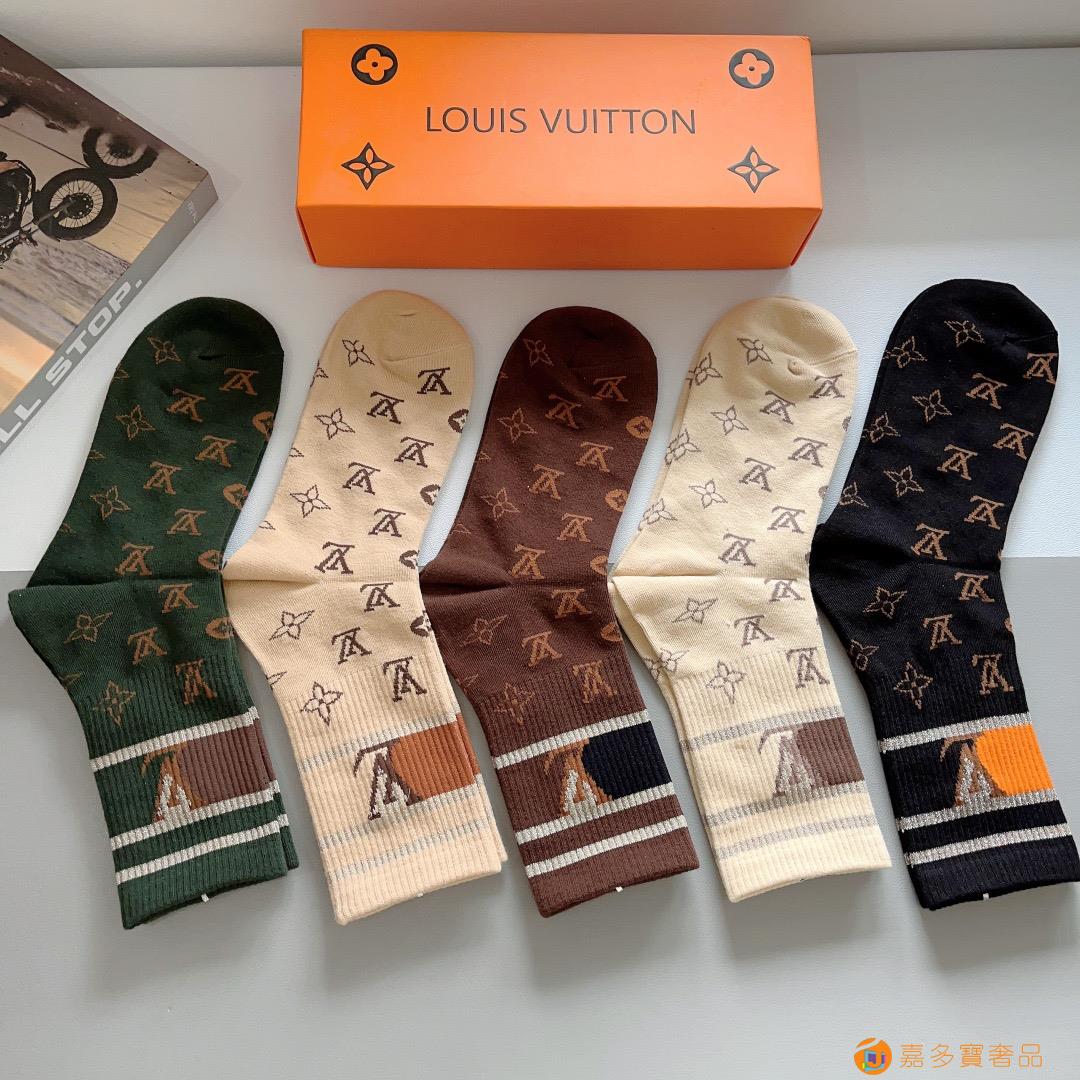 (一盒双) ? LV 路易威登 超火爆男款中筒袜子,纯棉面料