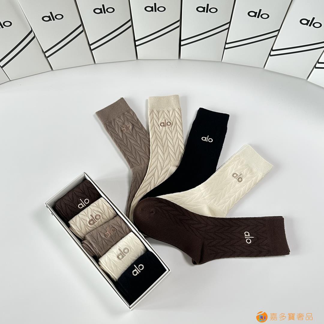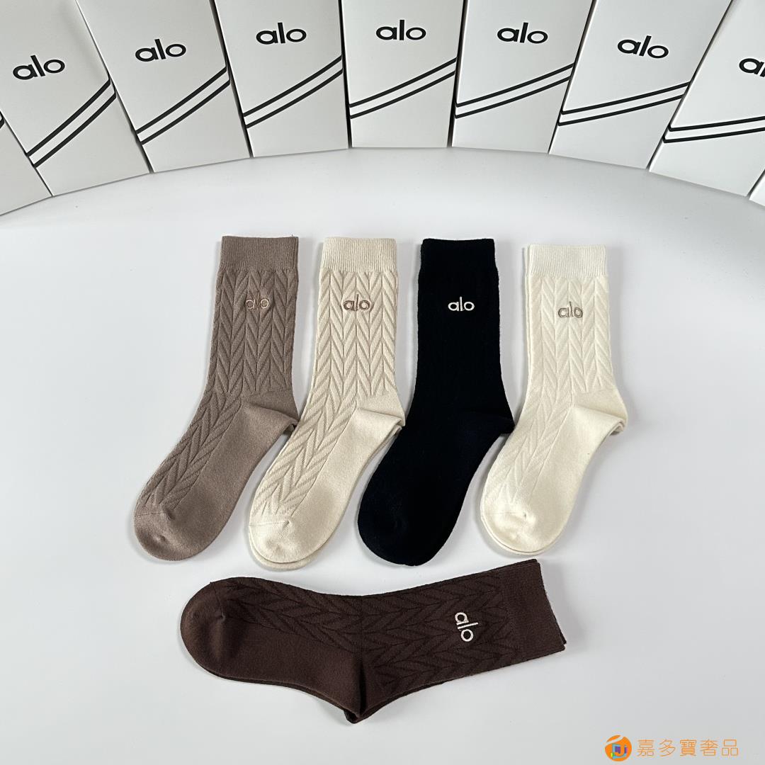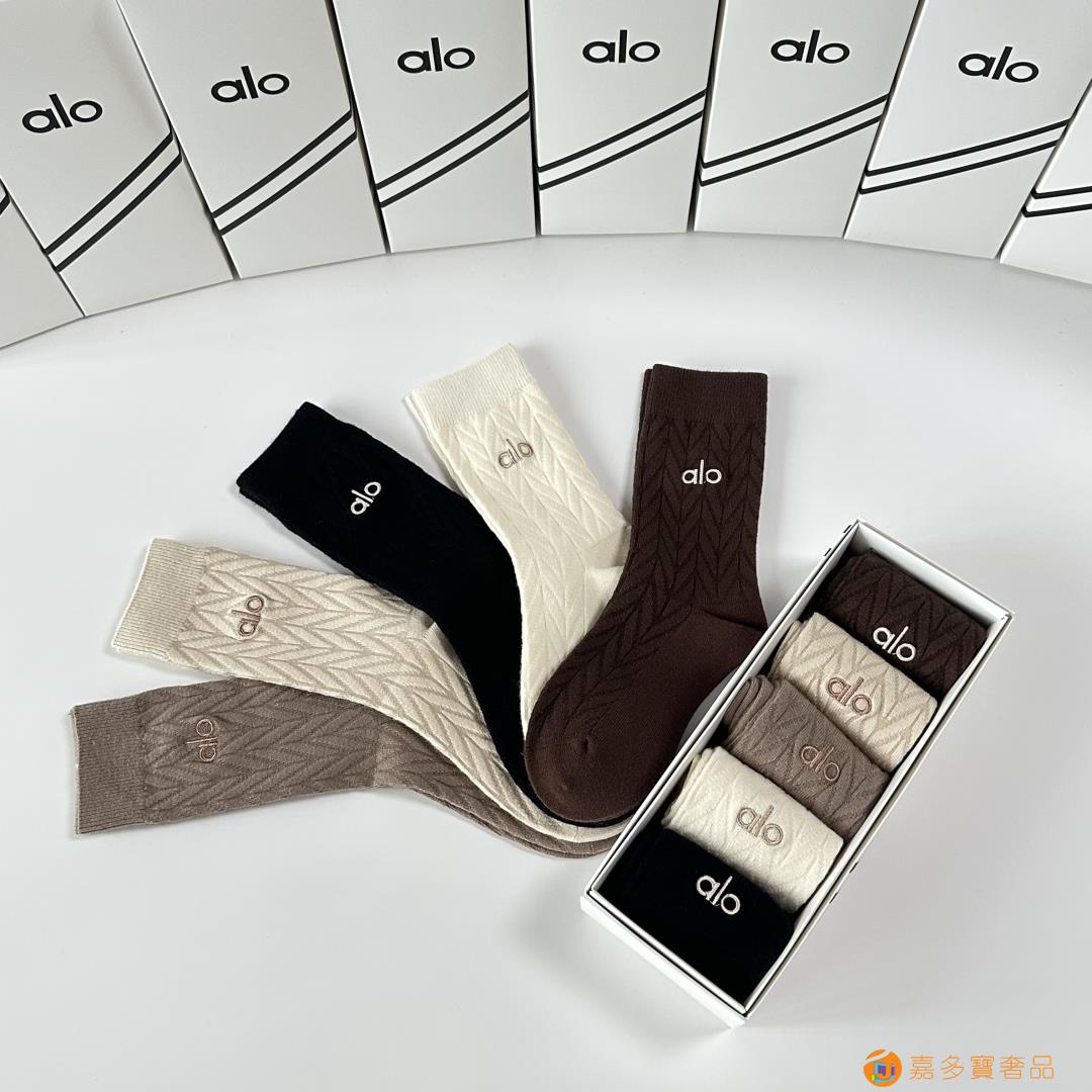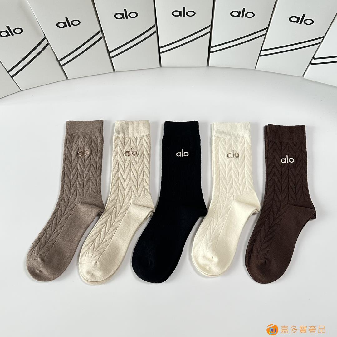 ALO 新款羊绒刺绣中长款堆堆袜袜子!一盒五双,