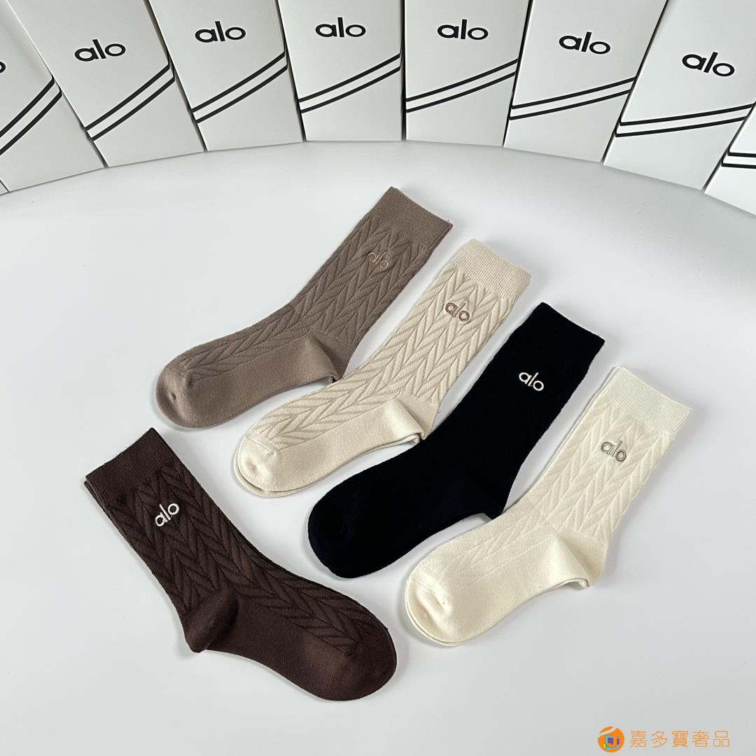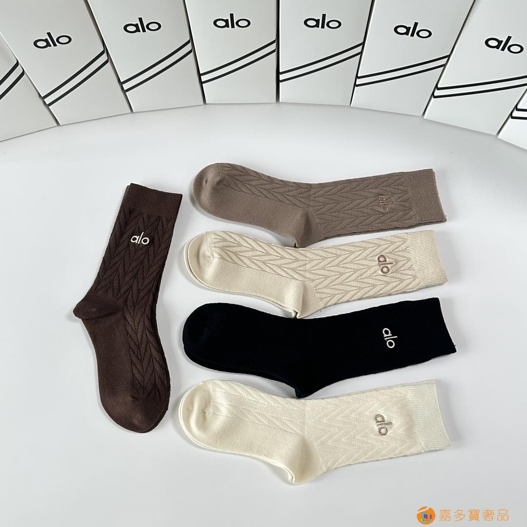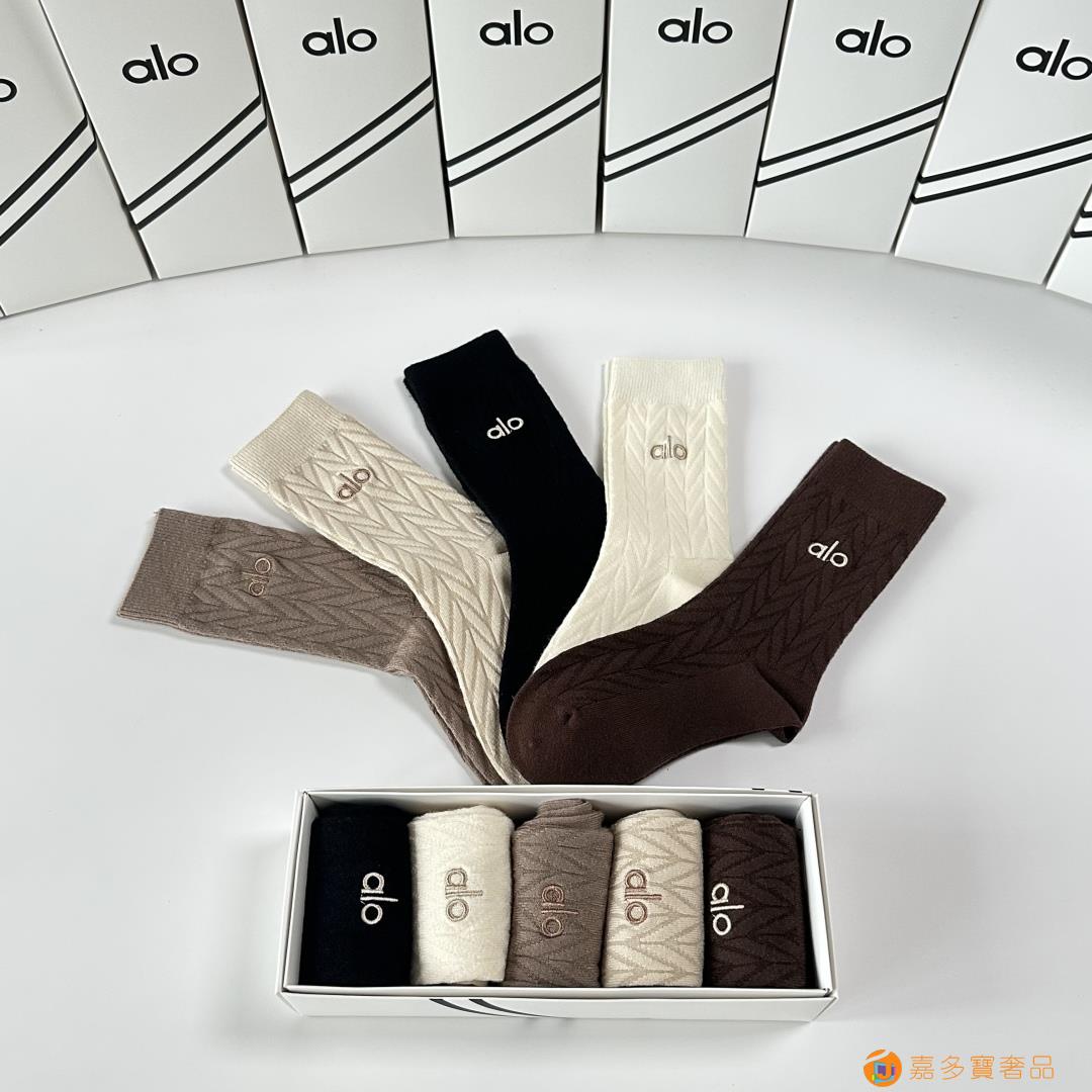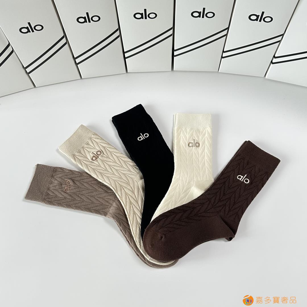 ALO 新款羊绒刺绣中长款堆堆袜袜子!一盒五双,