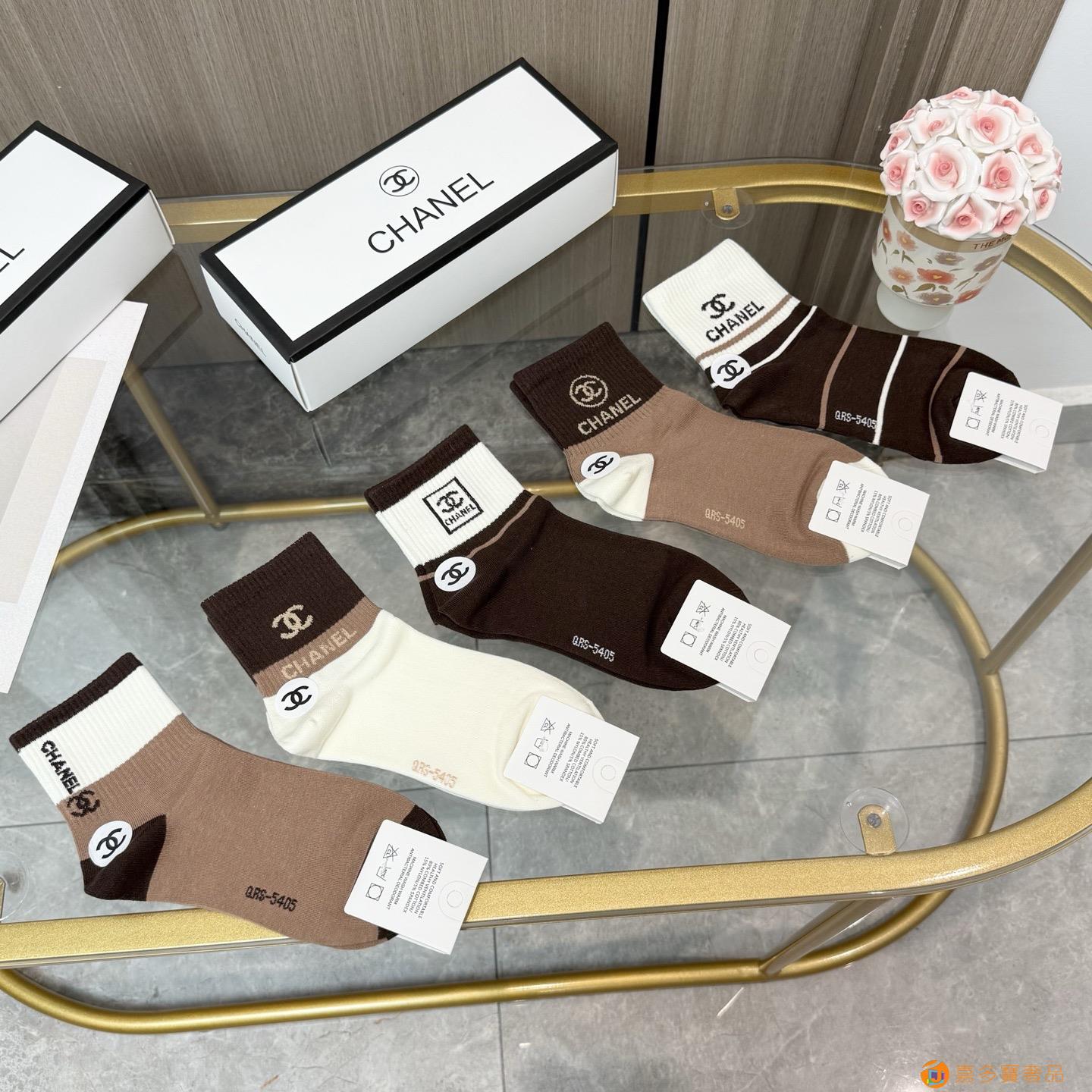 配包装【一盒五双】?Chanel 香奈儿 爆款卡中筒袜?高版