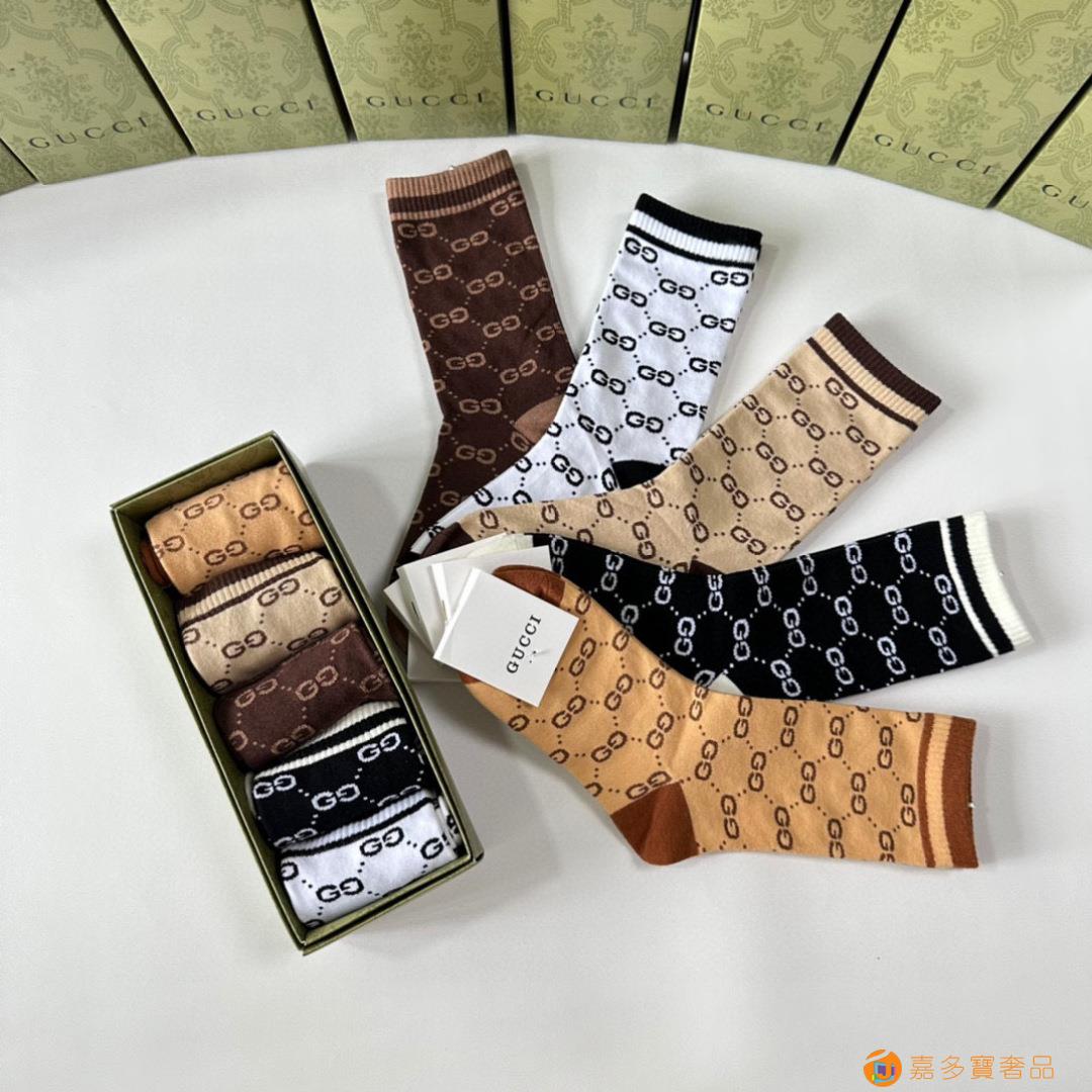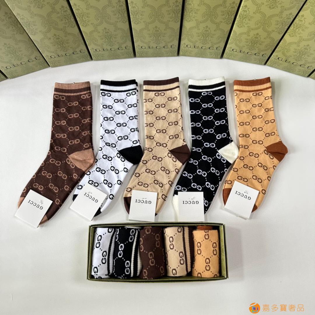 Gucci(古驰)新款中长款堆堆袜袜子!一盒五双,