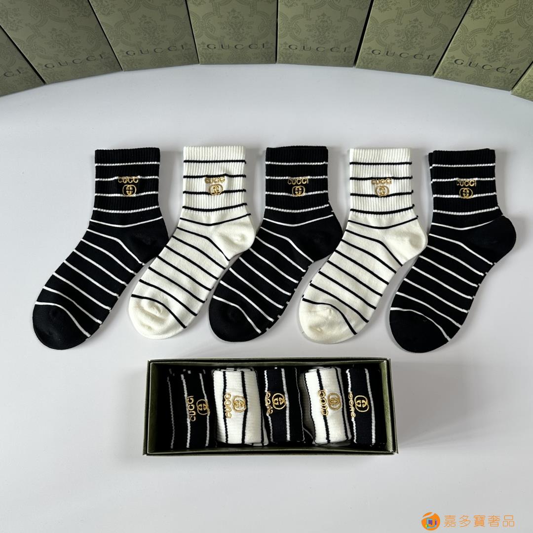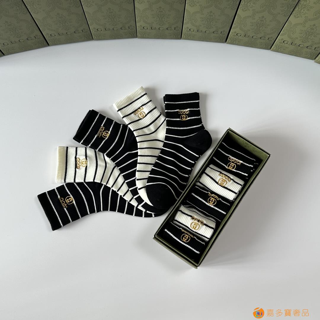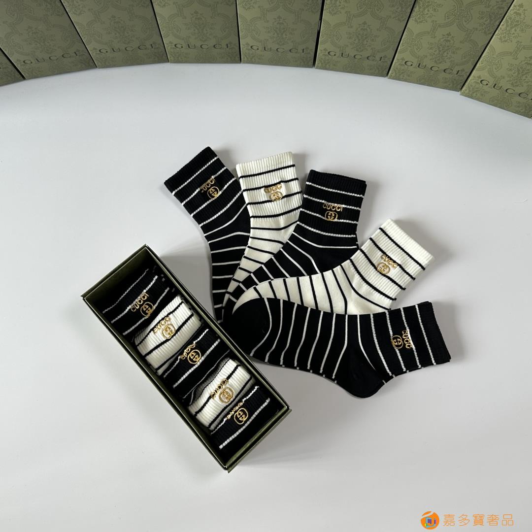 Gucci(古驰)新款中长款堆堆袜袜子!一盒五双,