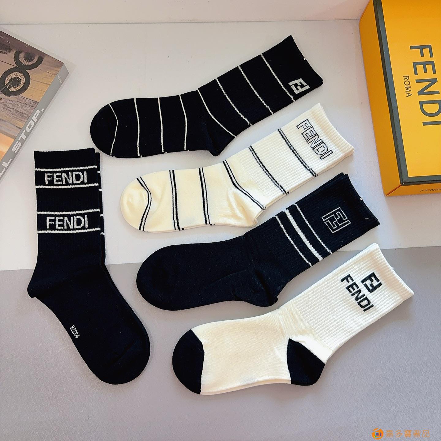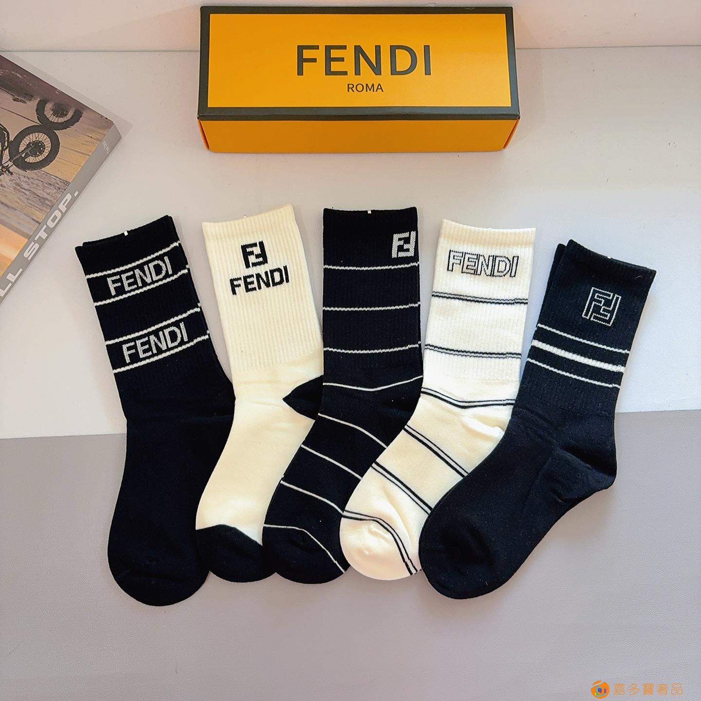 FENDI 芬迪 经典双F爆款长筒袜子 纯棉面