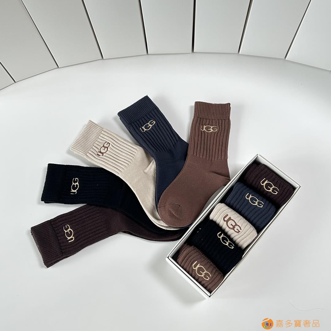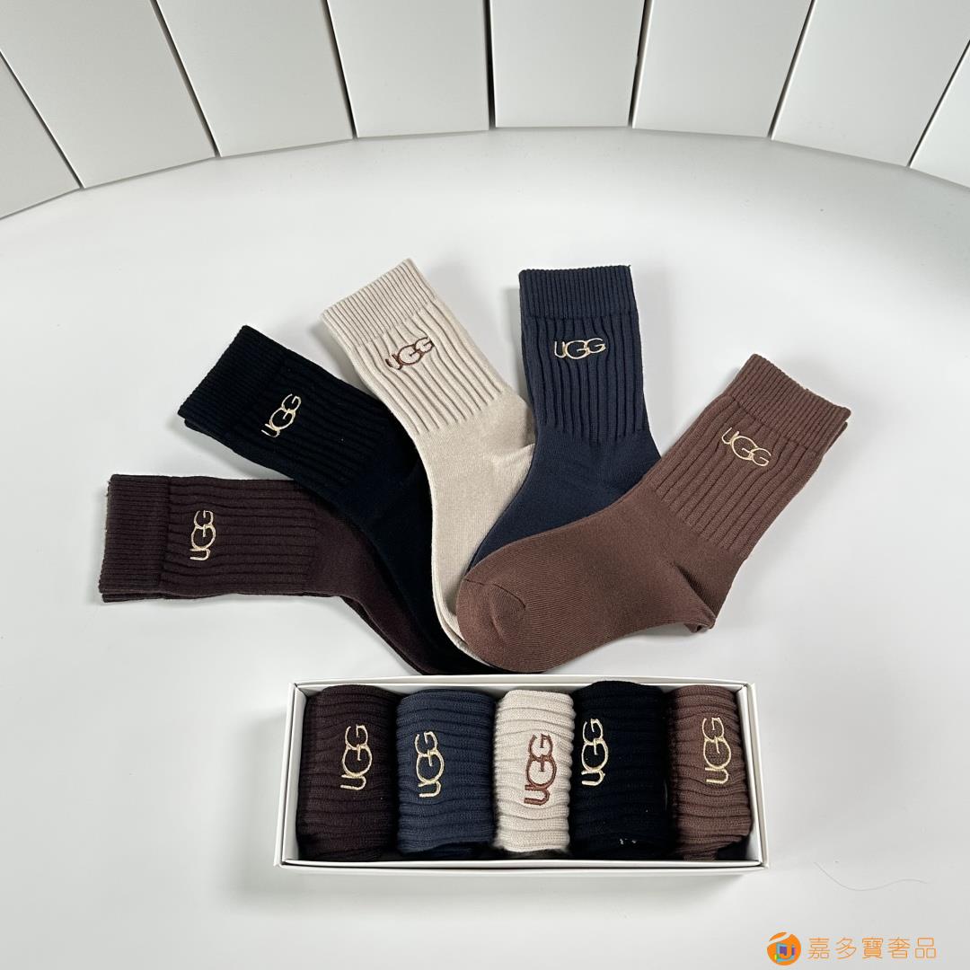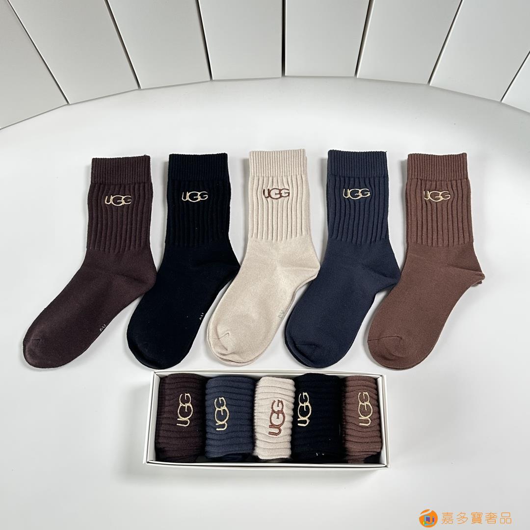 UGG.新款羊绒中长筒袜堆堆袜袜子!一盒五双,