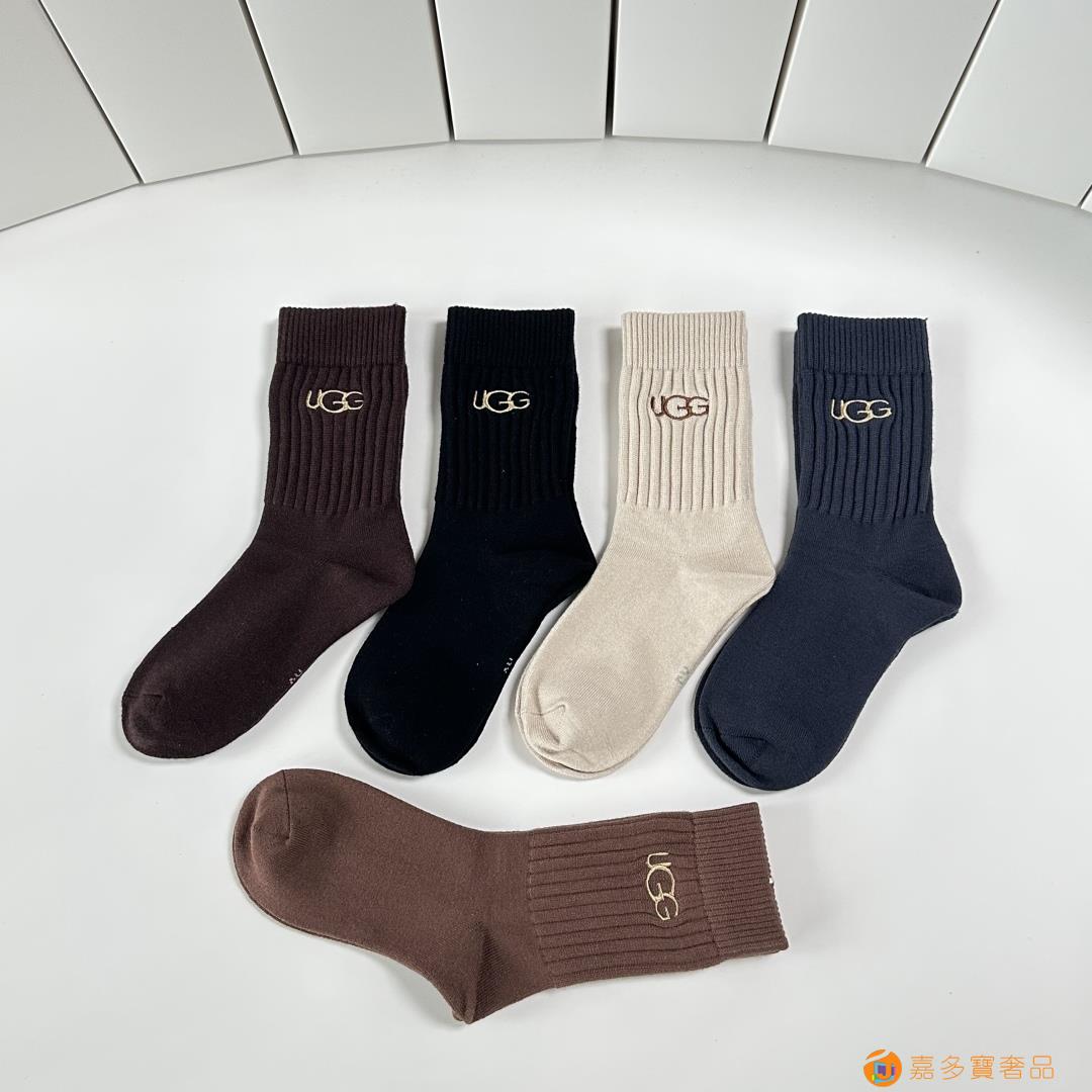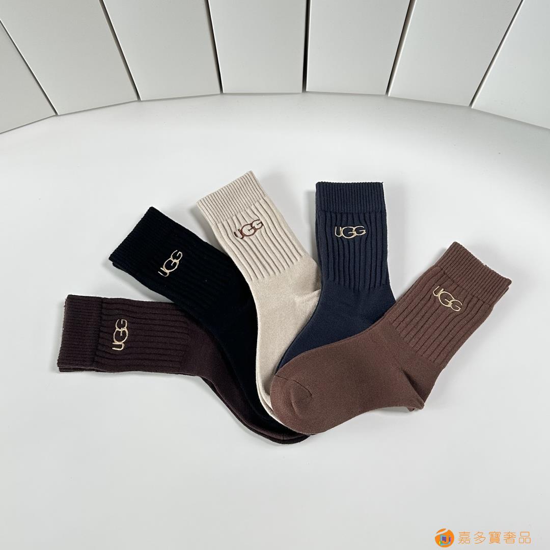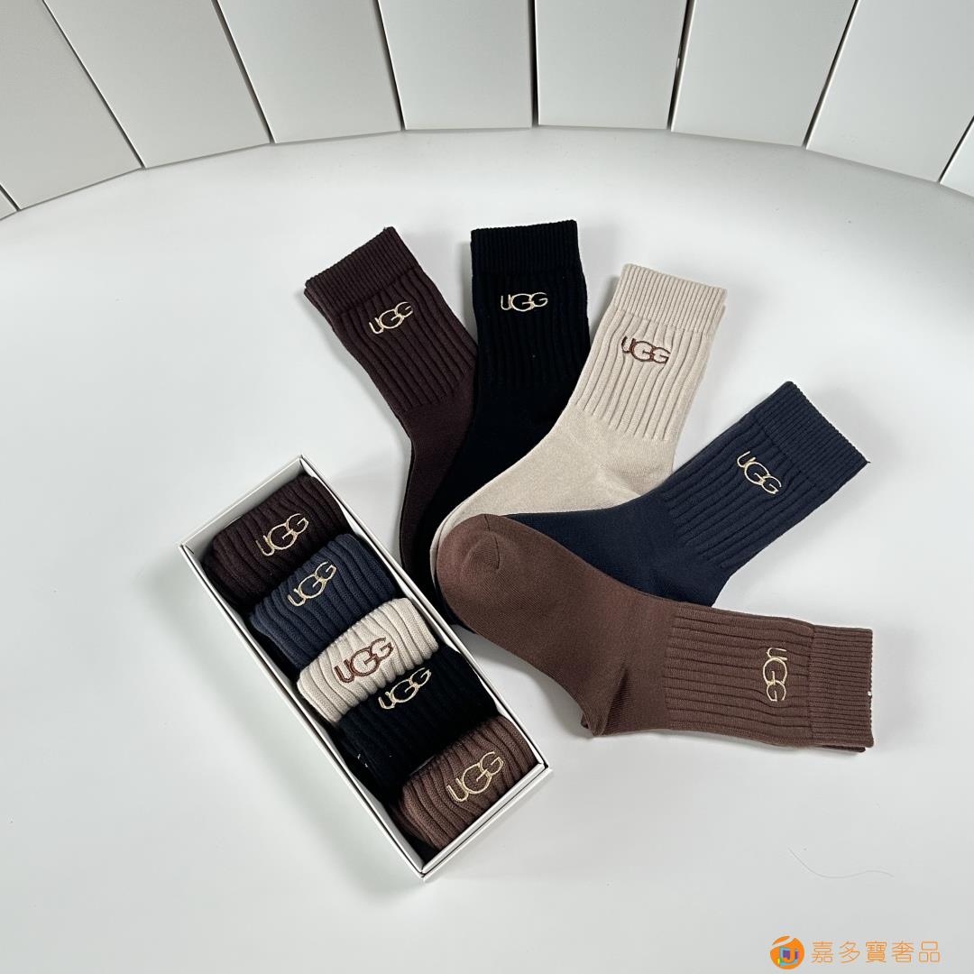 UGG.新款羊绒中长筒袜堆堆袜袜子!一盒五双,