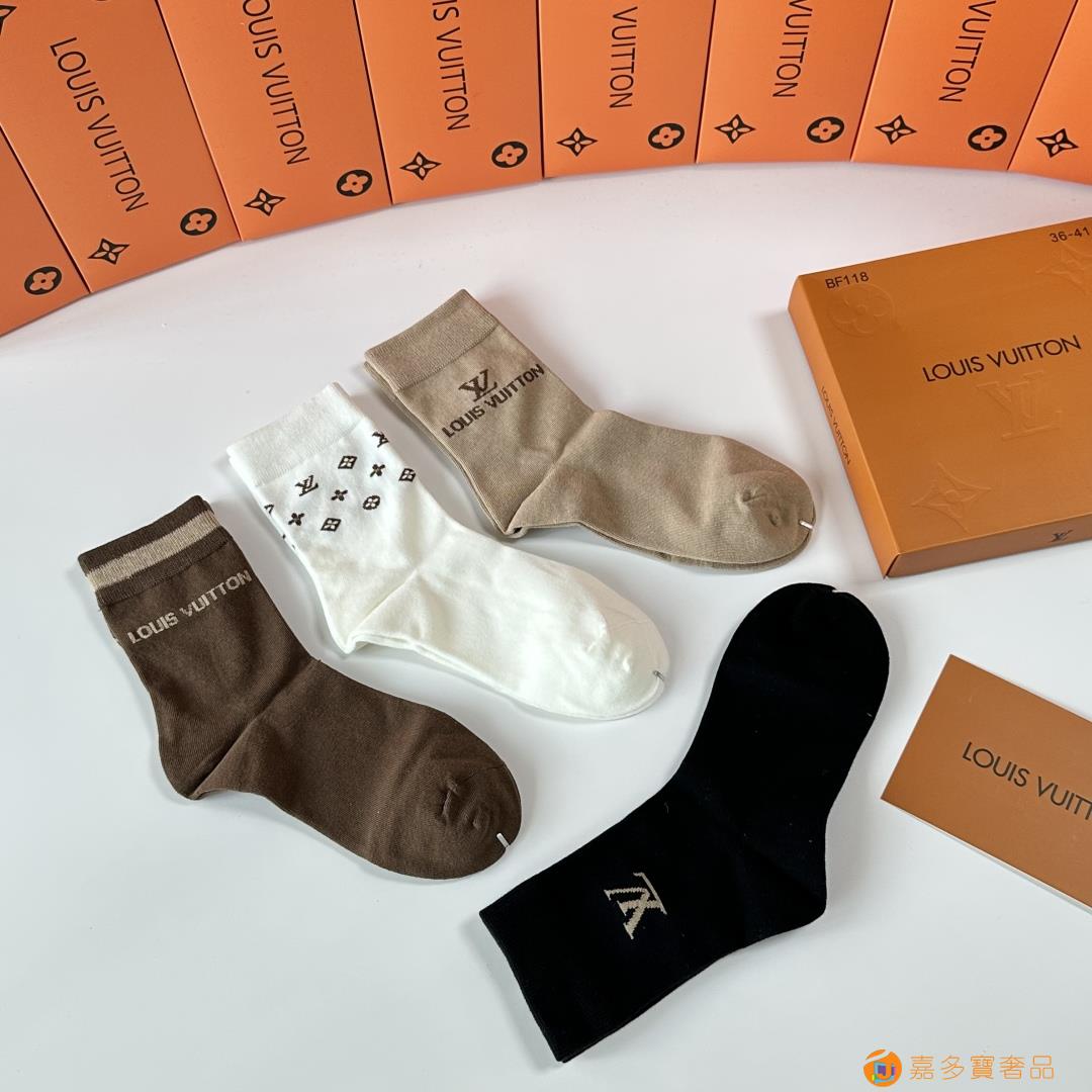 LV(路易威登)新款礼盒装中长款堆堆袜袜子!一