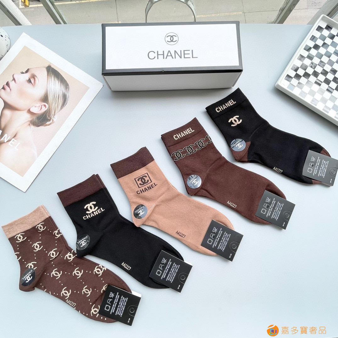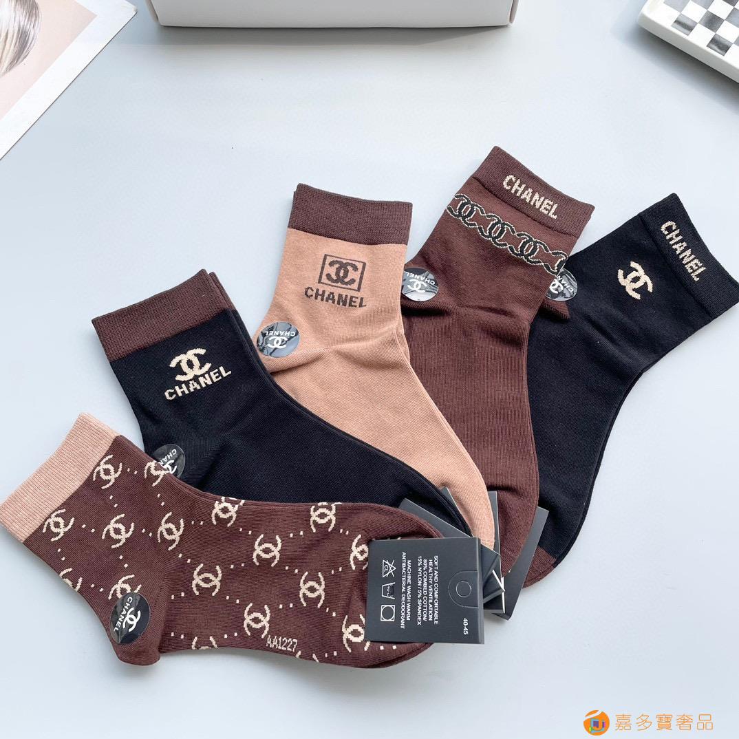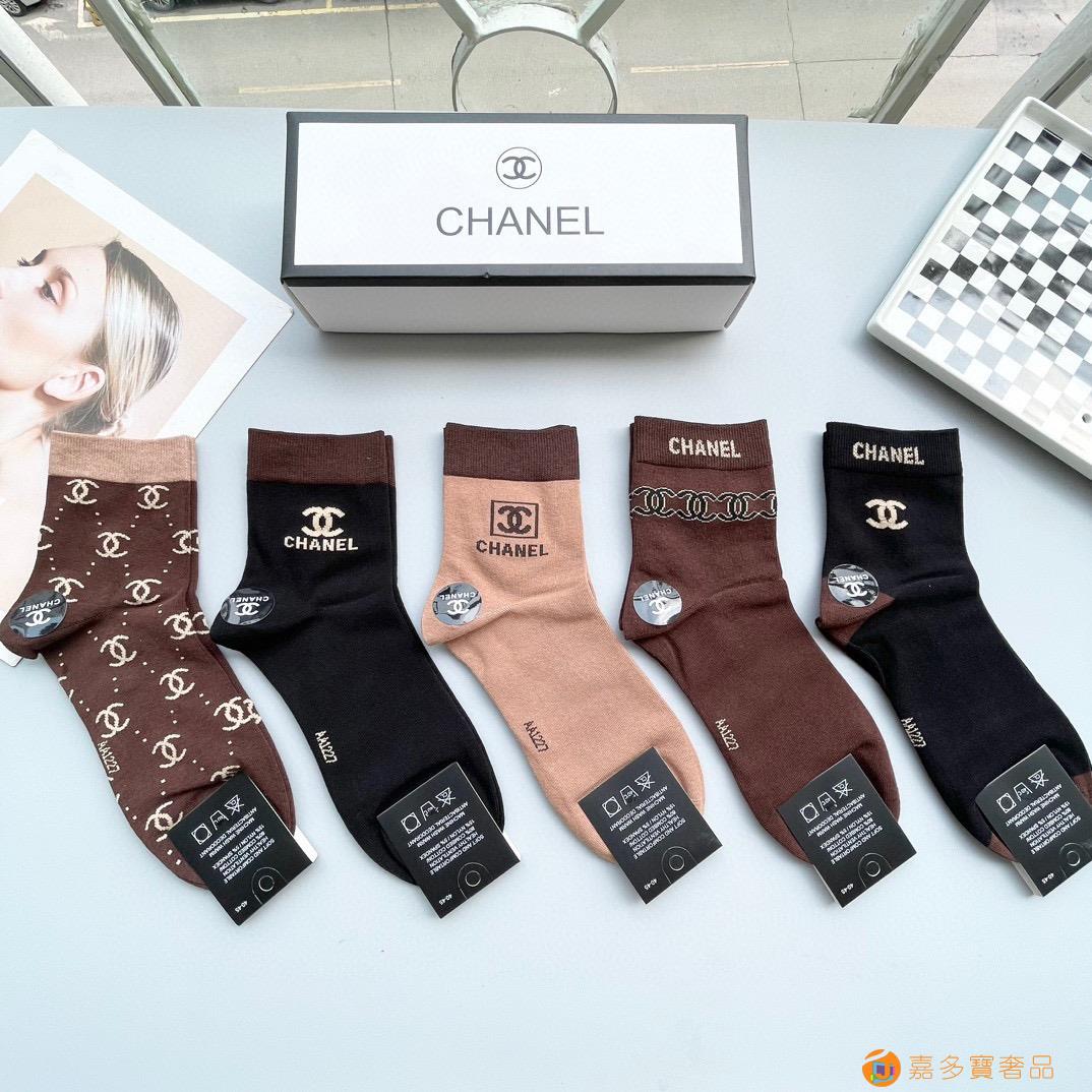 配包装【一盒五双】?Chanel 香奈儿 爆款中筒袜?高版本