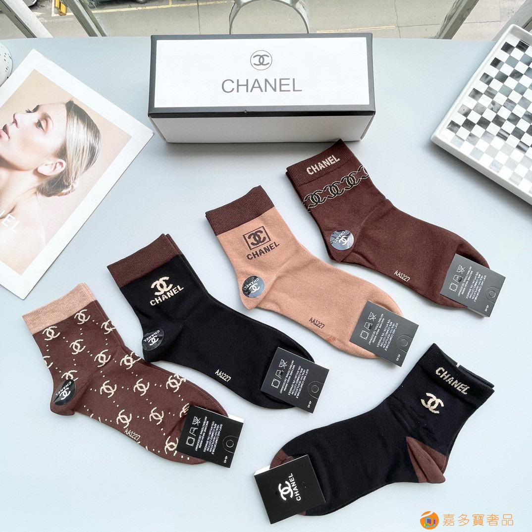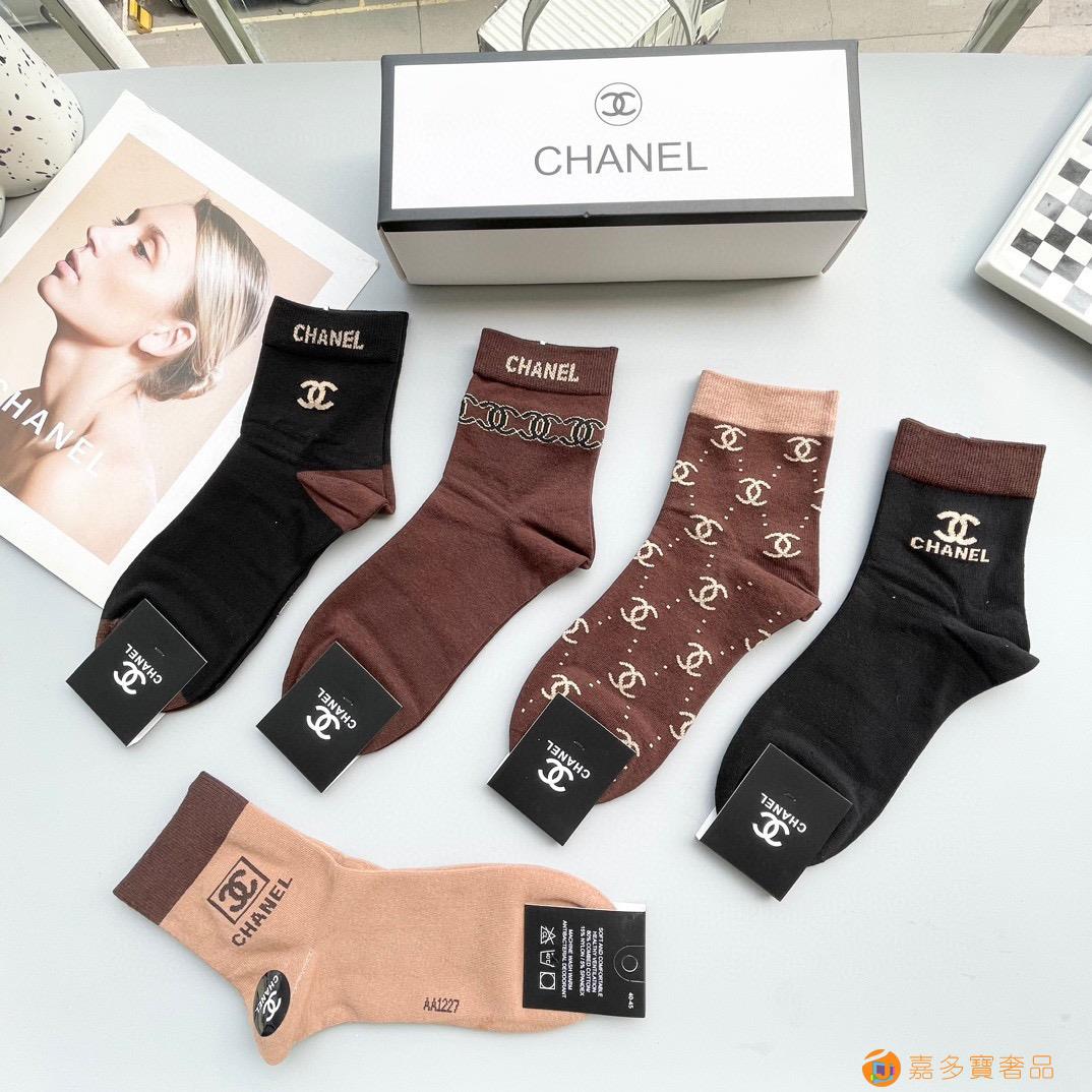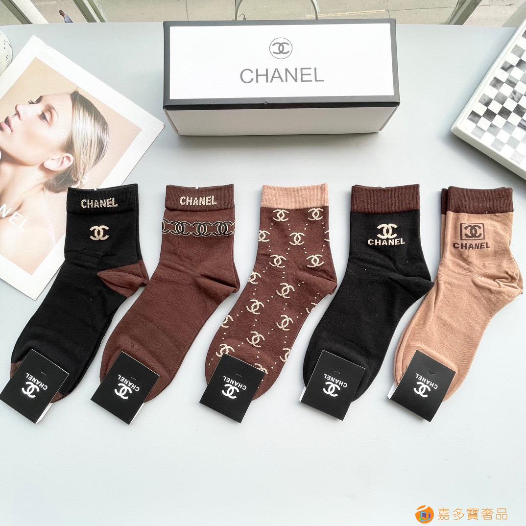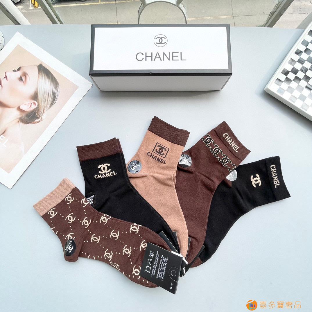 配包装【一盒五双】?Chanel 香奈儿 爆款中筒袜?高版本