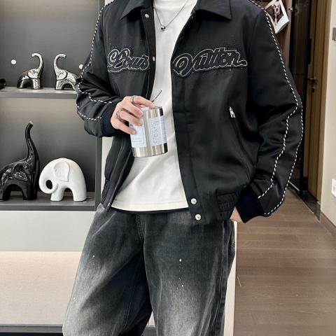 - LV 满印字母烧花绣拉链连帽夹克男女同款外套!