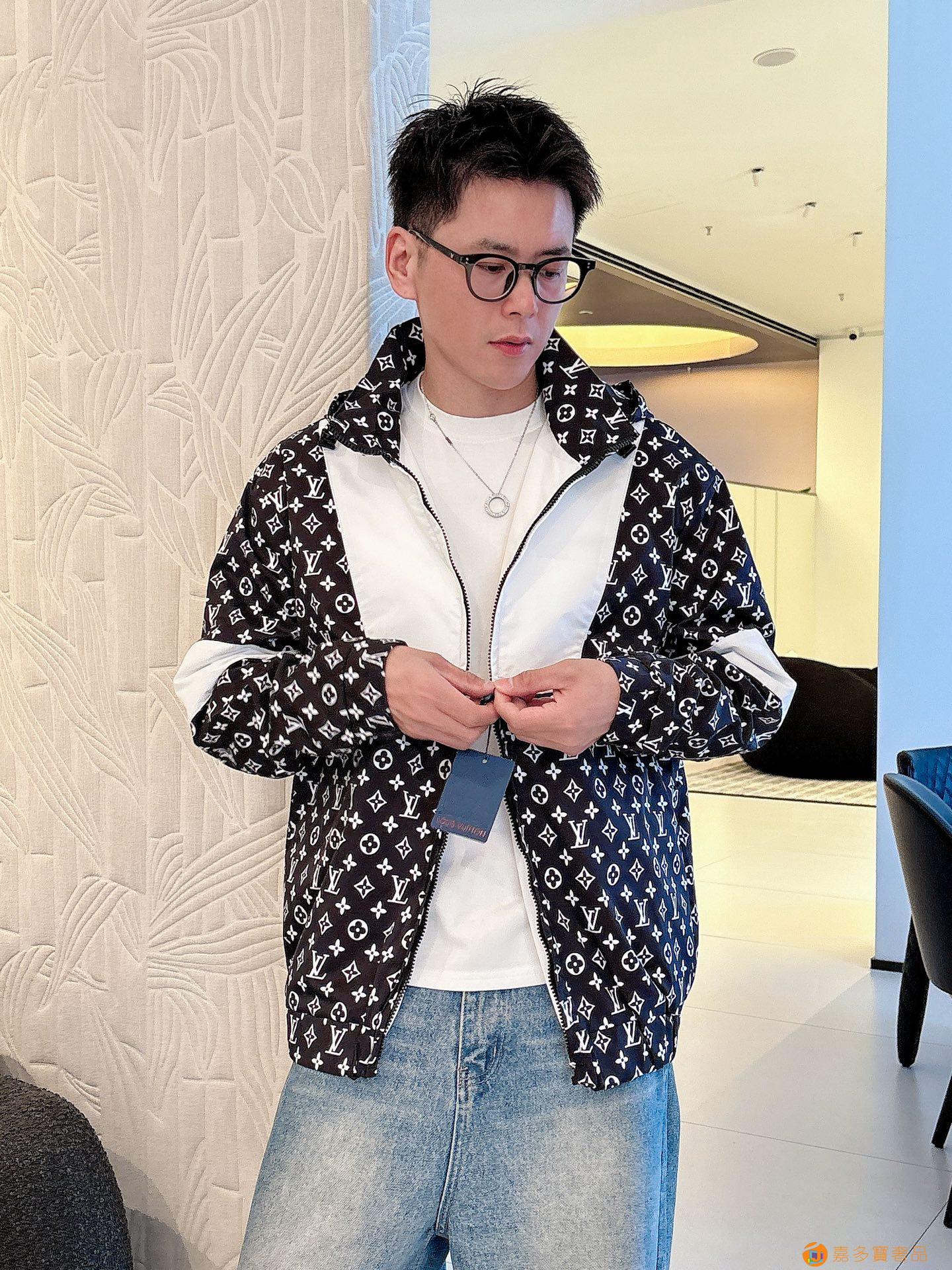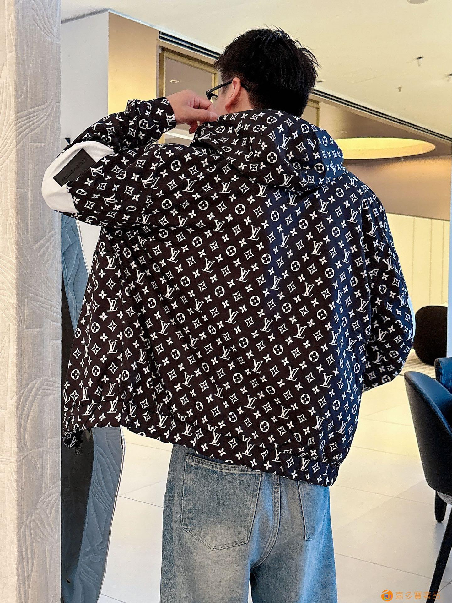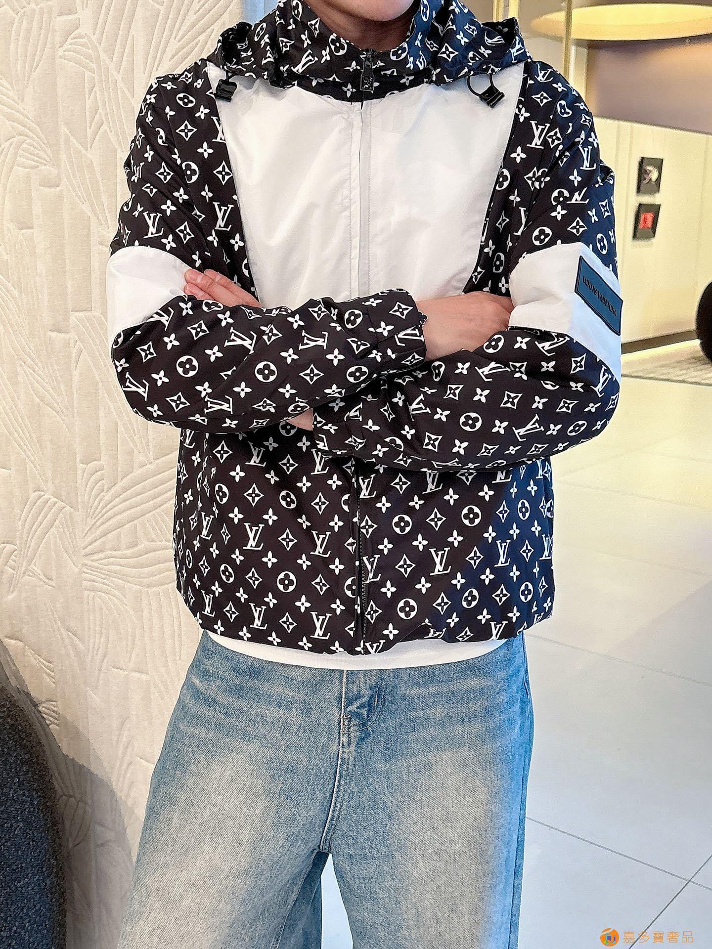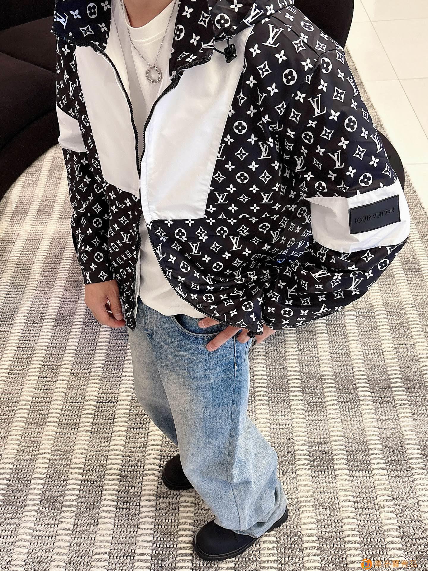- LV 满印字母烧花绣拉链连帽夹克男女同款外套!