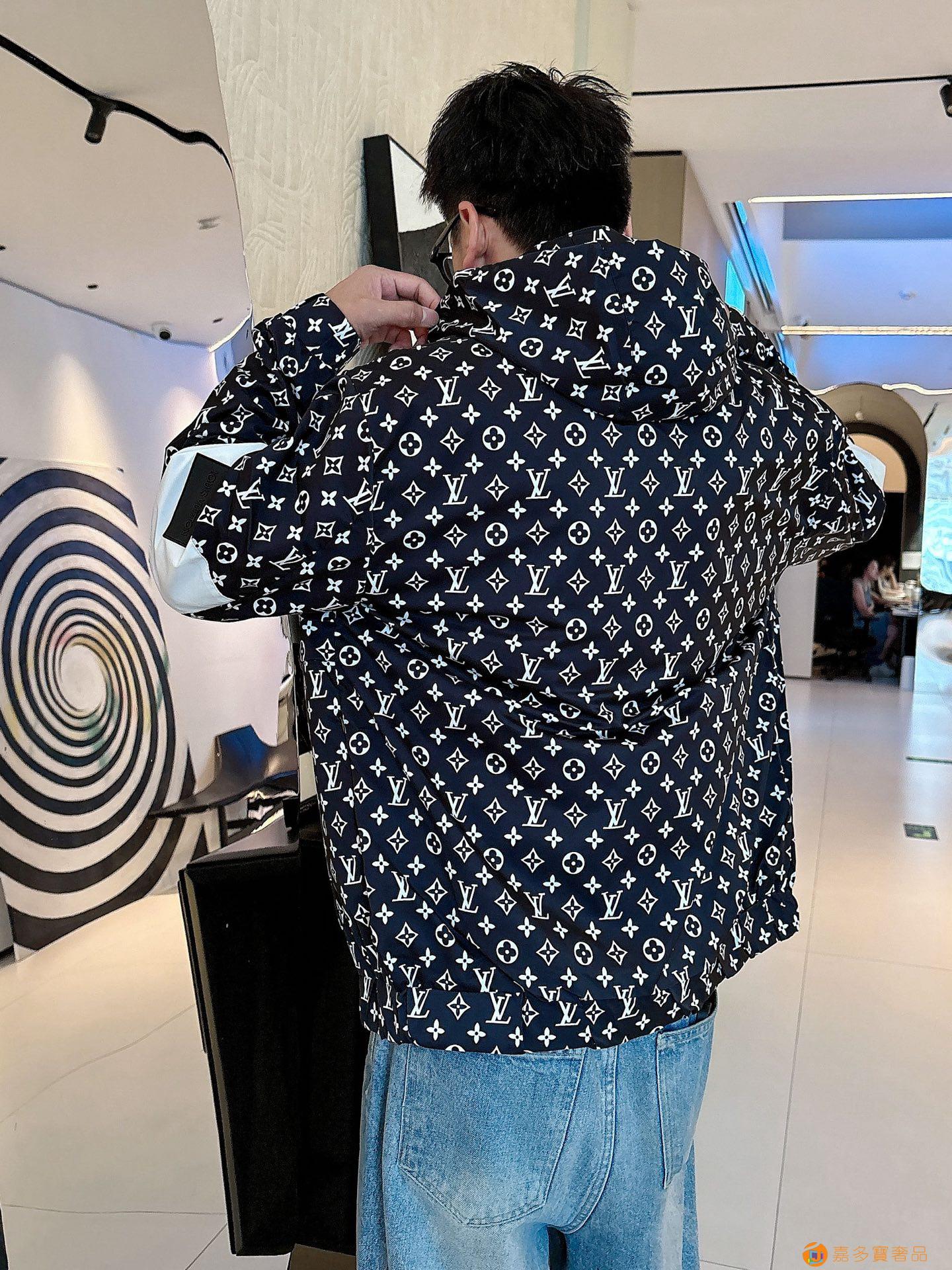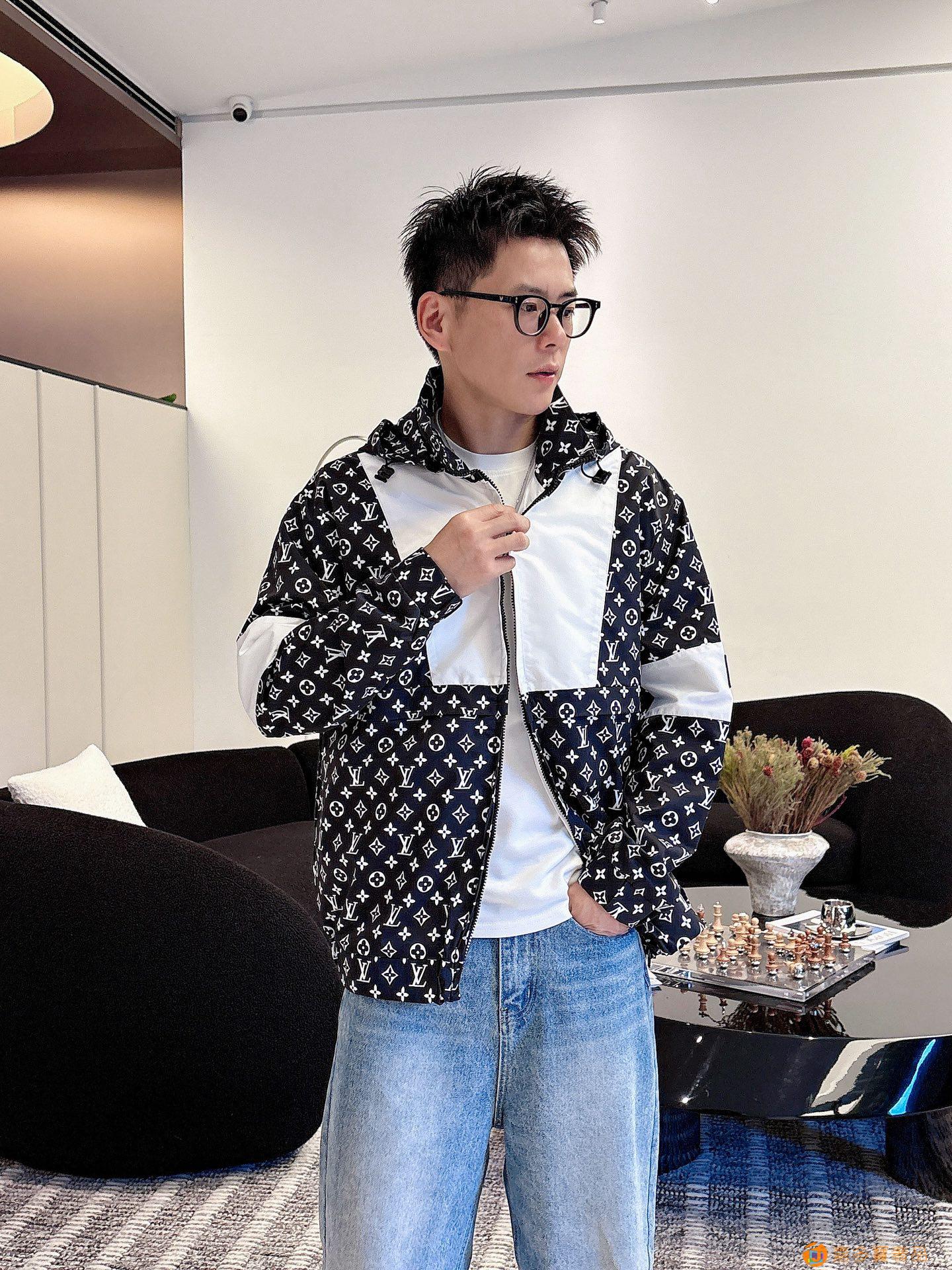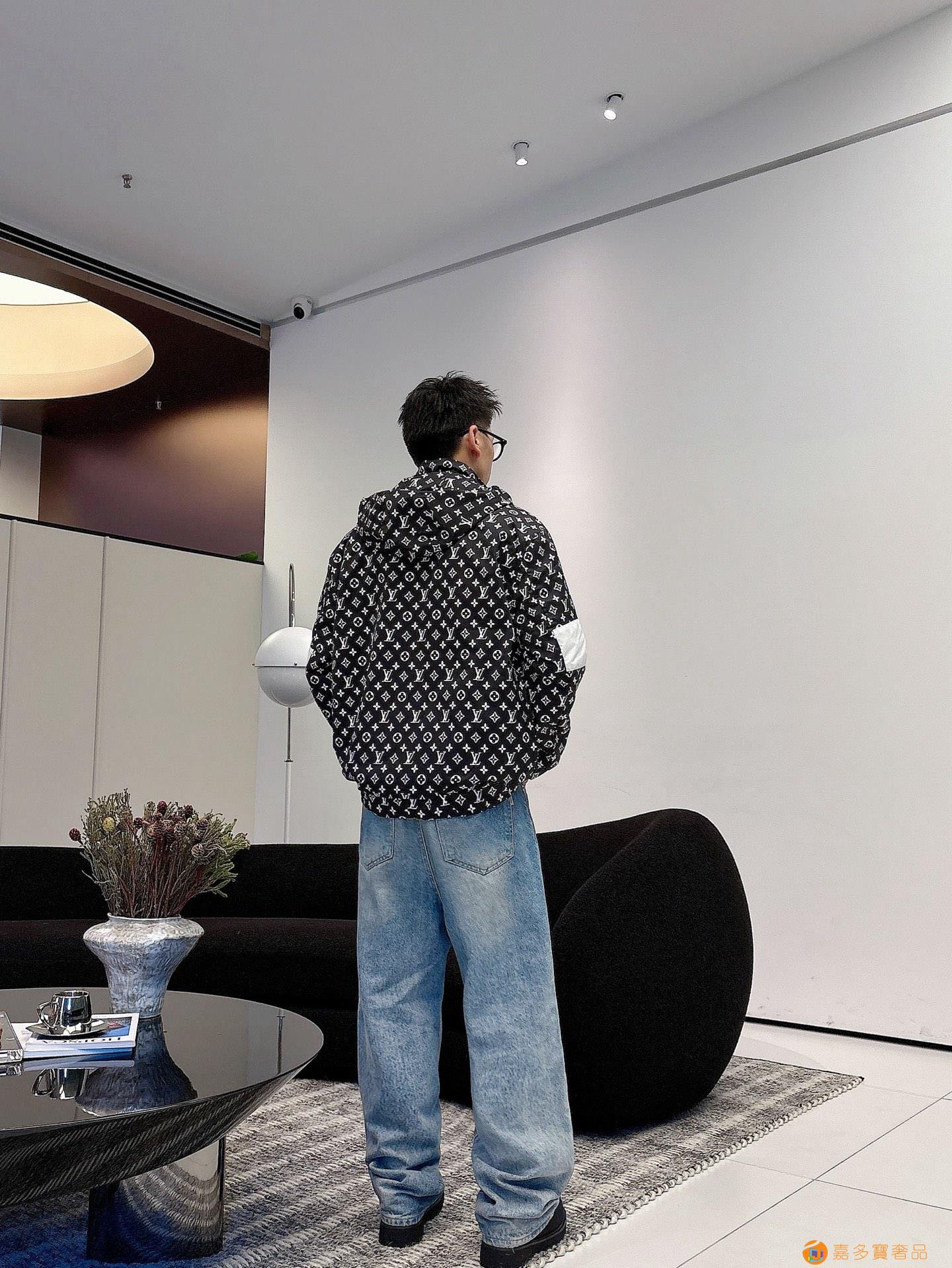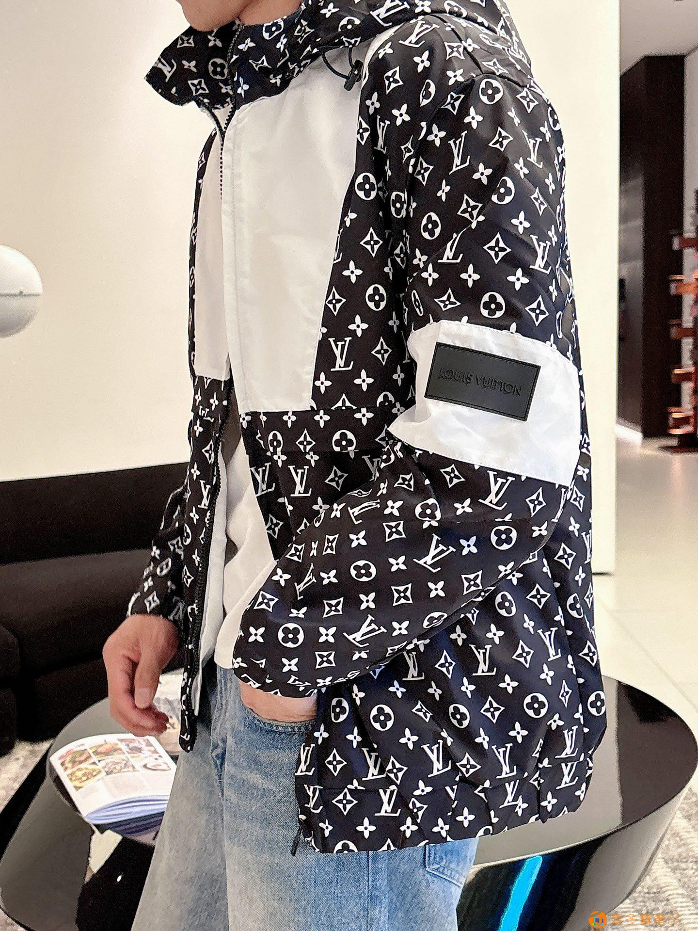 - LV 满印字母烧花绣拉链连帽夹克男女同款外套!