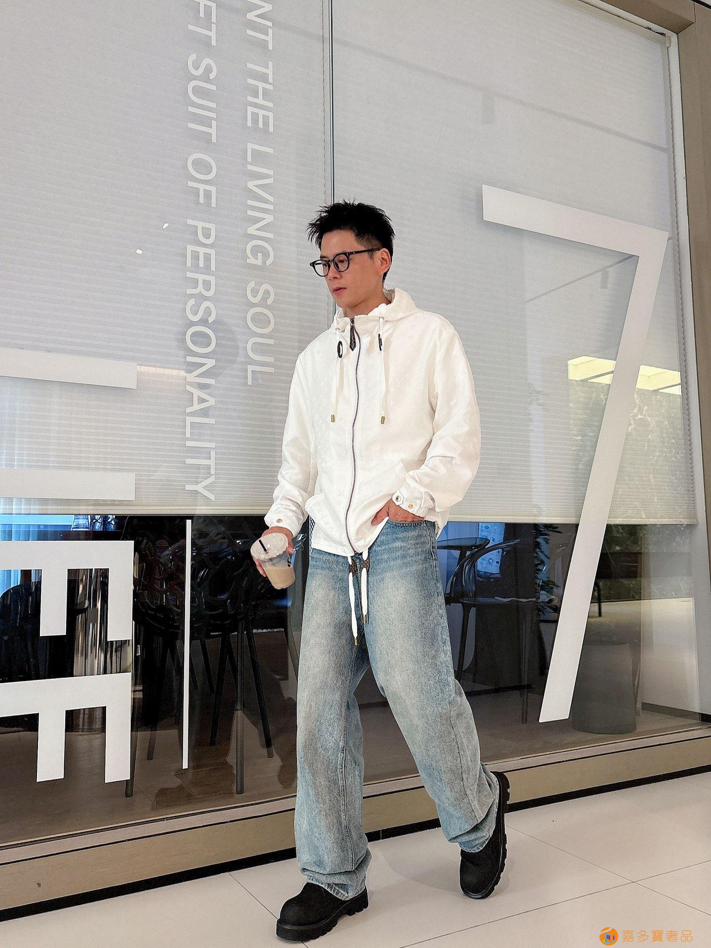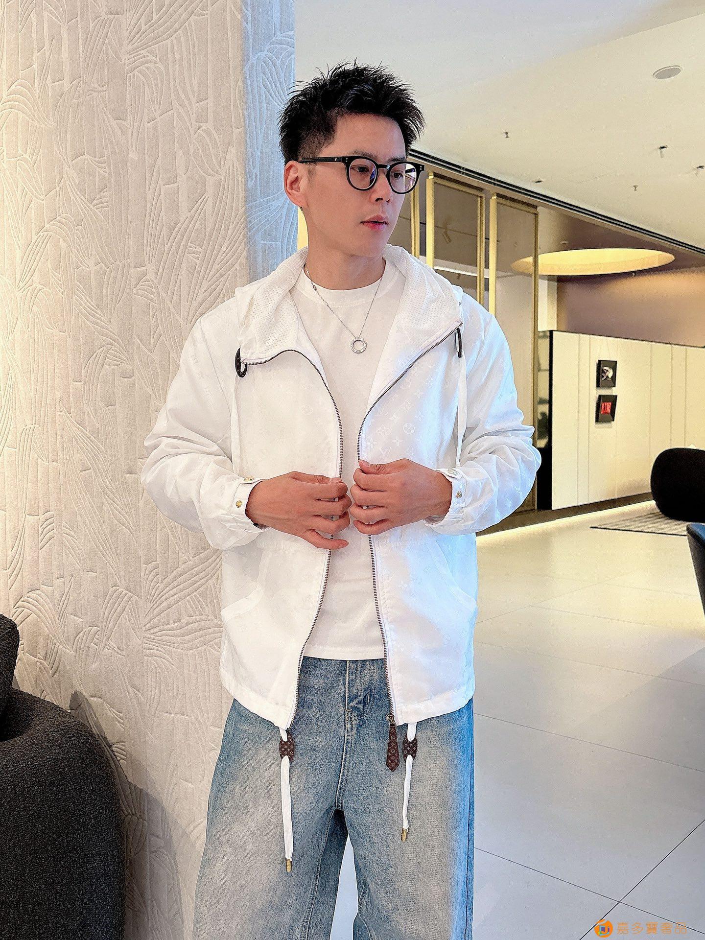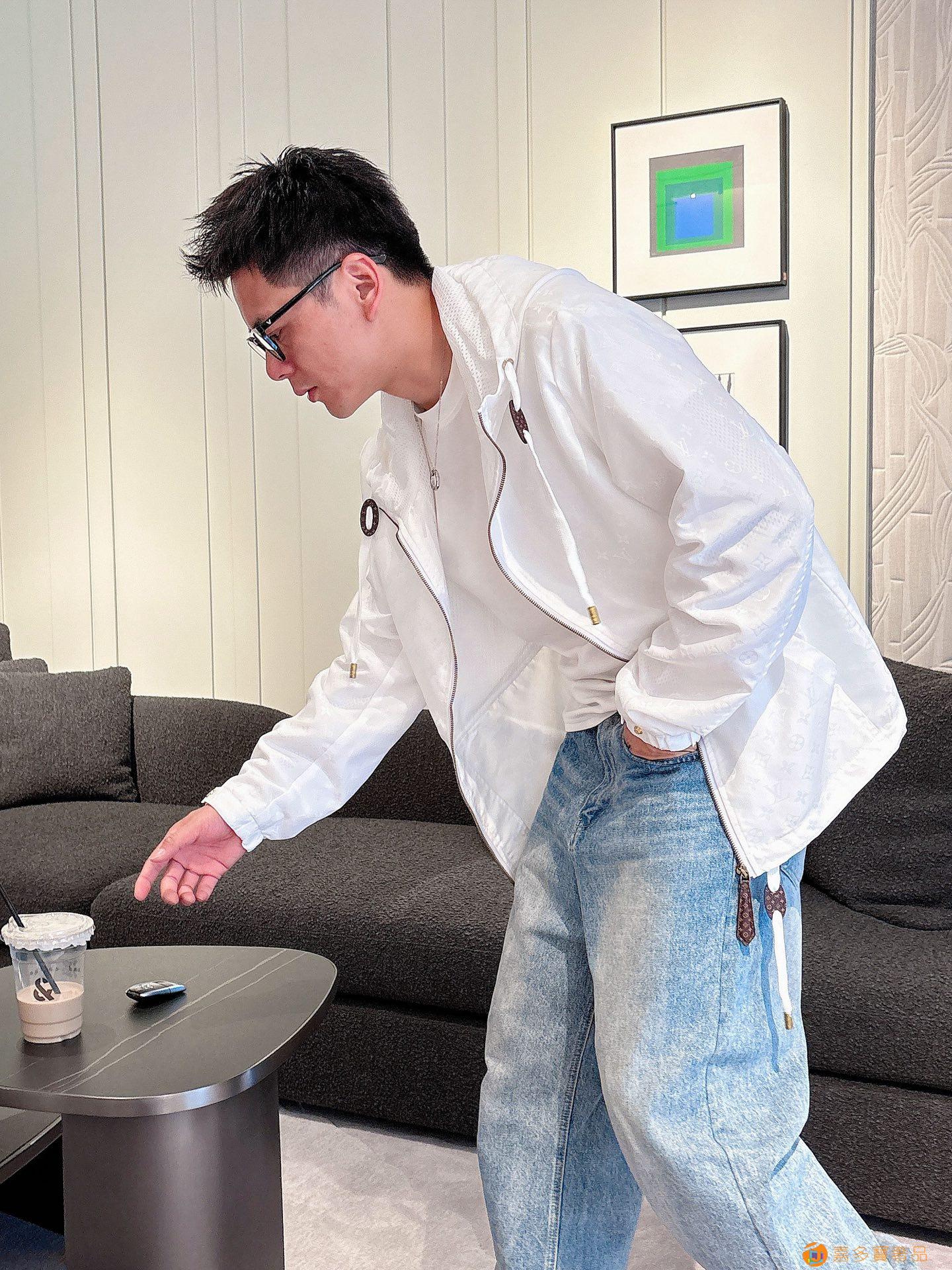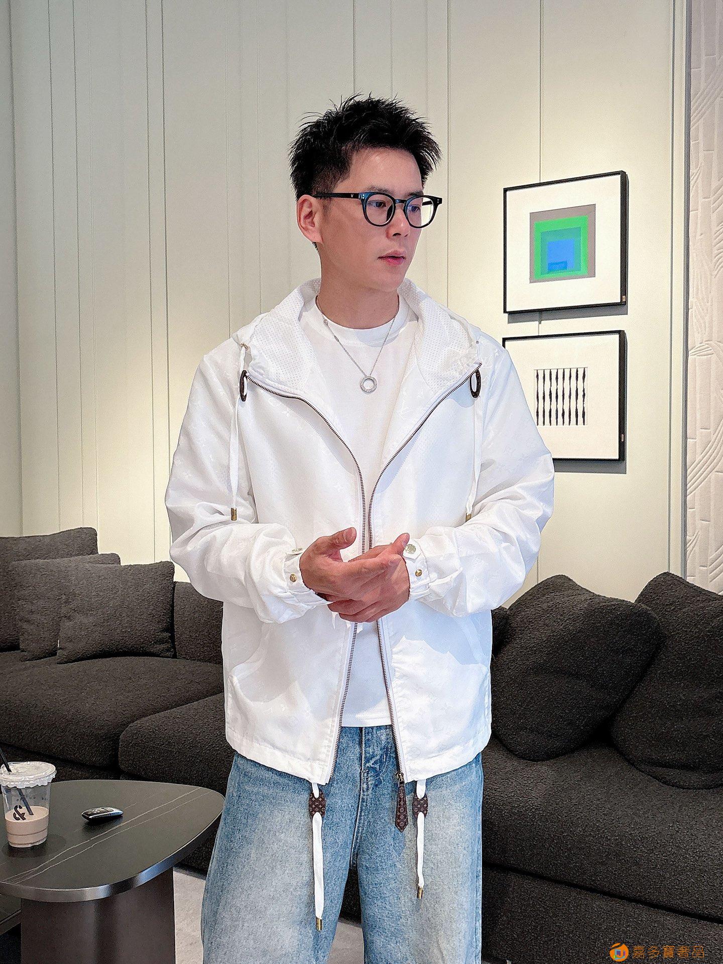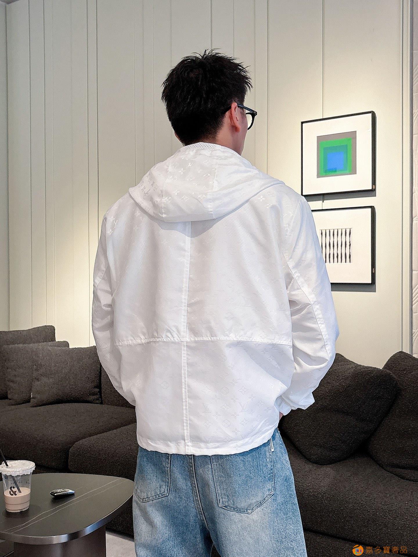 - LV 满印字母烧花绣拉链连帽夹克男女同款外套!
