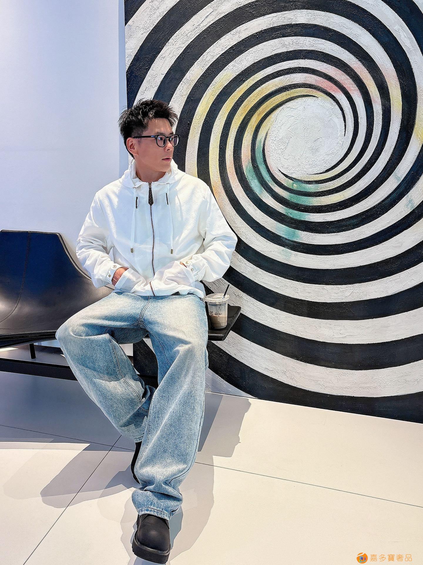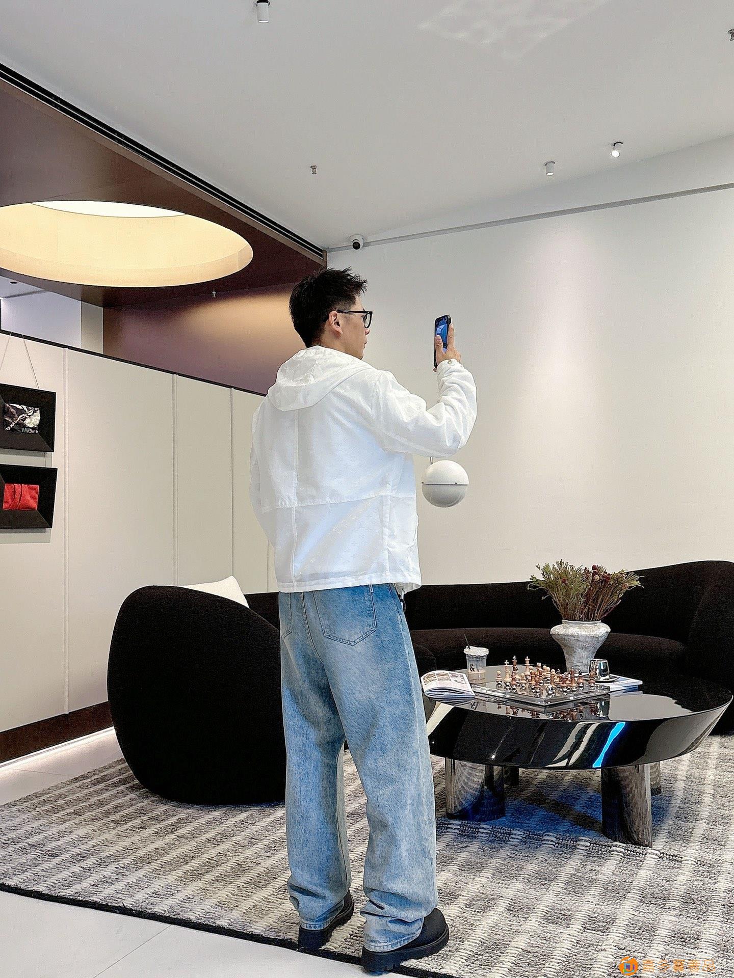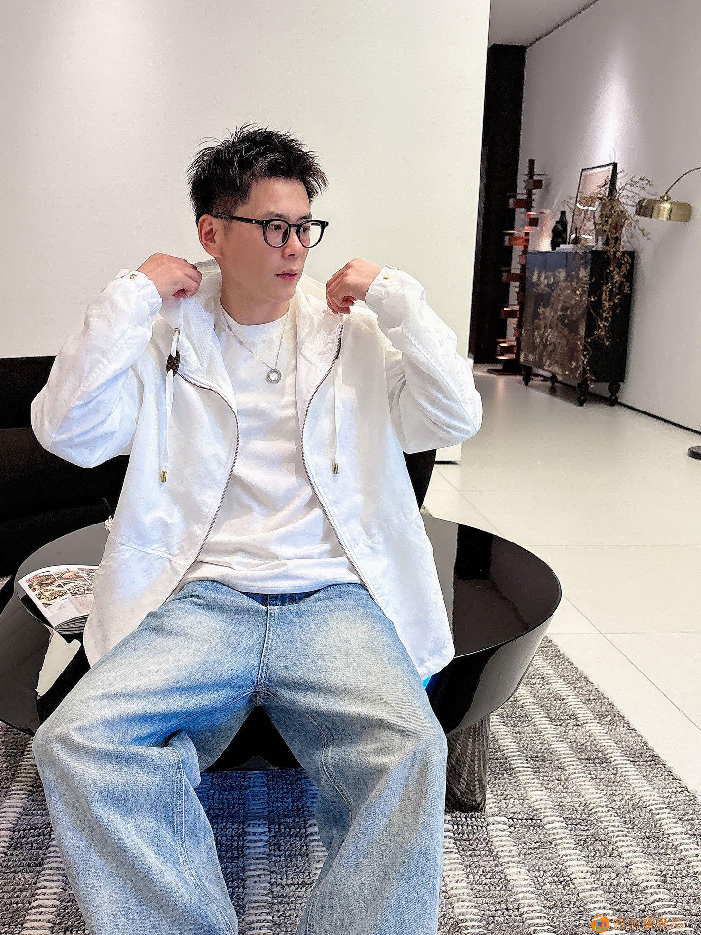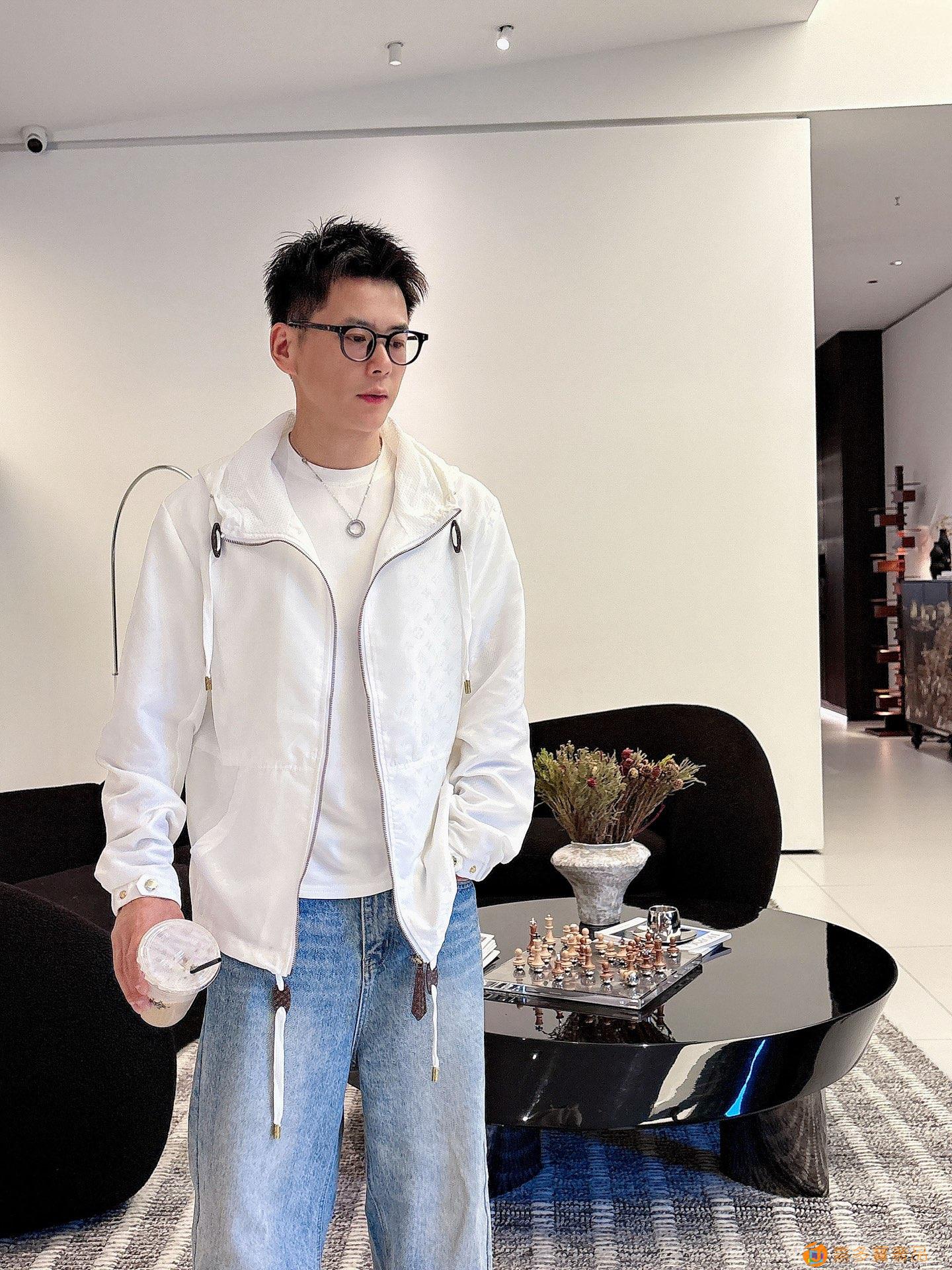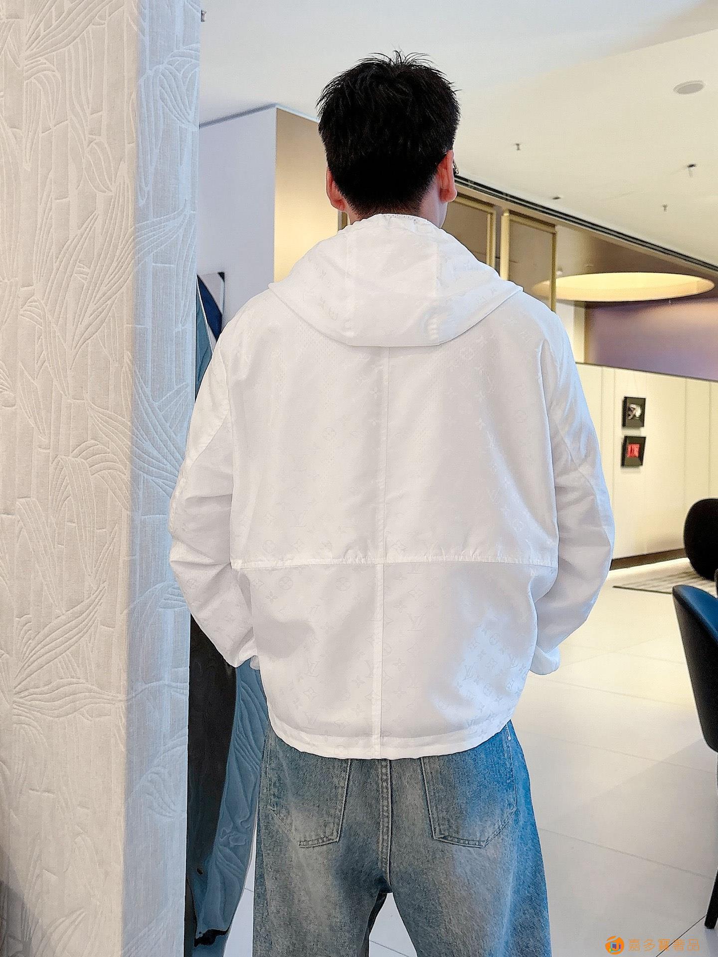- LV 满印字母烧花绣拉链连帽夹克男女同款外套!