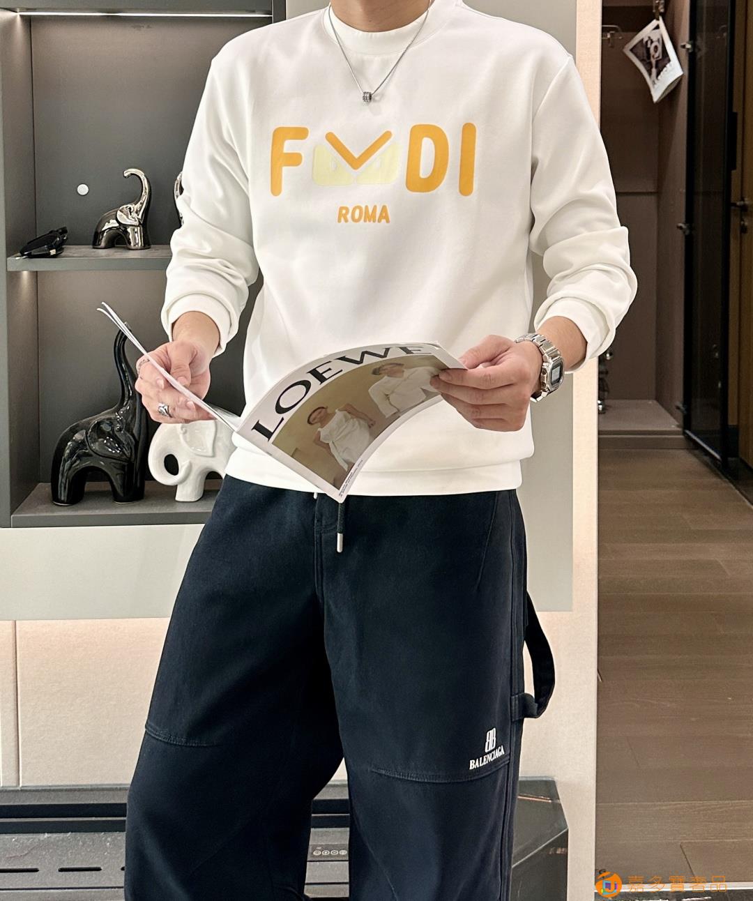 芬迪 圆领套头卫衣;经典套头男女同款,简约大气系列单品,低调