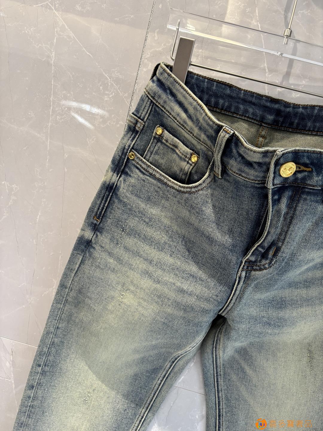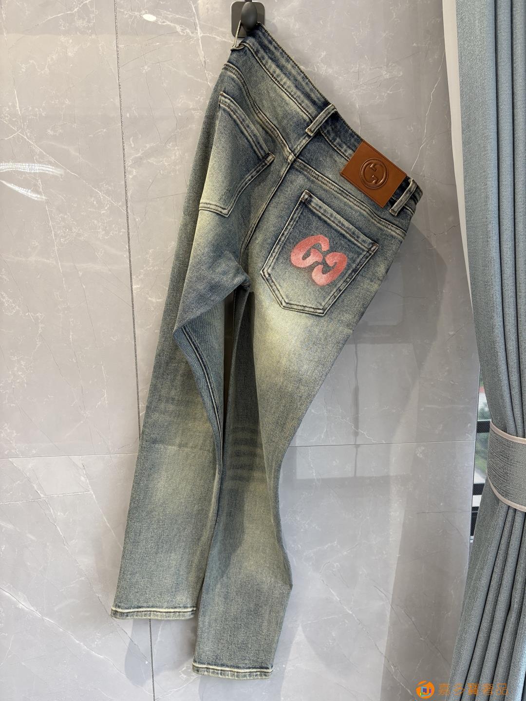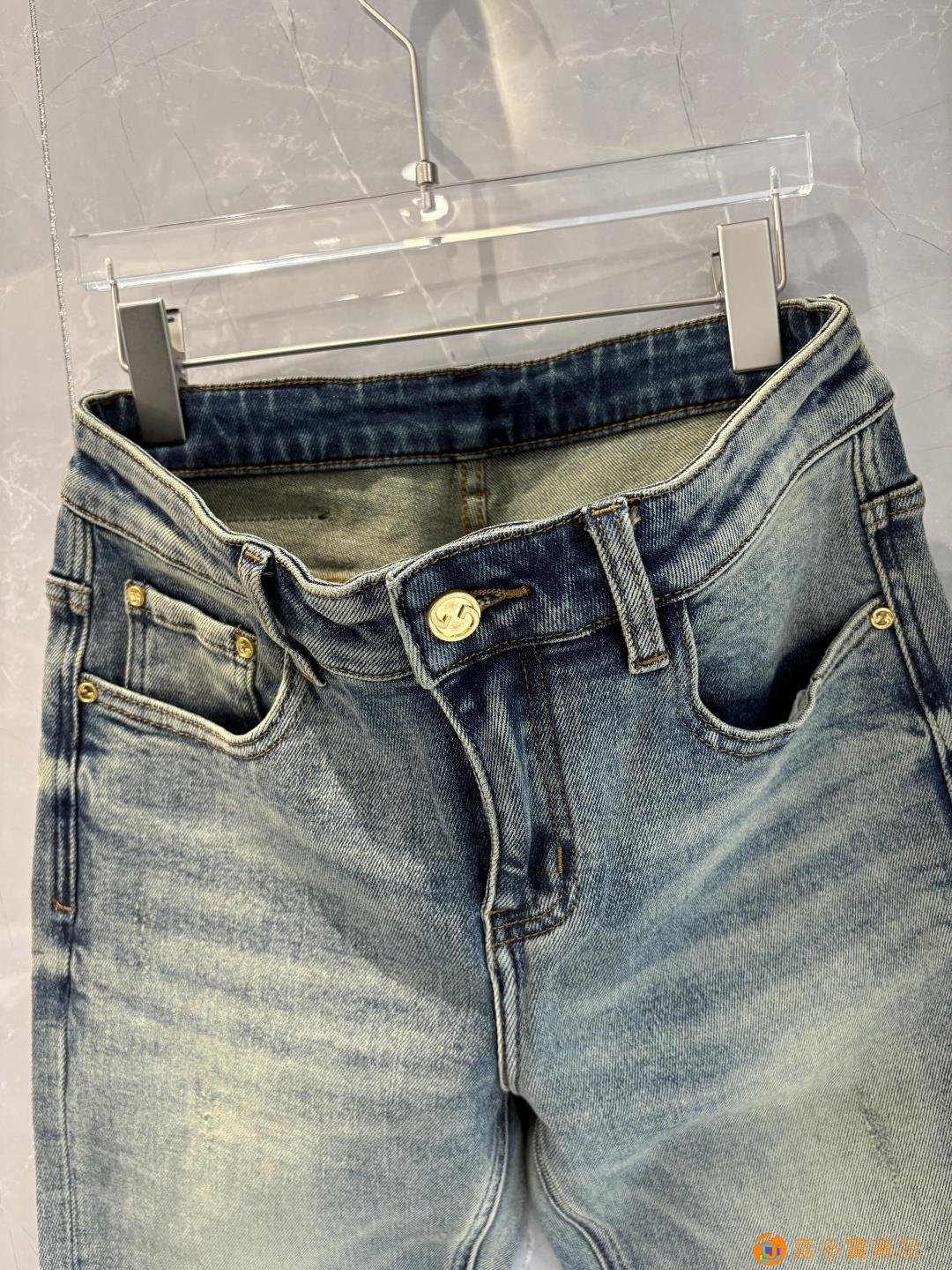 古奇?秋冬设计推荐 热卖牛仔裤?柔软亲肤面料 奢华头层牛皮腰