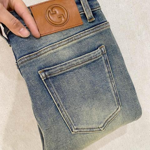 古奇?秋冬设计推荐 热卖牛仔裤?柔软亲肤面料 奢华头层牛皮腰