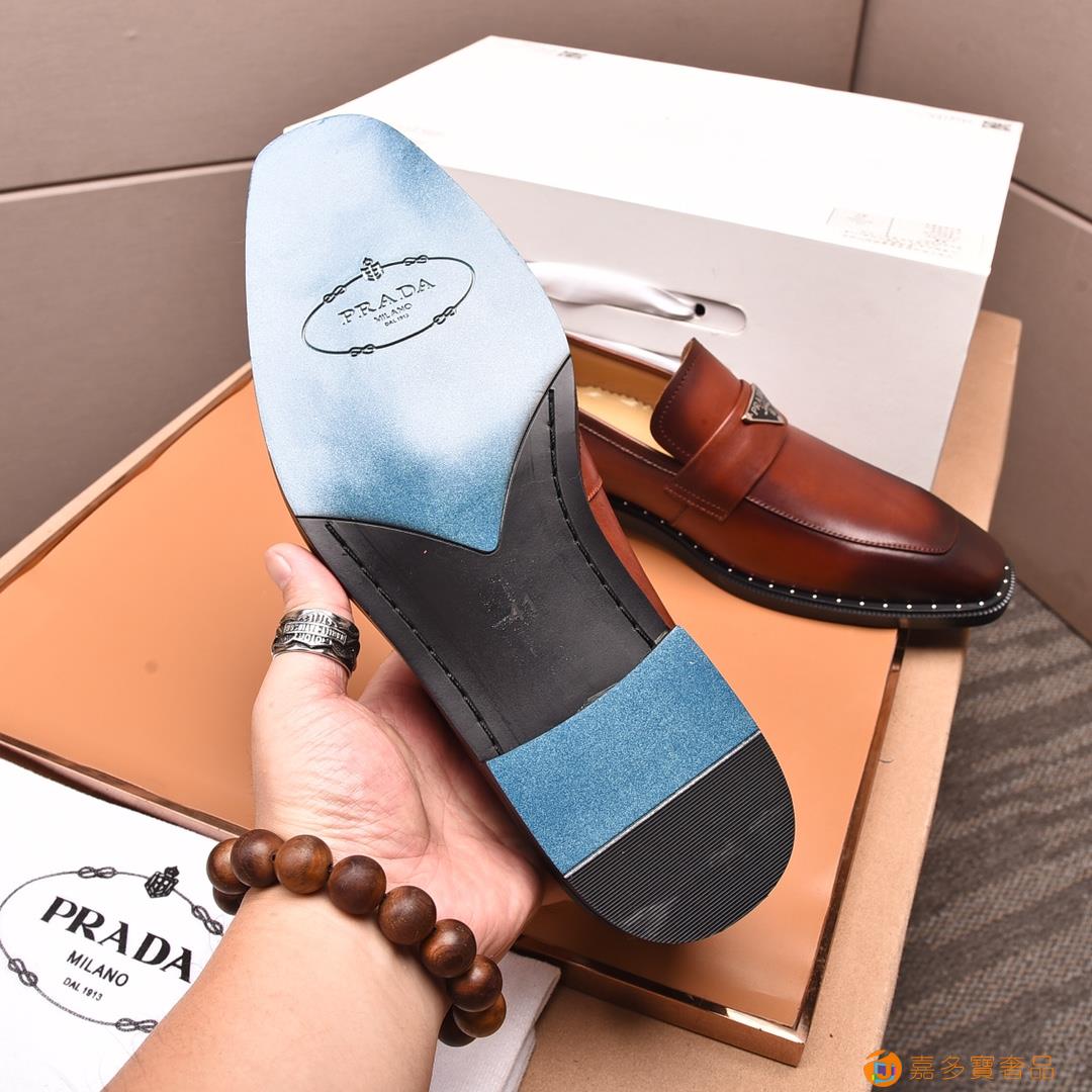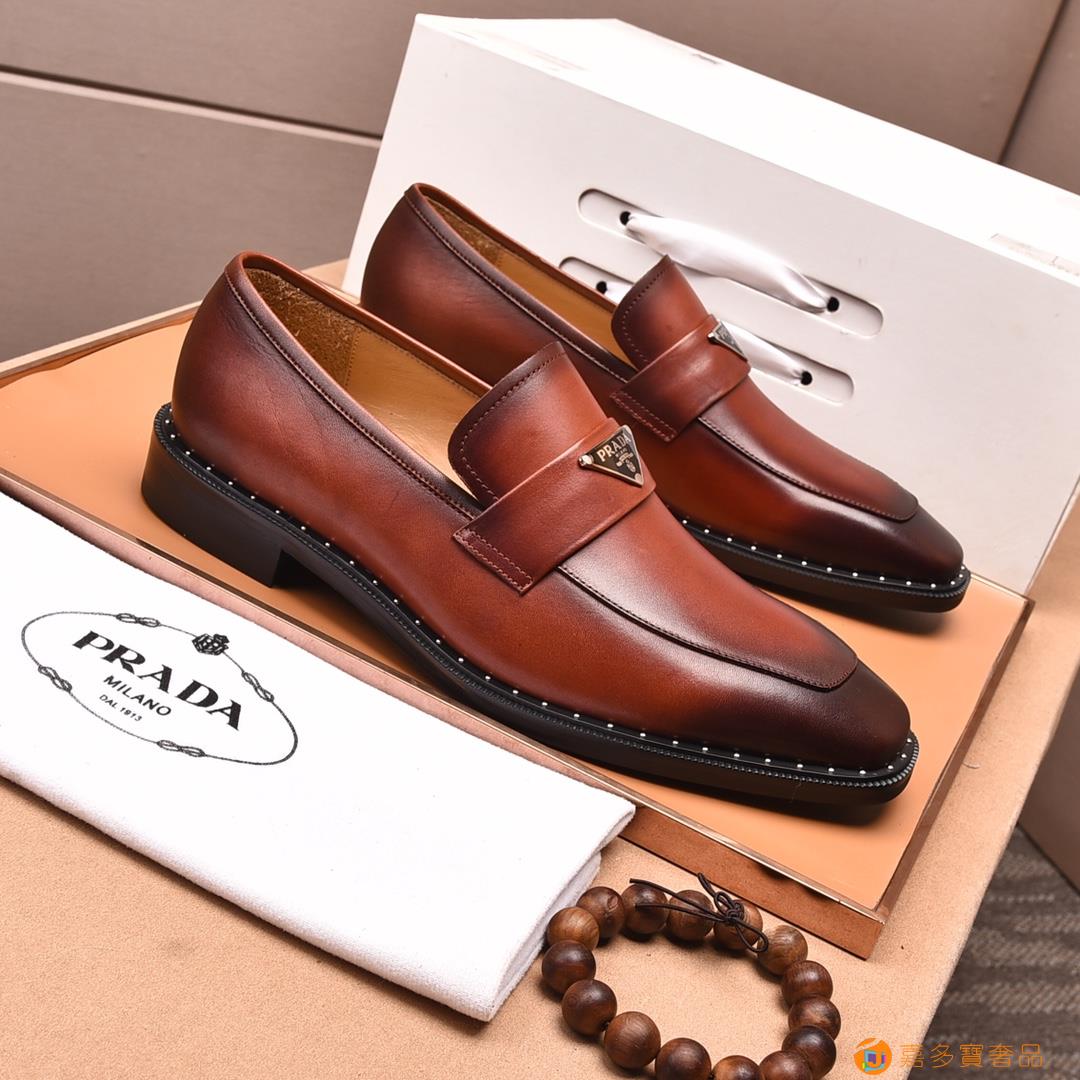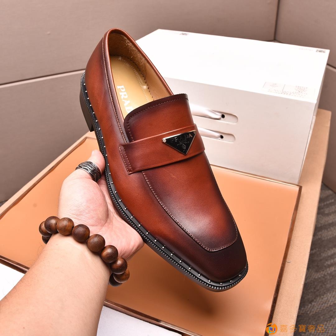 (水染牛里)??普拉达高端 年专柜最新款 正装商务皮鞋?原版
