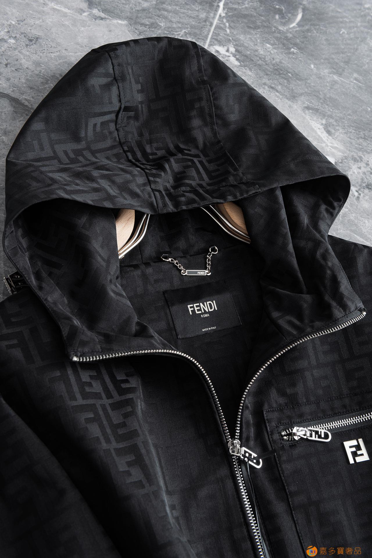New# FENDI芬迪 ss最新春季新品,连帽防水夹克外套#同步官网发售!Fendi品牌的灵魂提花FF形式铺陈于夹克之上,极具冲击力的视觉盛宴,线条流畅而富有韵律,奢华与个性的完美融合。夹克外层超柔聚酯纤维防风防水,功能与时尚型兼具。时尚美观,防风效果更好,活动更加舒适自如。 千挑万选之后的优质选材,%聚酯纤维成分的织物布面光洁细腻而且防水,呈现出细密的肌理和微光感,非常柔软适顺滑有垂感,面料牢固结实,抗皱性强,挑选的新型面料环保可持续性使用。均为高密度织物制造而成,手感细腻柔软,穿着上身挺阔有型,质感无敌,亲肤性绝佳,肌理纹路透着高级和华丽感!有型又时尚,版型宽阔款式,对于不同身形的人来说都是可以轻松驾驭的,不挑人穿,简直就是每位男士的梦中情衣! 利落干练的剪裁搭配柔软细腻的面料,刚柔并济迸发出自然的高级感,在潇洒之下依然保留性感风格!简单干练的设计,富有气质又不失儒雅,加上利落的剪裁手法,使得上身后的版型合体服帖,轮廓挺拔硬朗。而我们的口袋是经过设计的经得住推敲的艺术品,绗线的角度,走线的弧度都是经过专业的设计,每一笔每一画都有他的意义。 设计师与工艺师巧夺天工的颜色默契搭配,在时尚潇洒帅气之下又尽享舒适!穿着上身,即刻拥有高雅和经典品位的人士!面料色泽饱满,牢靠耐水洗。上身即锁温轻松洒脱时刻保暖。绝对是品位人士的不二之选。 【尺码】:M-XXXL
