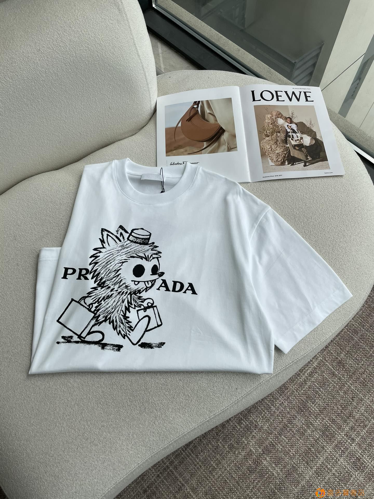 开春新品 普拉达、最新款短袖T恤,帅气时尚,胸前顶级印胶字
