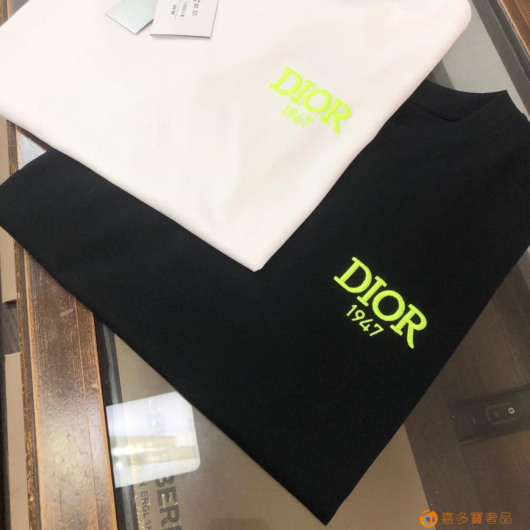 C✨ Dior 迪奥 ss专柜同款圆领荧光绿刺绣字母短袖T恤