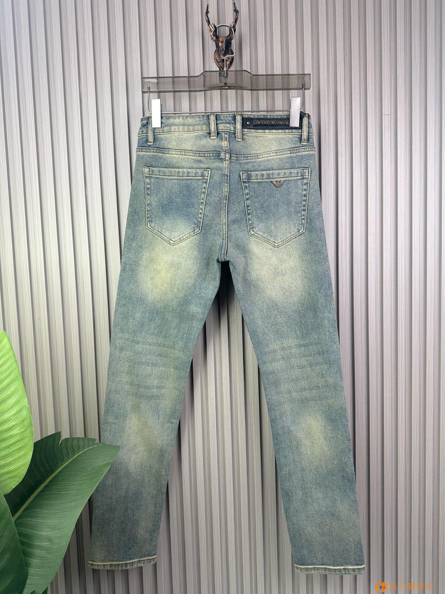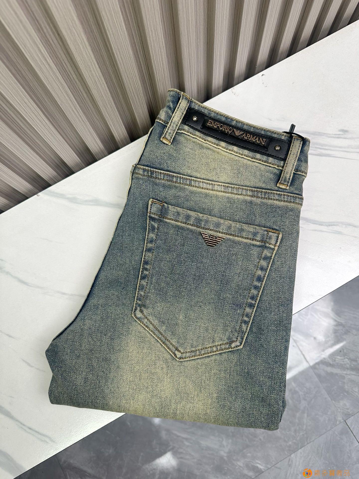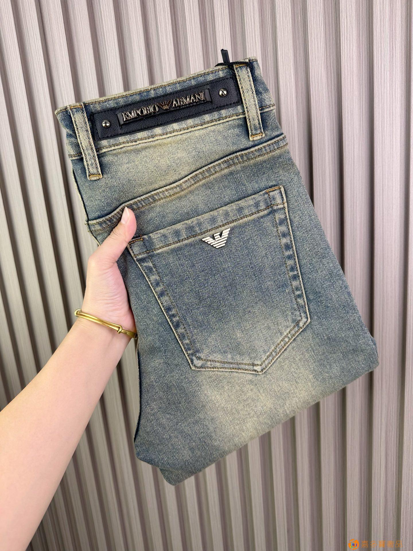 经典大牌阿玛尼精品牛仔裤?,修身小脚 弹力显瘦长裤,重工洗水
