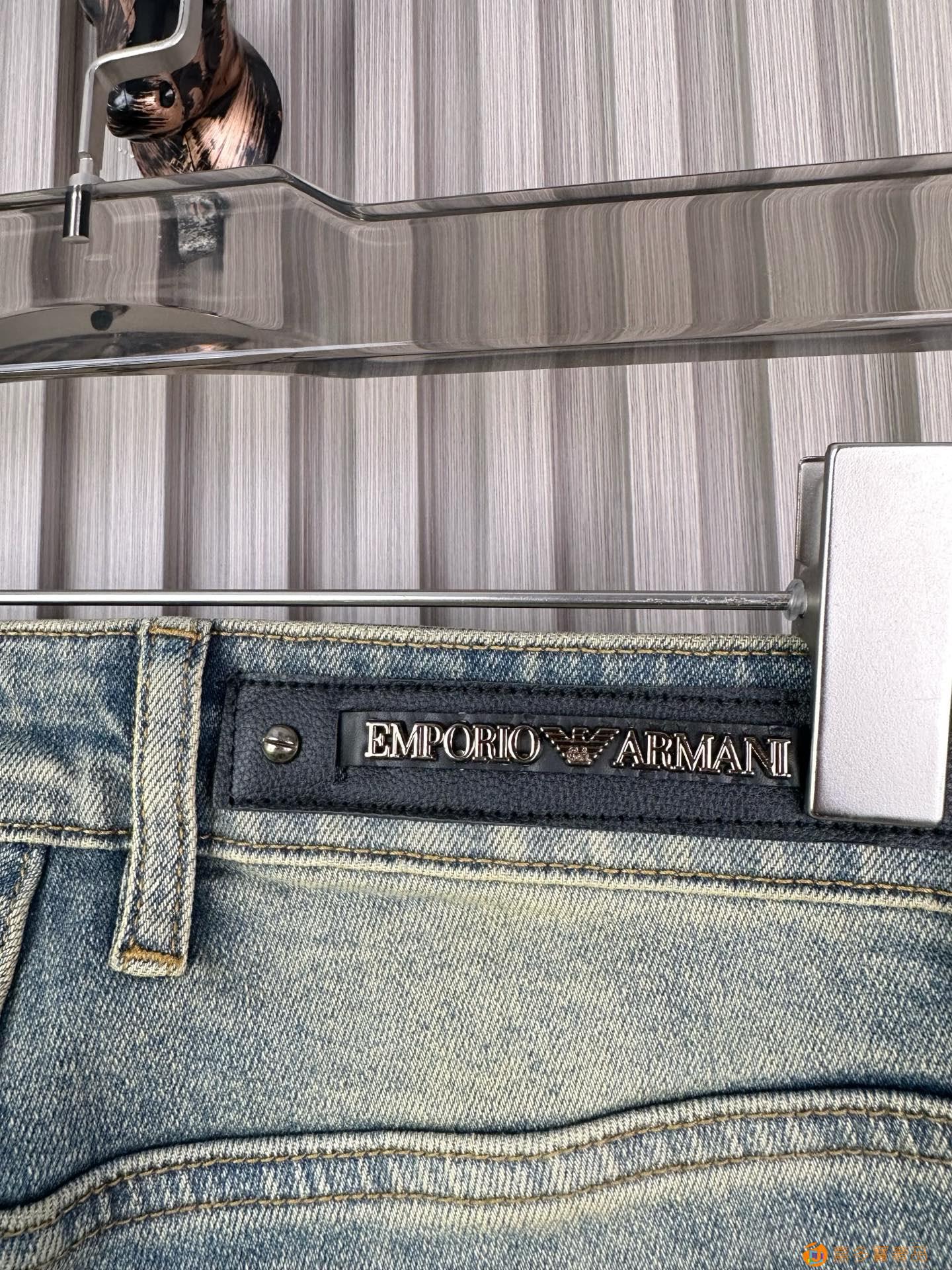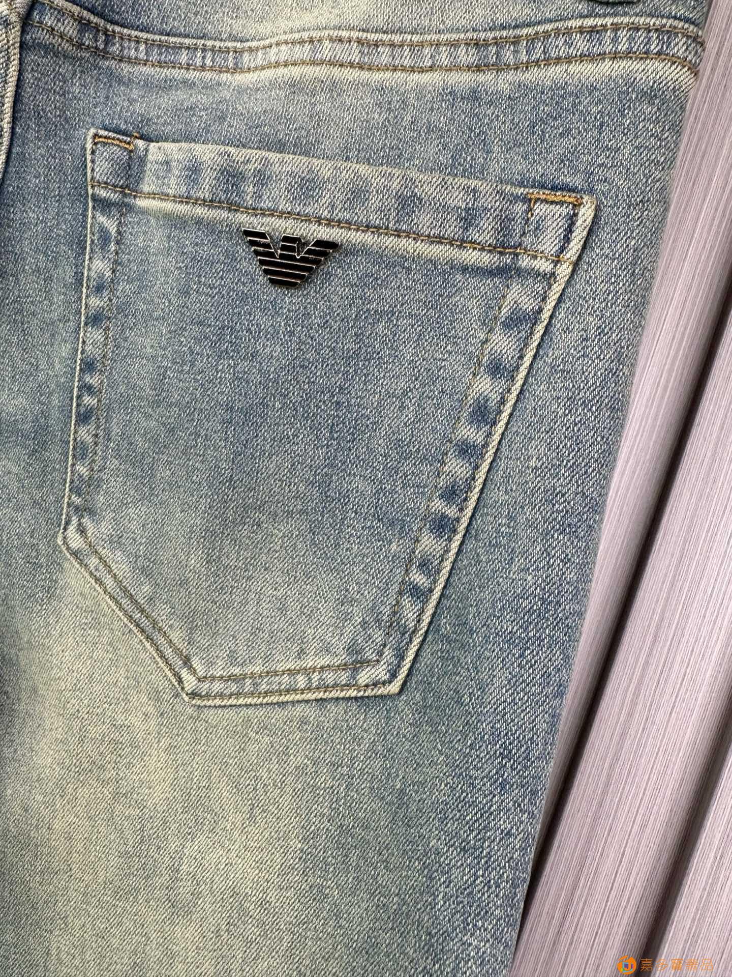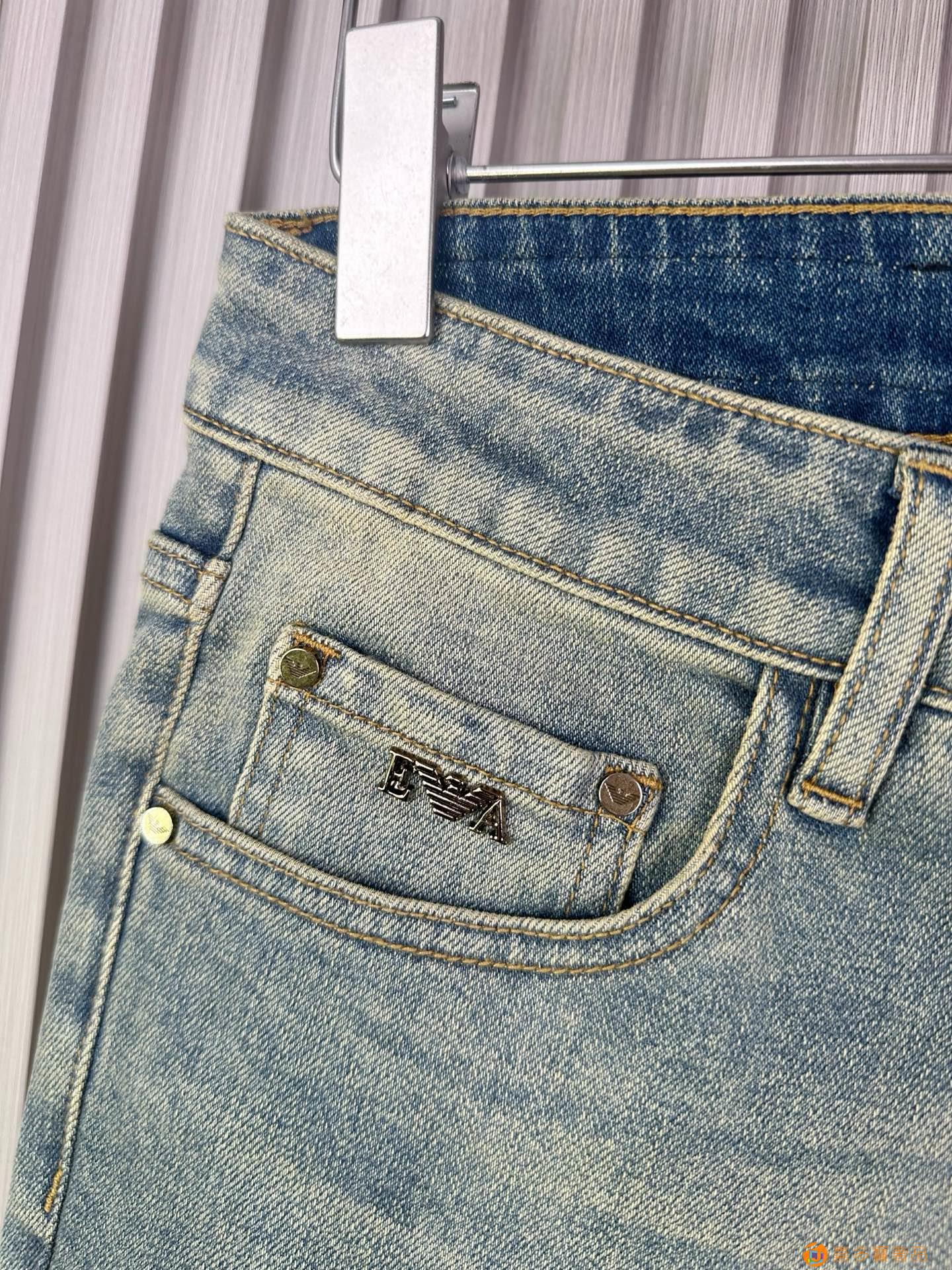经典大牌阿玛尼精品牛仔裤?,修身小脚 弹力显瘦长裤,重工洗水
