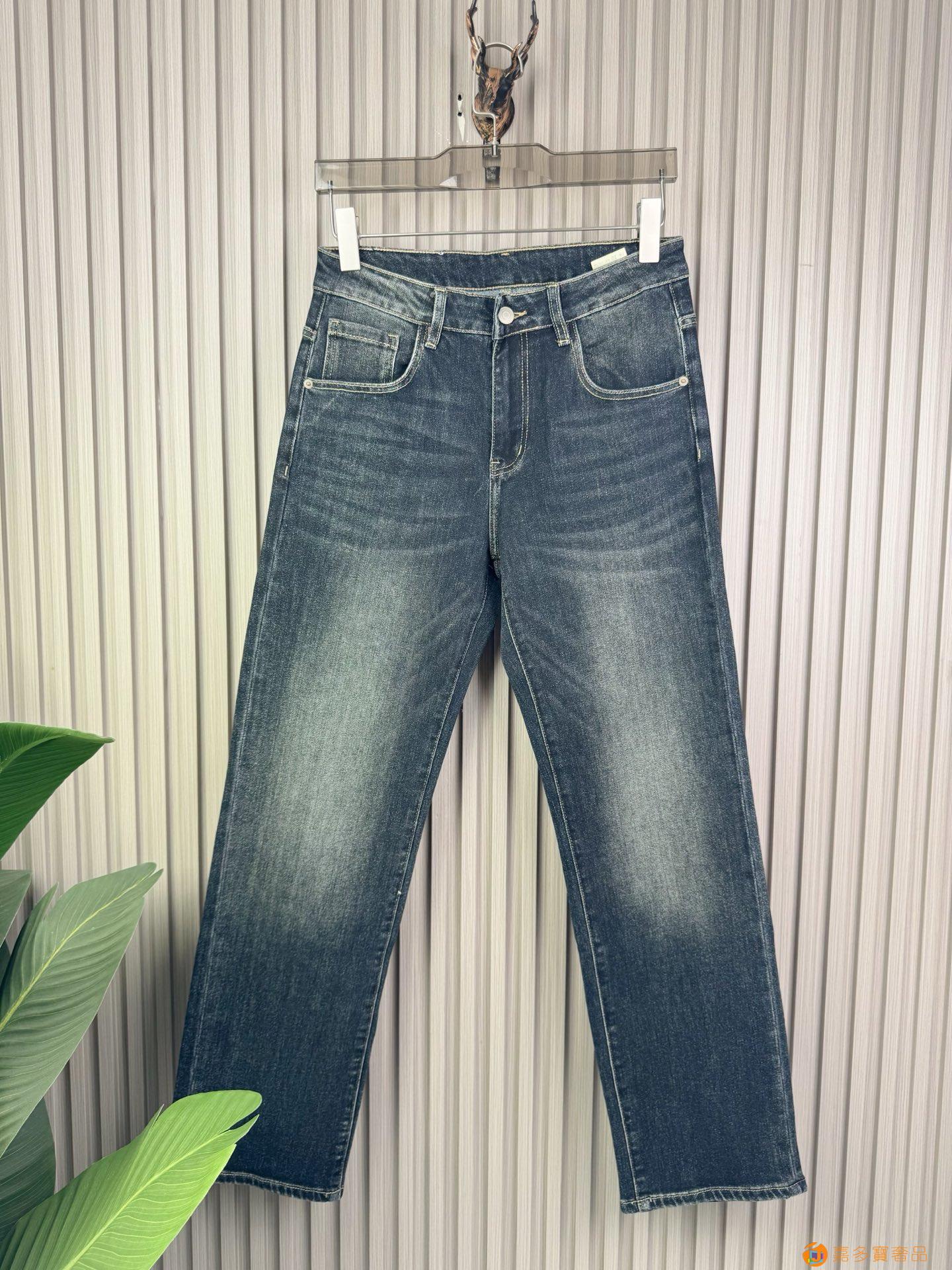 经典大牌阿玛尼精品牛仔裤?,修身小脚 弹力显瘦长裤,重工洗水