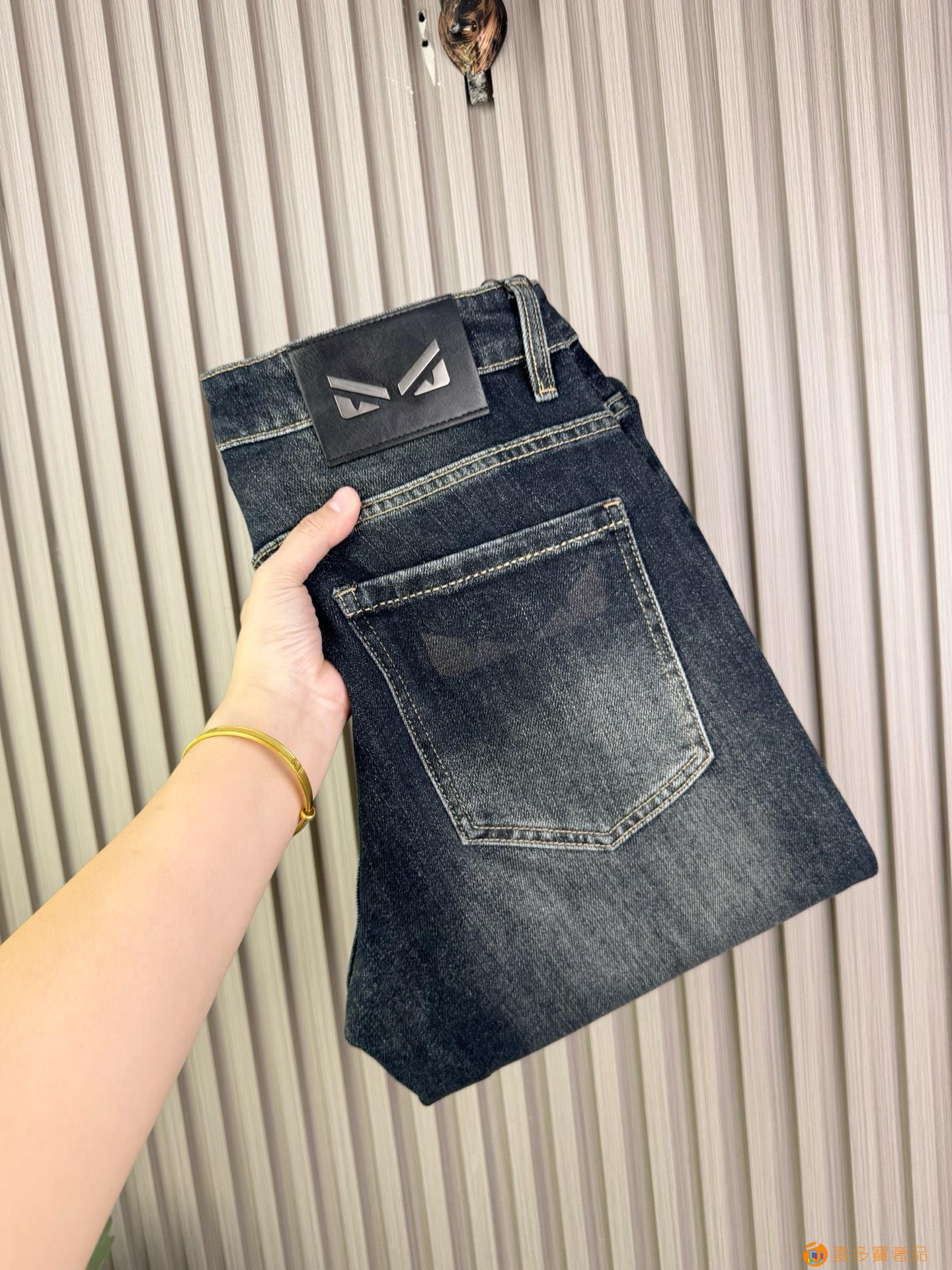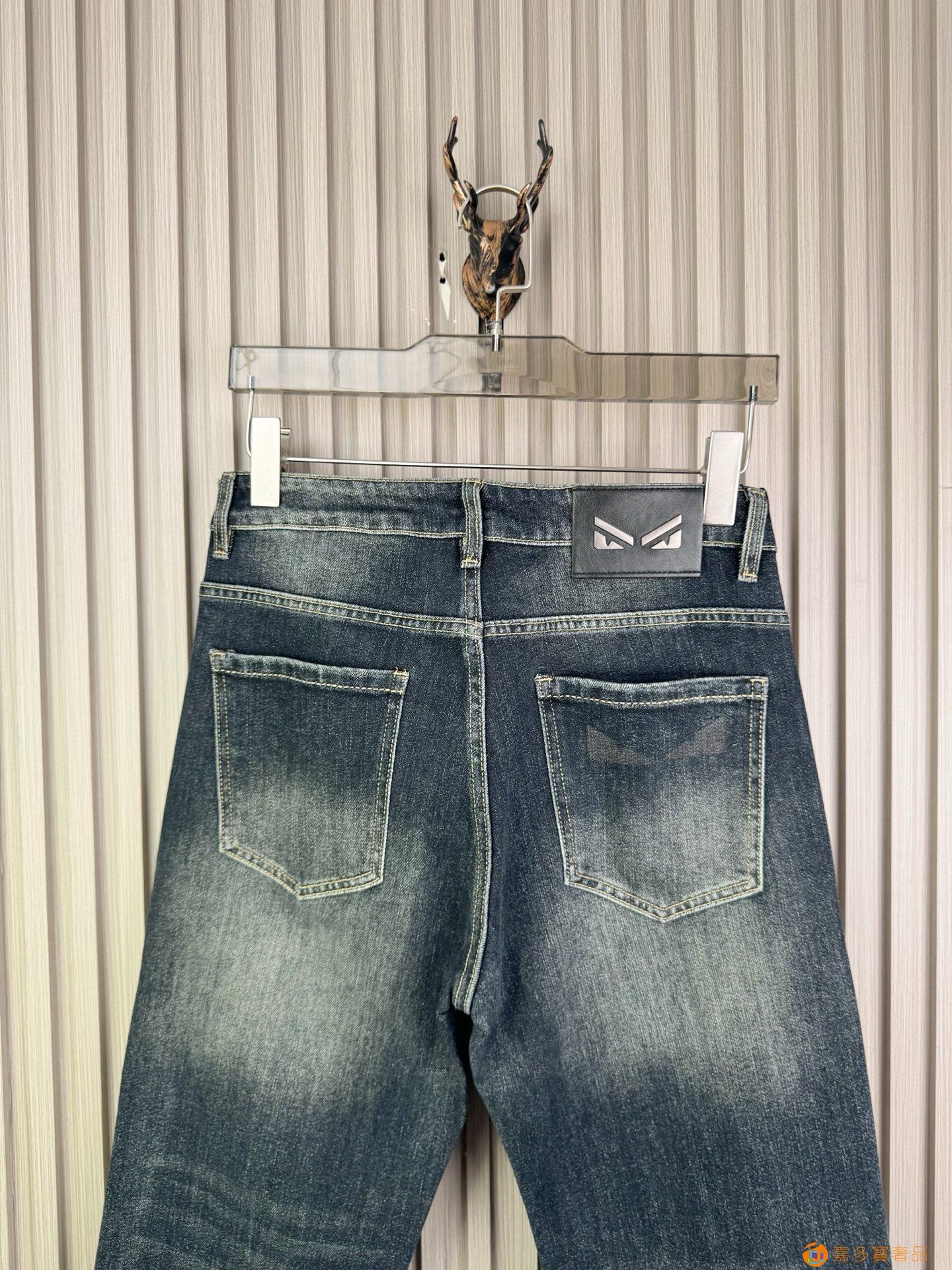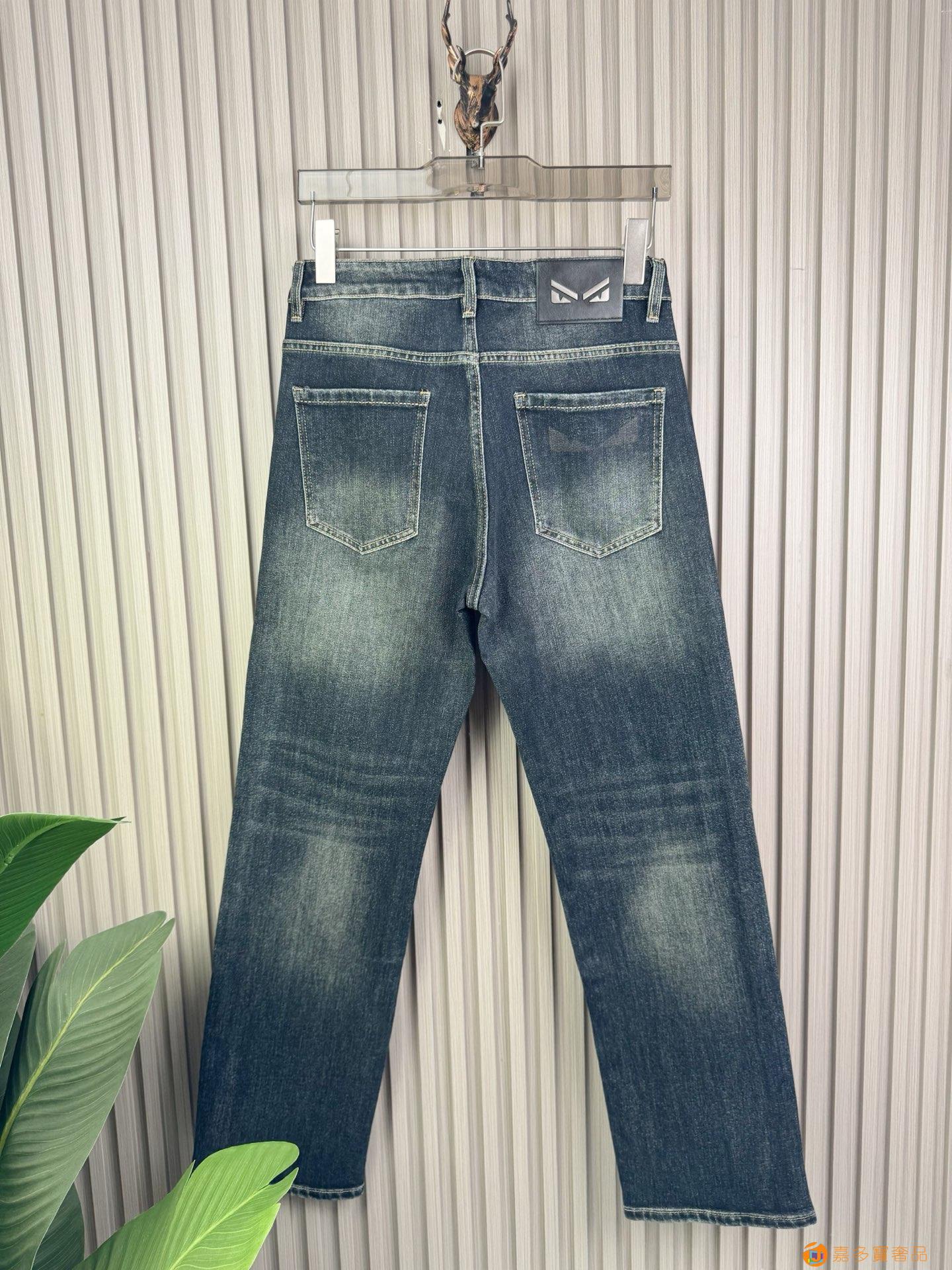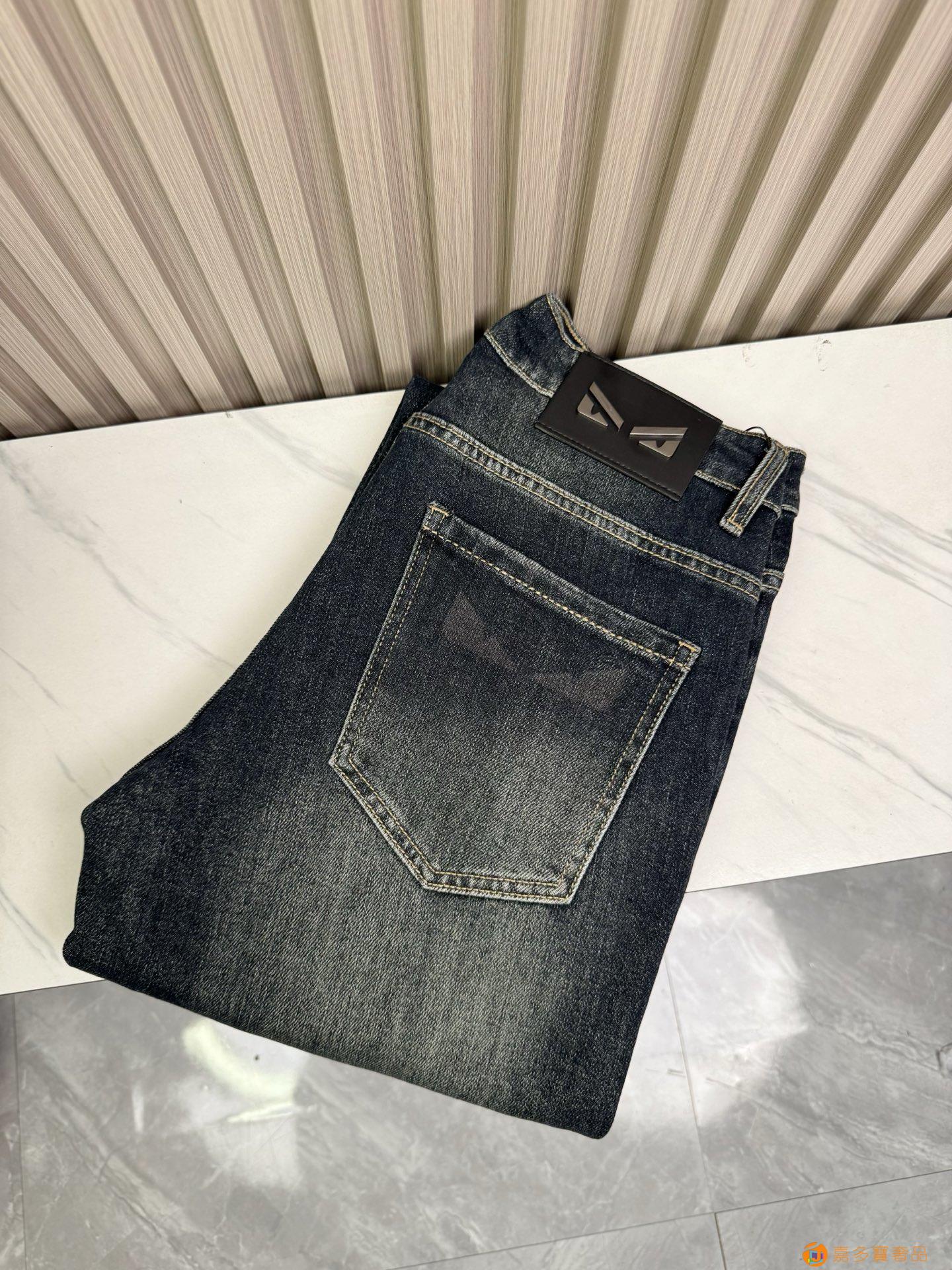 芬迪男士宽松阔腿直筒牛仔裤?新品!非常保暖?定制面料和一般牛