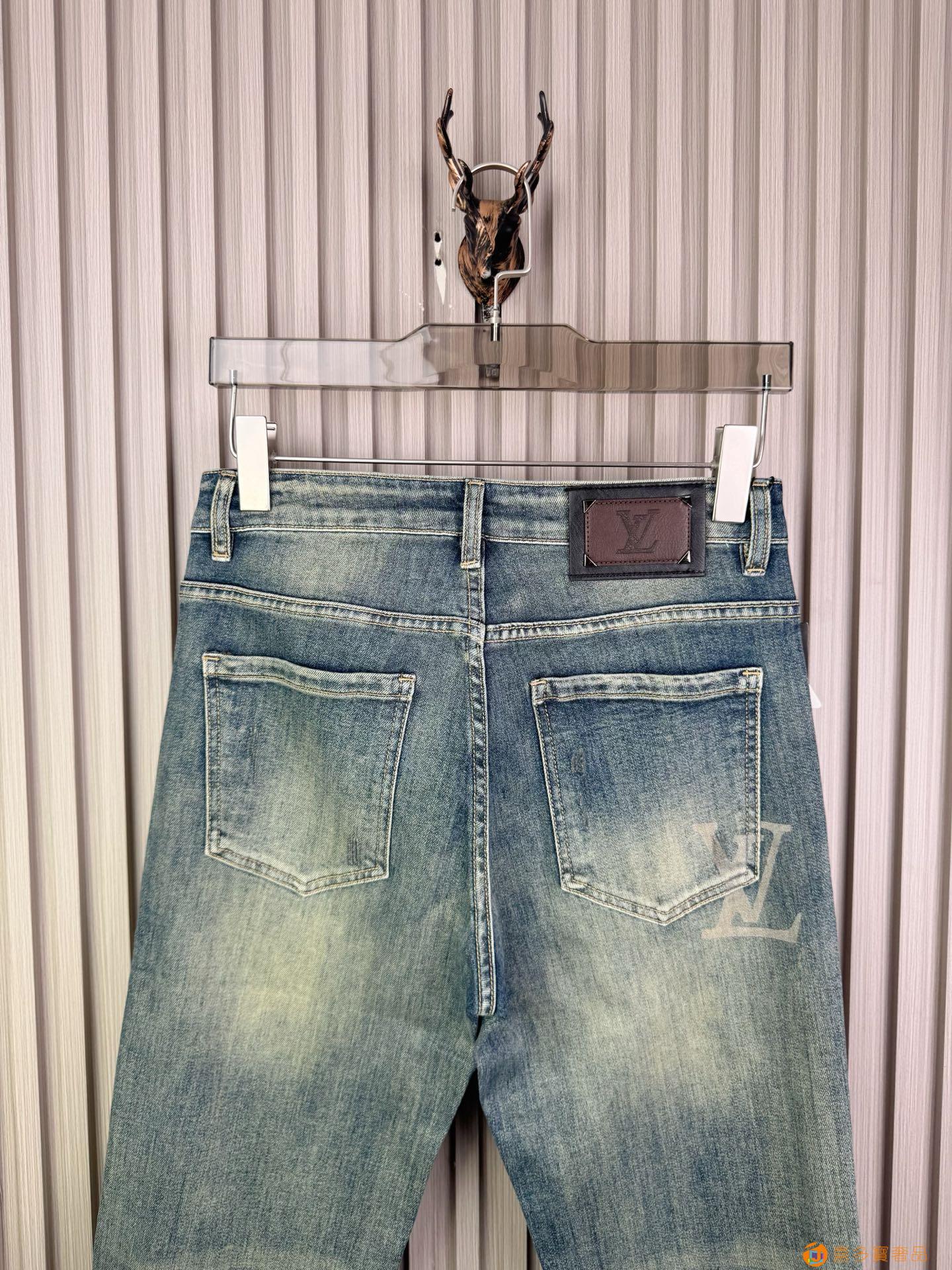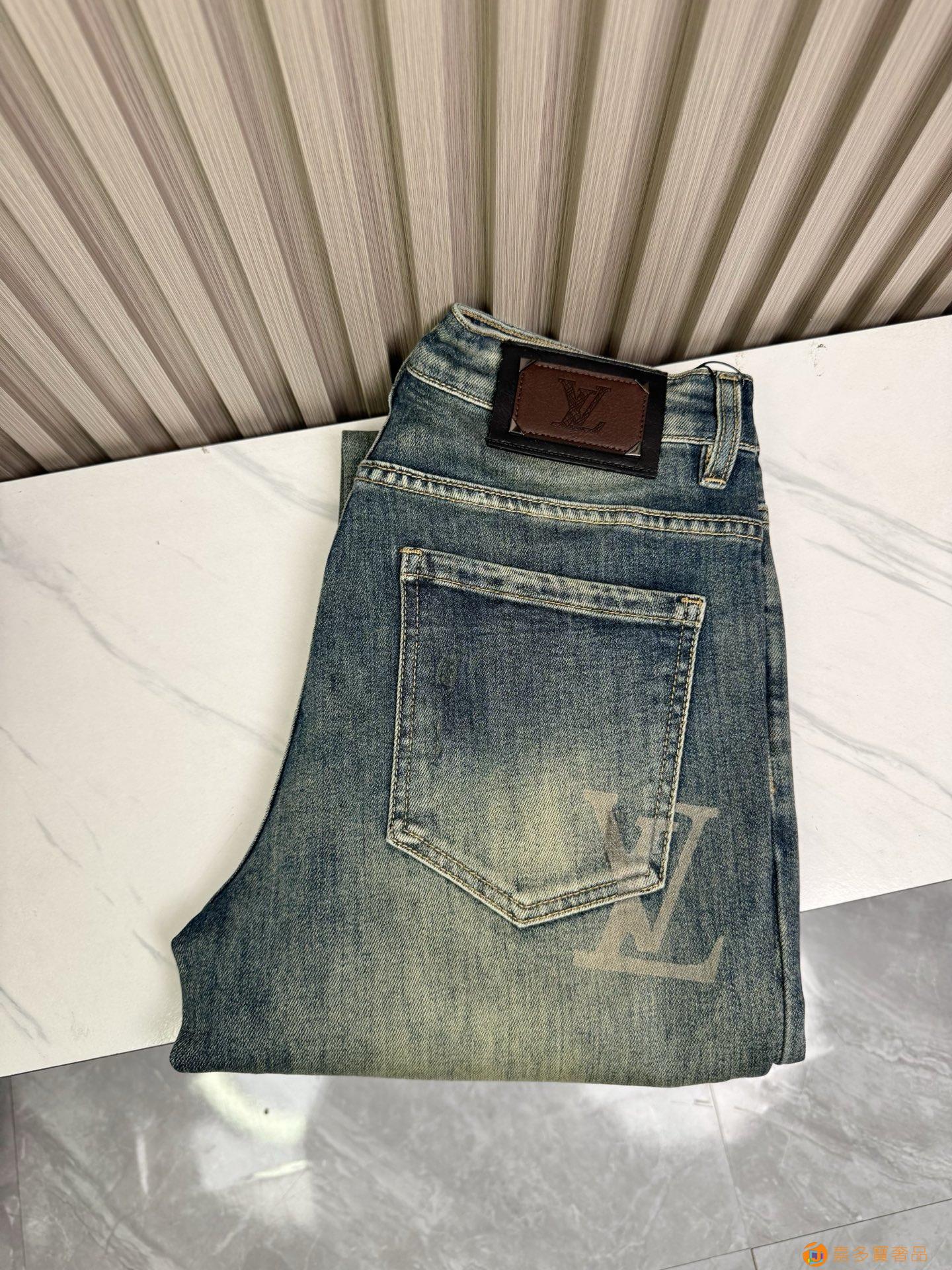 LV男士宽松溃退直筒牛仔裤?新品!非常保暖?定制面料和一般牛