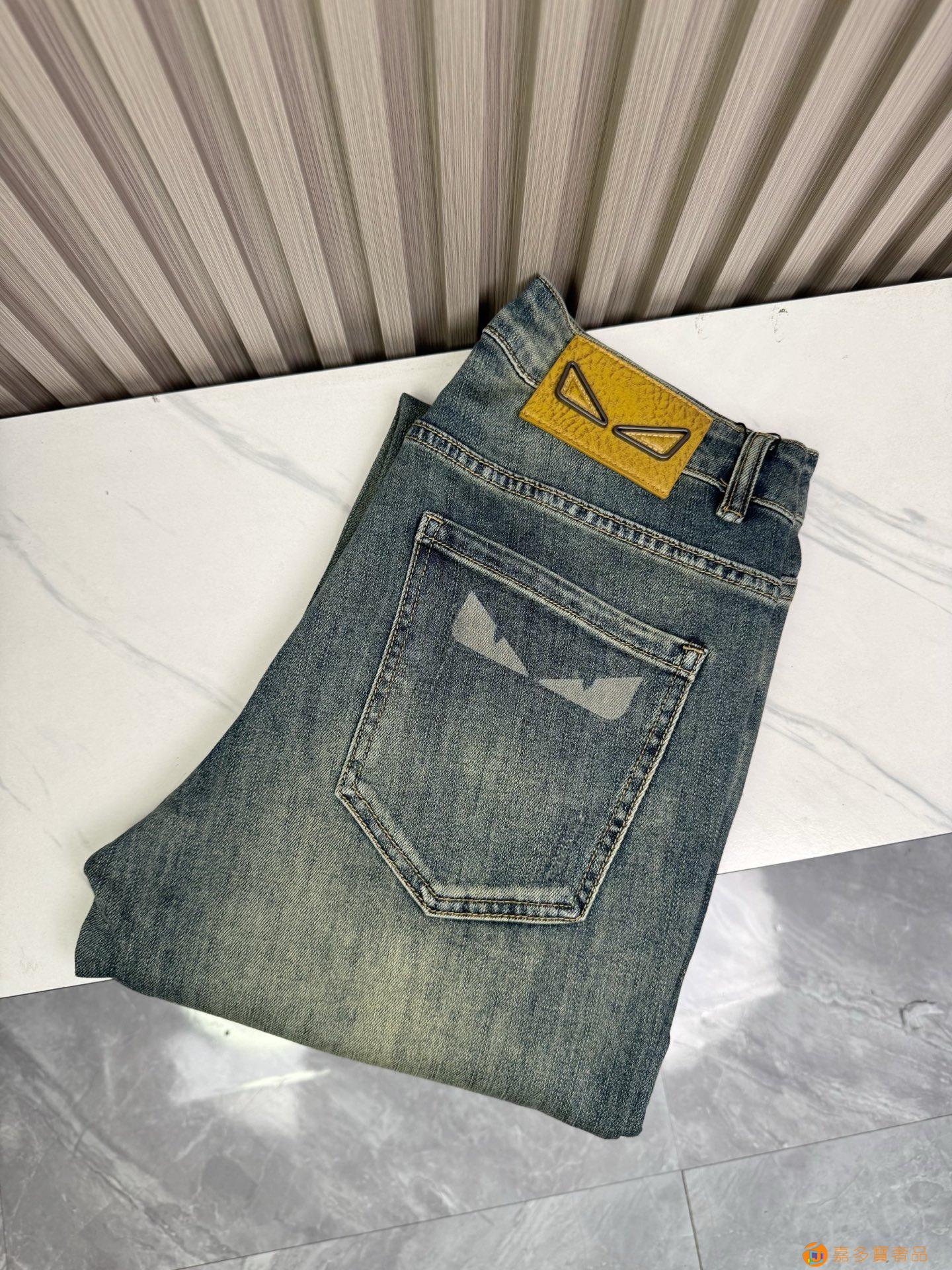 芬迪男士宽松阔腿直筒牛仔裤?新品!非常时尚?定制面料和一般牛