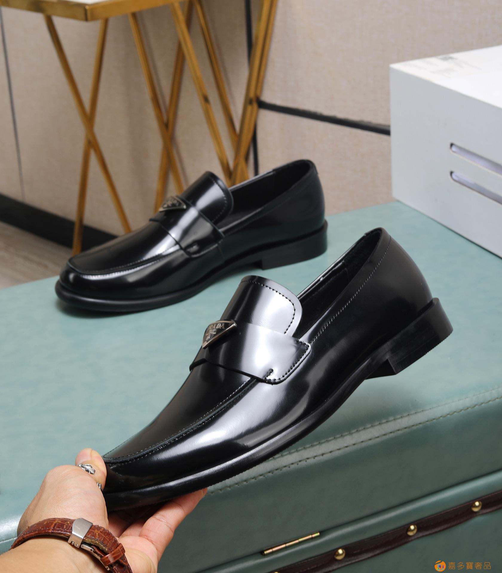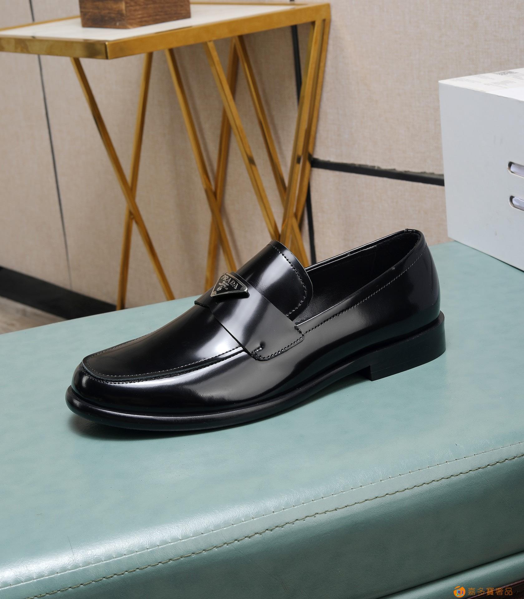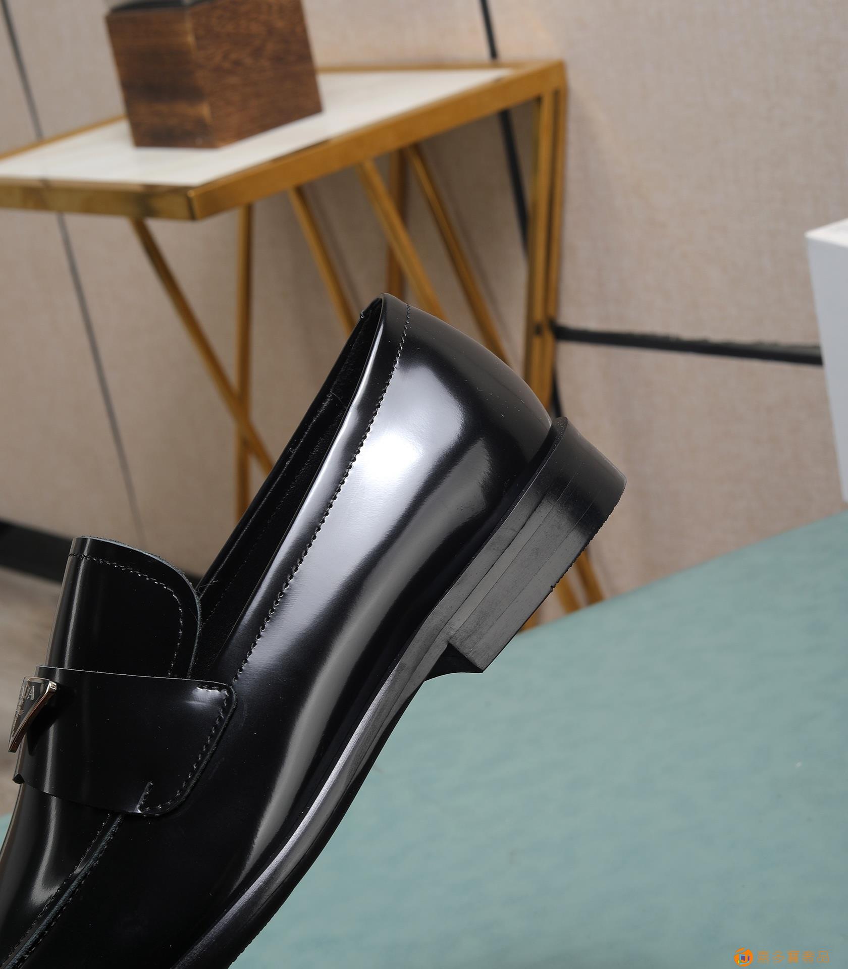 (水染牛里)??普拉达高端 年专柜最新款 正装商务皮鞋?原版