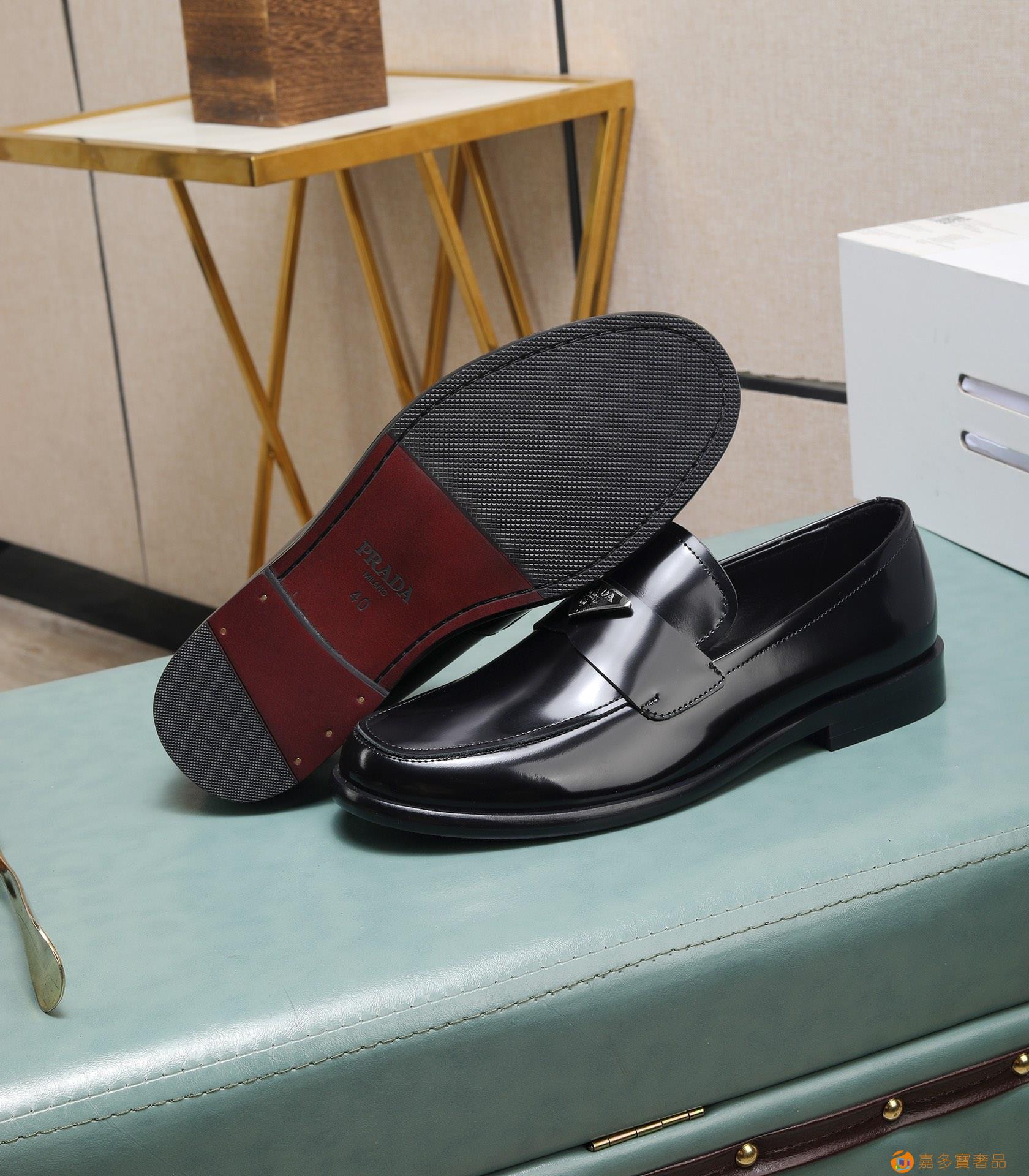 (水染牛里)?? 普拉达高端 年专柜最新款 正装商务皮鞋?原