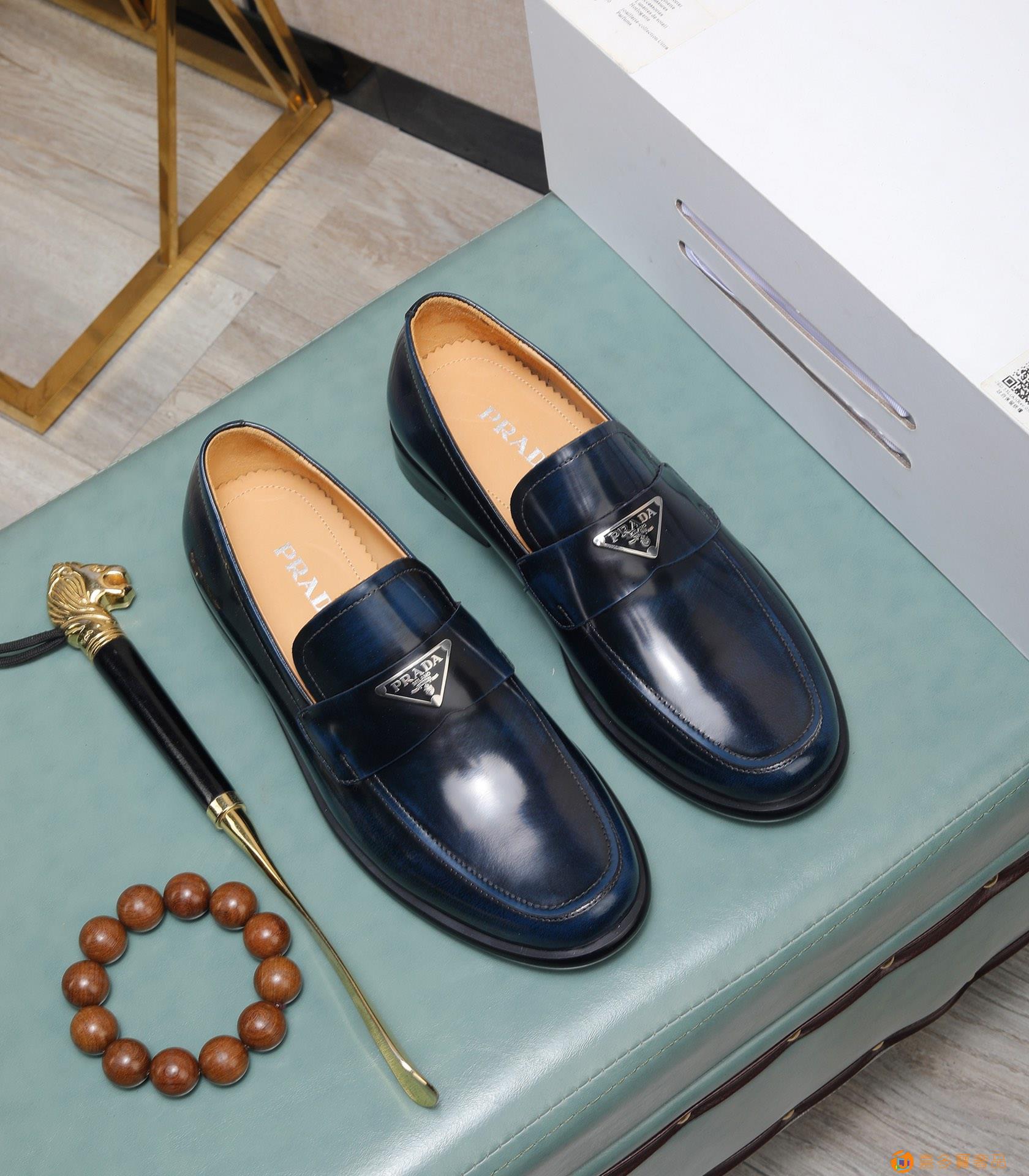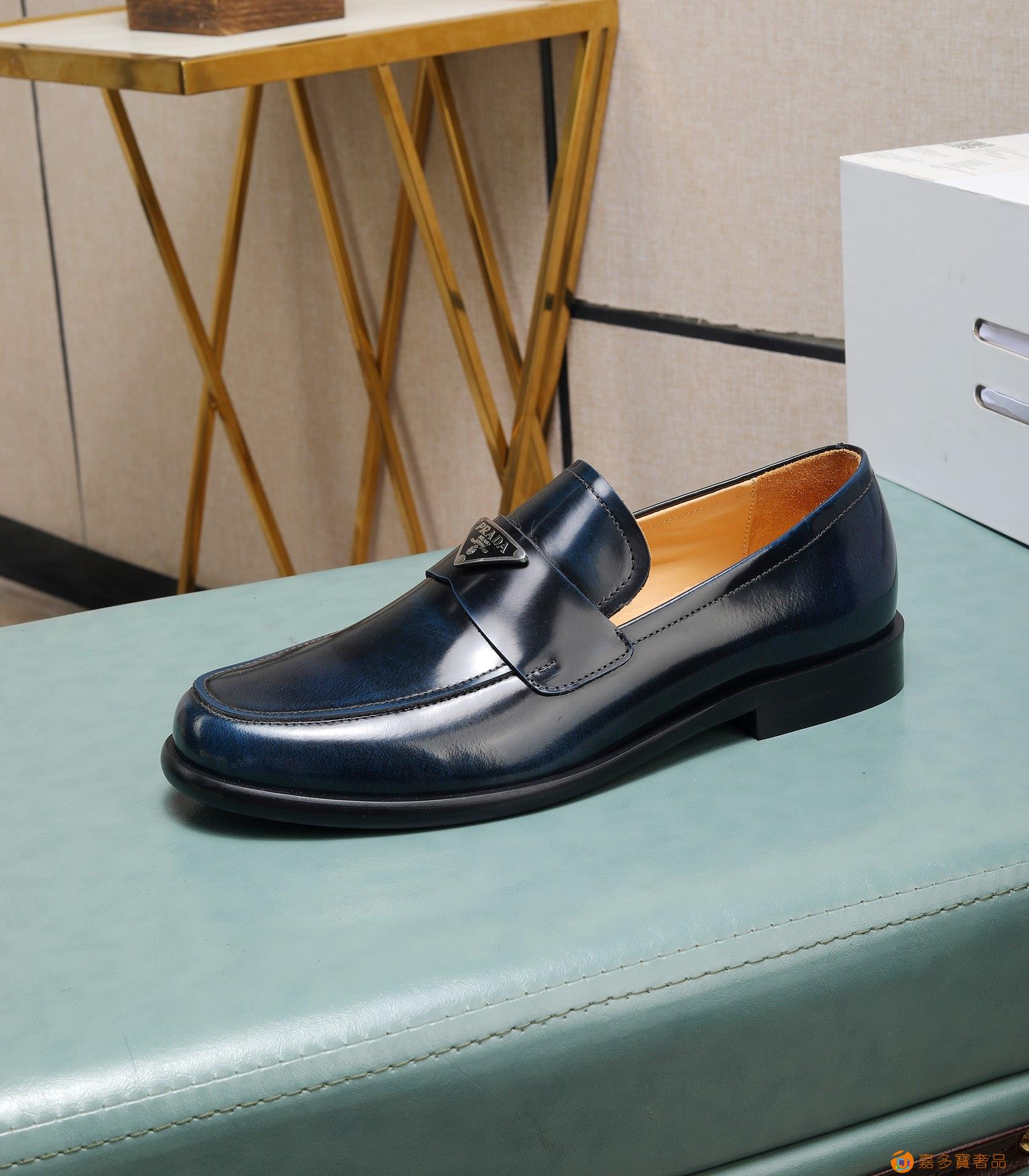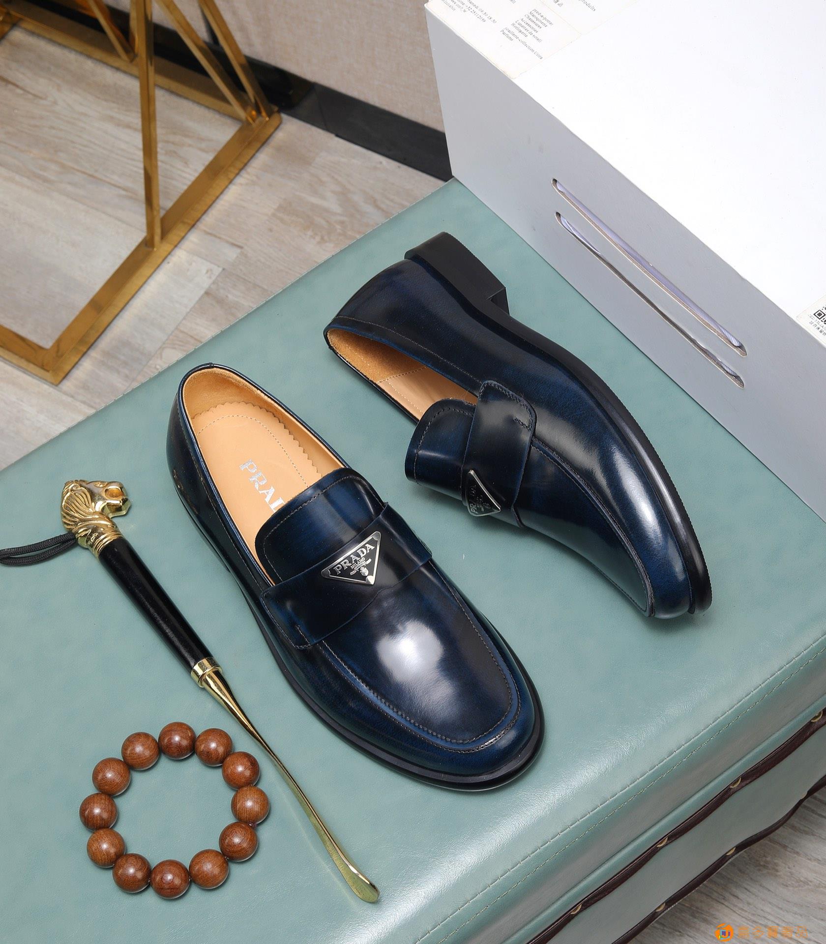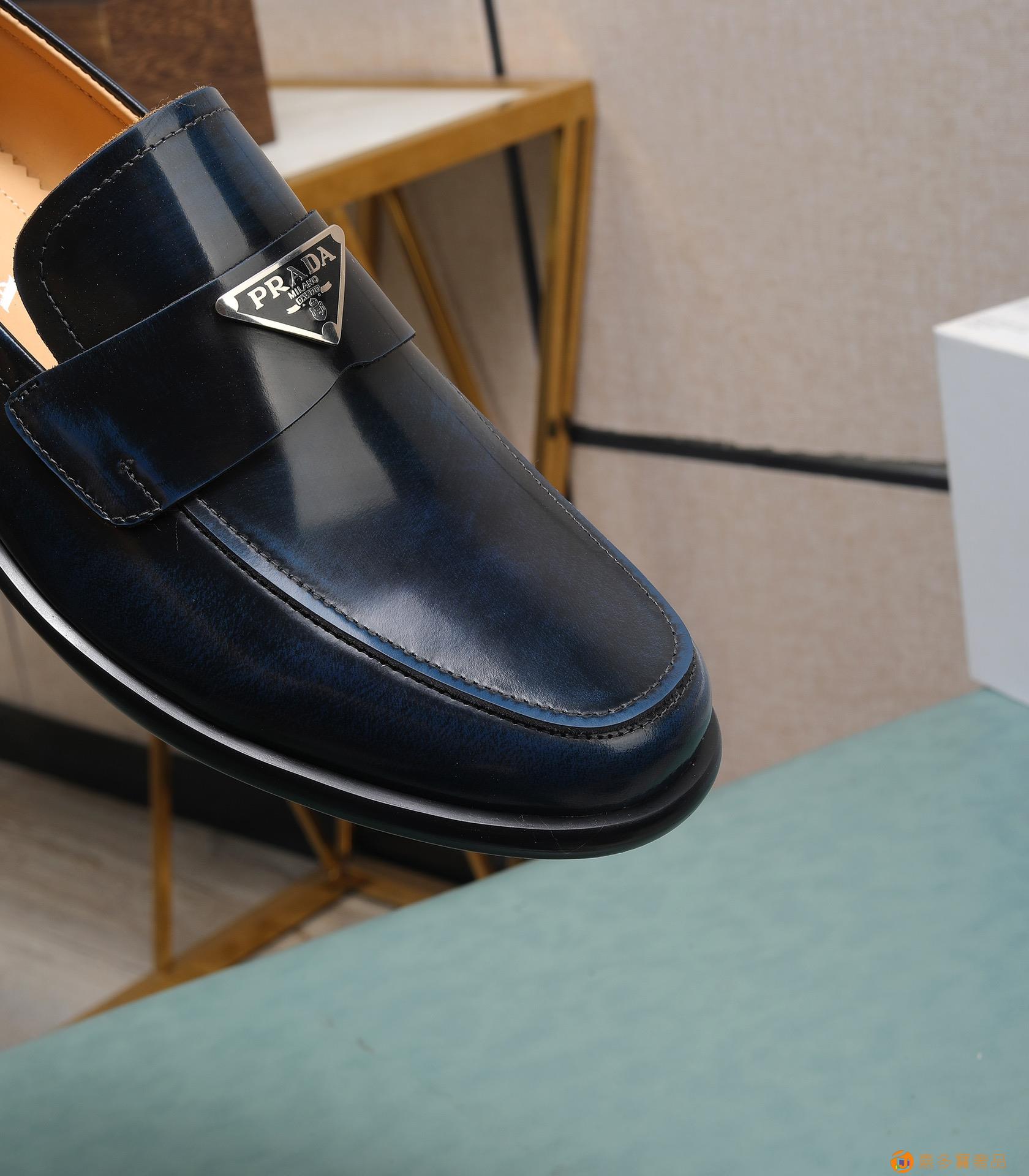 (水染牛里)?? 普拉达高端 年专柜最新款 正装商务皮鞋?原