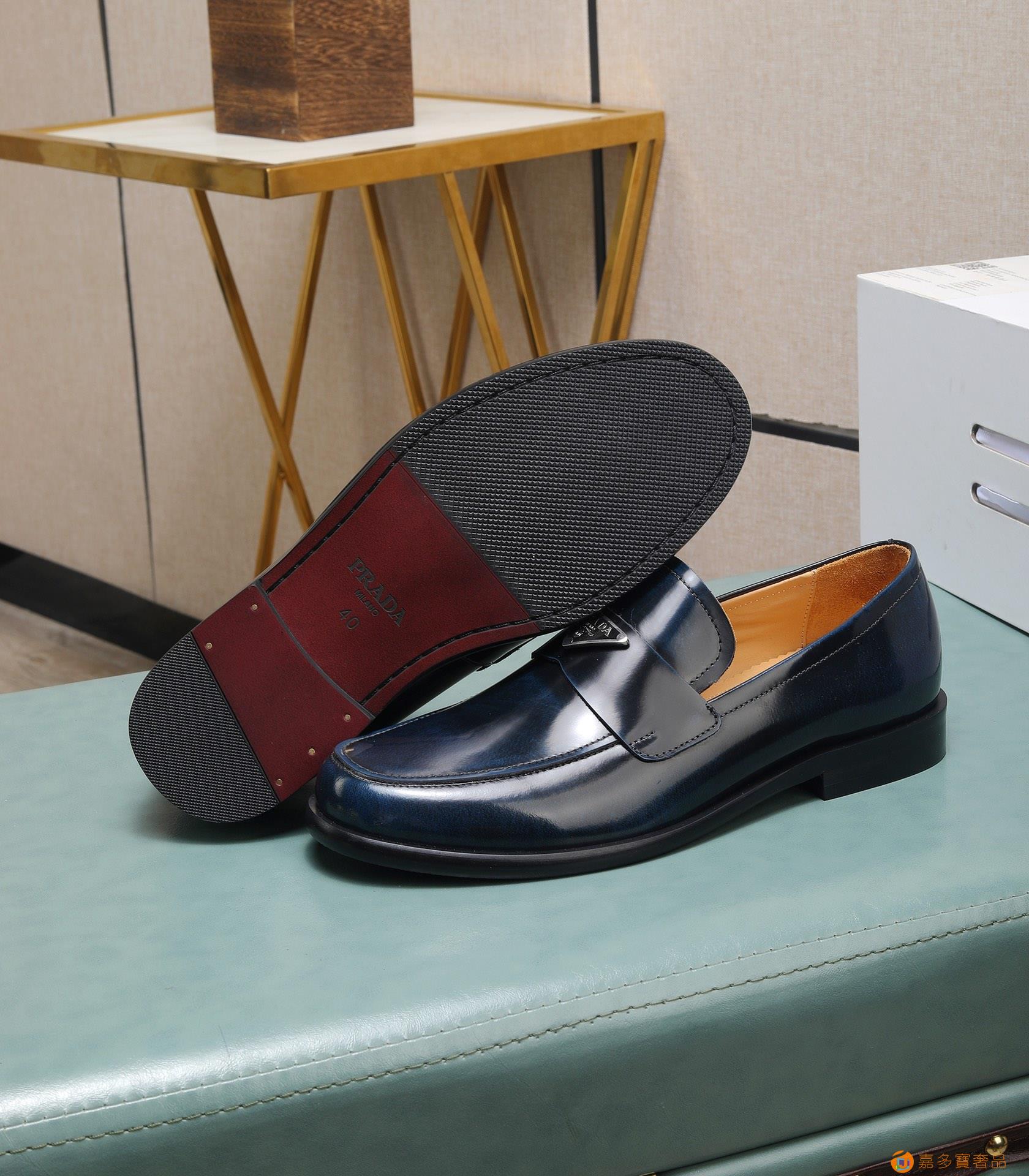 (水染牛里)??普拉达高端 年专柜最新款 正装商务皮鞋?原版
