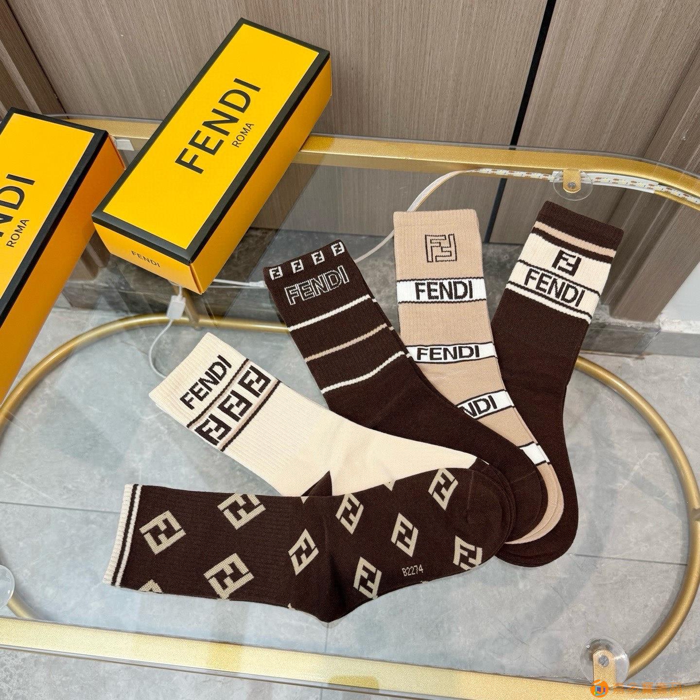 配包装【一盒五双】FENDI · 芬迪❗️大F新品高筒袜子❗️超级经典的双F标志,纯棉材质制造,透气舒适,超级nice❗️超火爆小单品,大牌出街,潮人必备?超好搭❗️