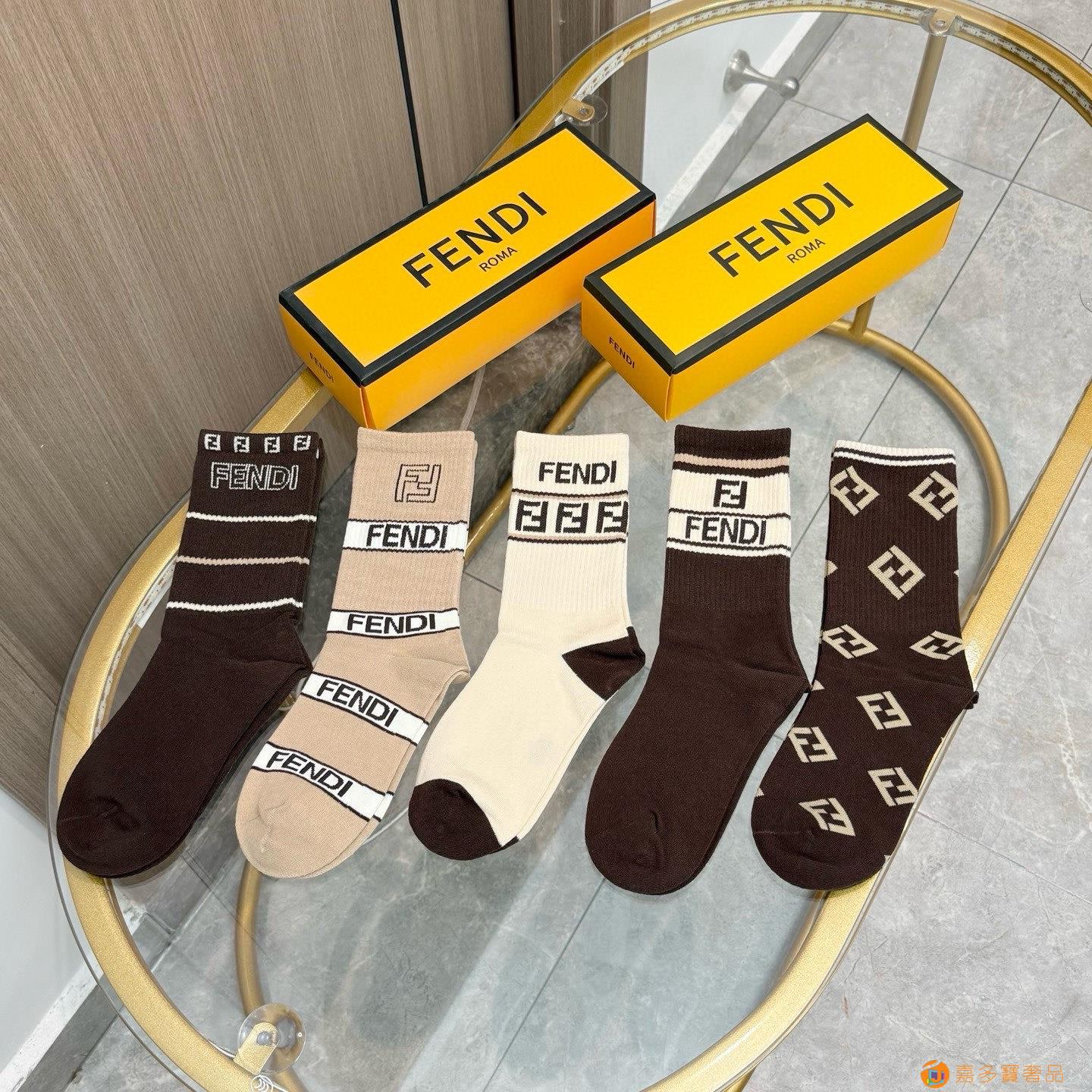 配包装【一盒五双】FENDI · 芬迪❗️大F新品高筒袜子❗
