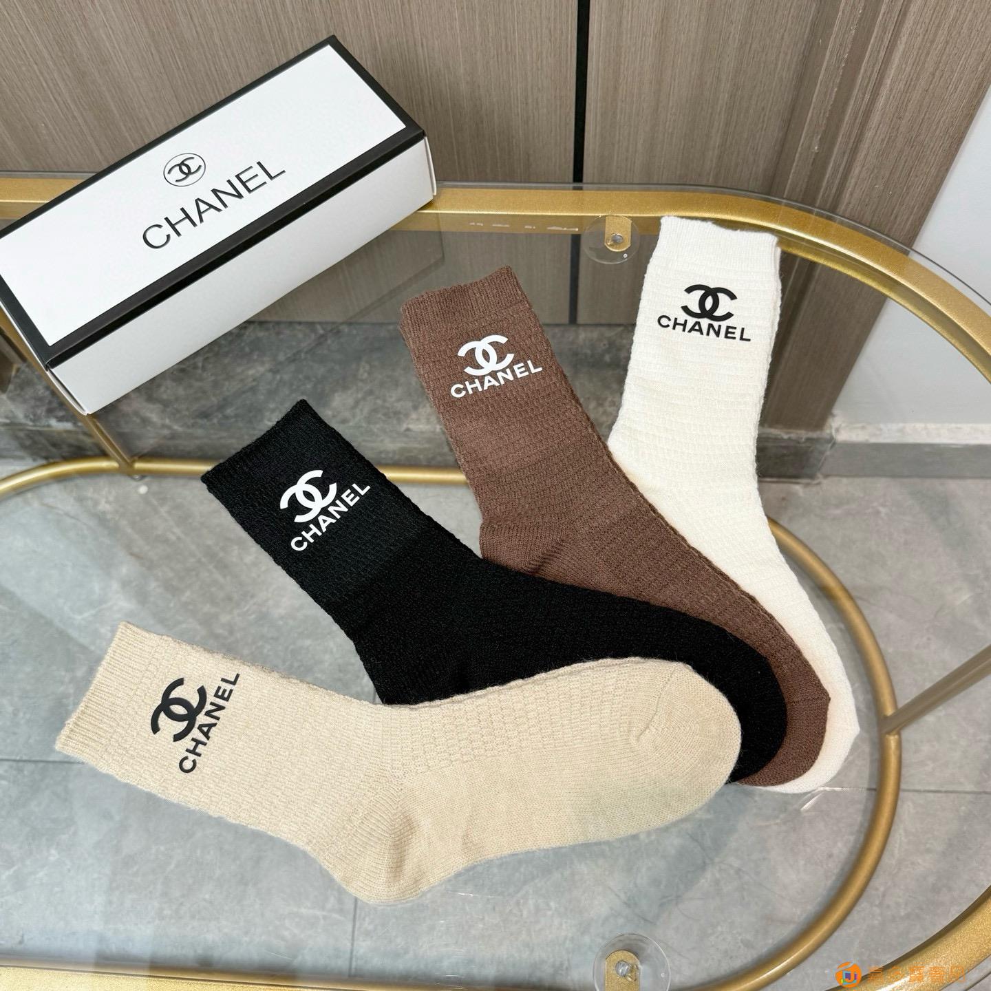 配包装【一盒四双】?CHANEL香奈儿 爆款中筒袜?高版本