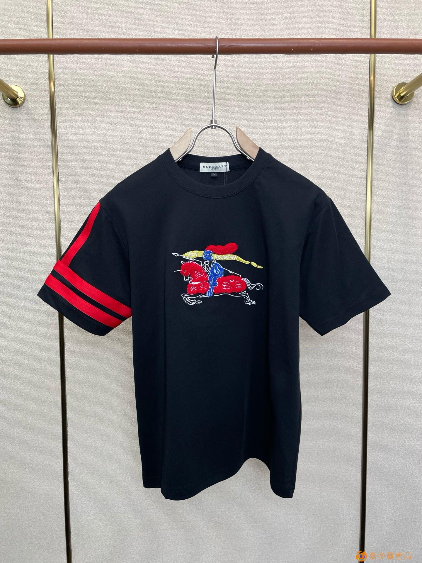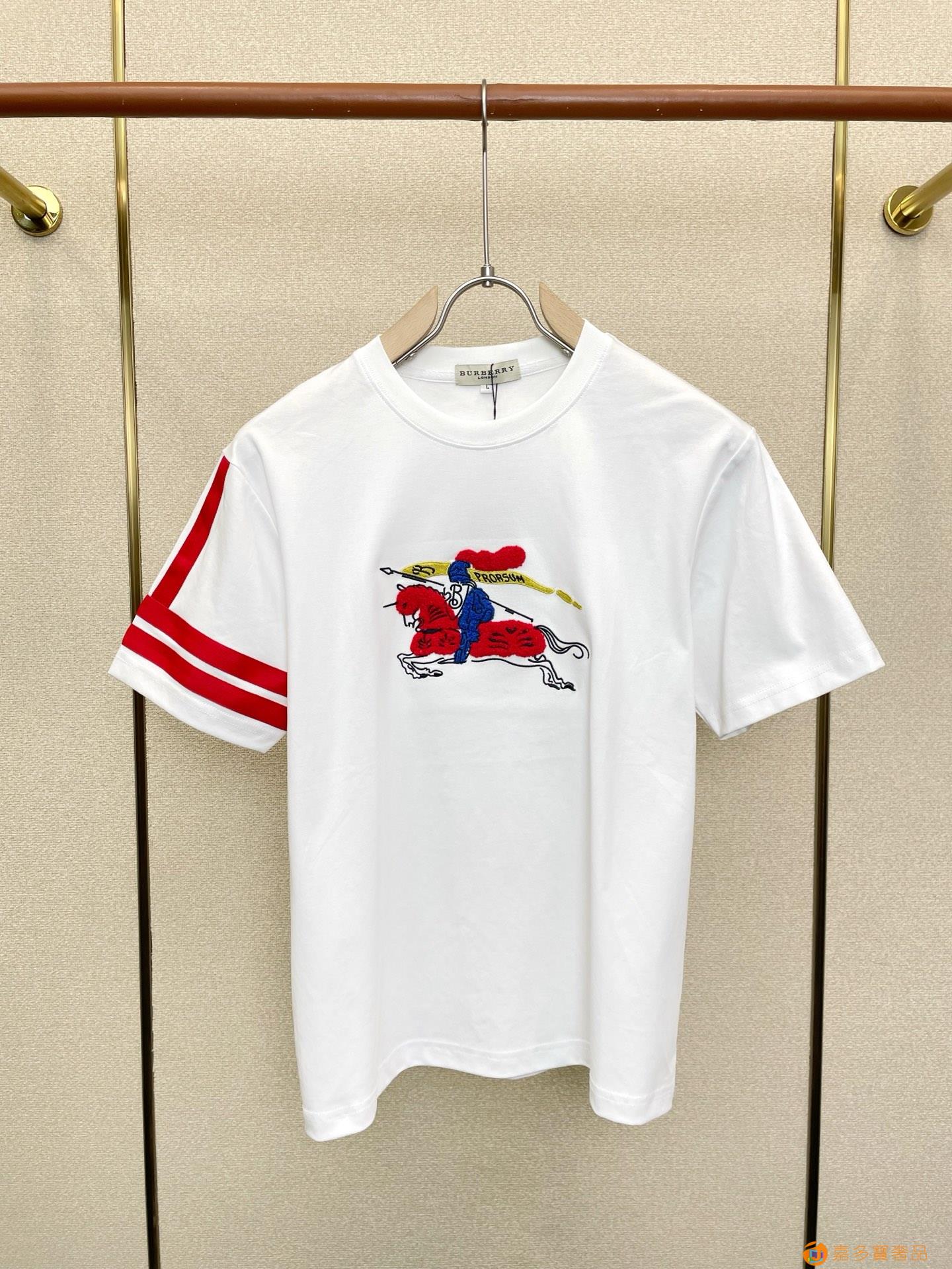 -巴宝莉 新款战马刺绣圆领短袖T恤