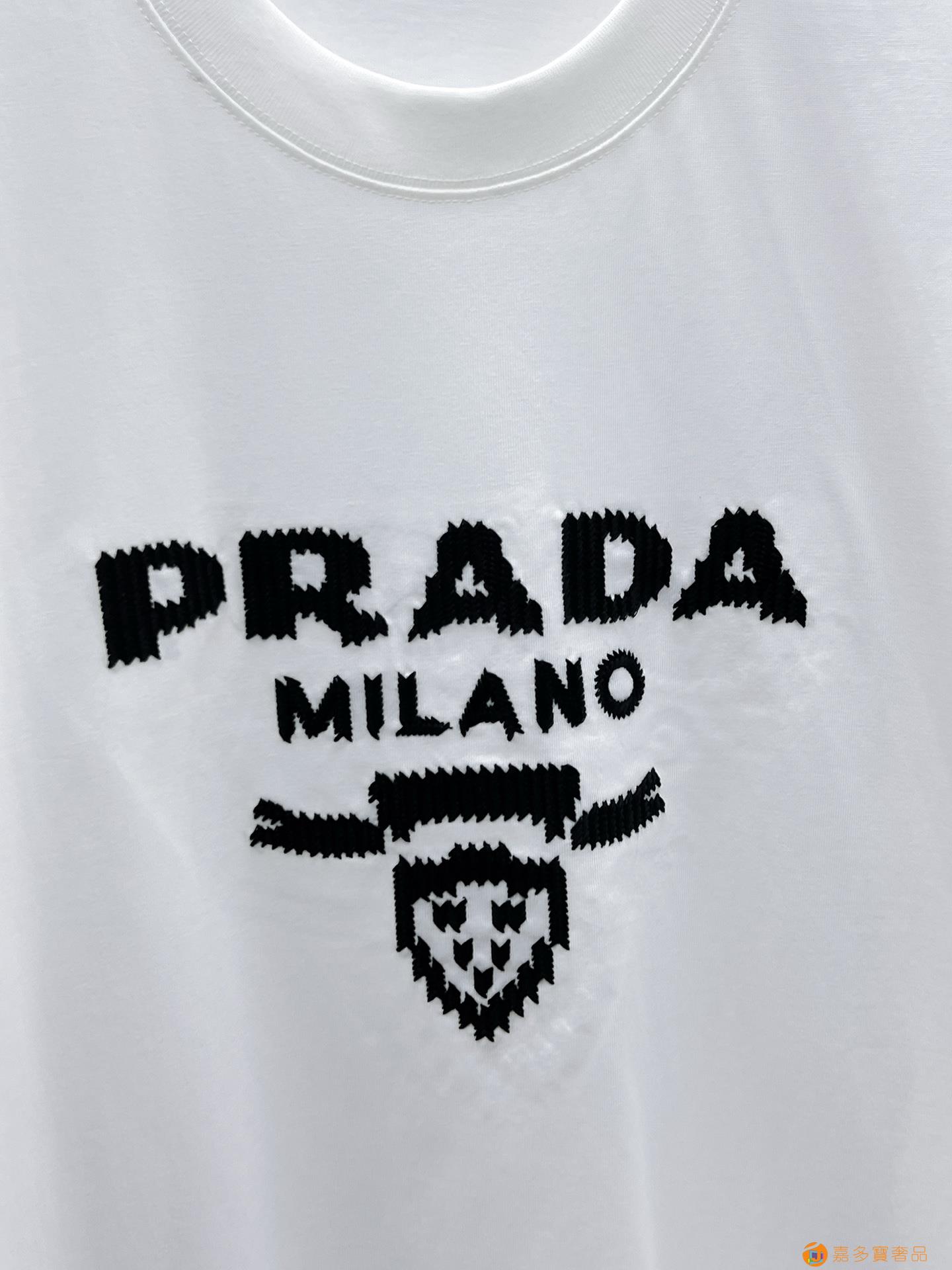 普拉达 ?顶级货品高克重?夏季新品首发专柜最新款短袖圆